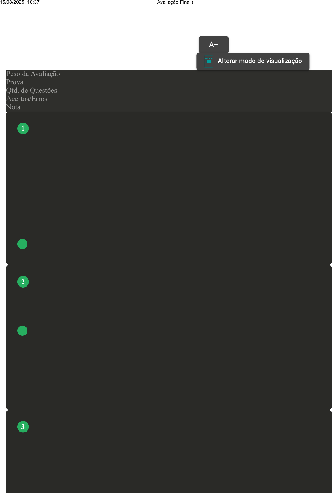 Prova Impressa GABARITO | Avaliação Final (Objetiva) - Individual (Cod.:1023731) Peso da Avaliação 4,00 Prova 101818138 Qtd. de Questões 10 Acertos/Erros 9/1 Nota 9,00 Quando consideramos uma barra prismática que tenha um plano de simetria e que esteja submetida a momentos fletores iguais e de sentidos opostos, cuja seção seja cortada em um ponto intermediário, as condições de equilíbrio de uma das partes exigem que os esforços internos sejam equivalentes a um determinado esforço. Os esforços internos devem ter equivalência de qual esforço? A Momento Fletor Neutro. B Momento Fletor Diagonal. C Momento Fletor Radial. D Momento Fletor. O cálculo das tensões causadas pelo carregamento excêntrico original é realizado pela superposição da distribuição uniforme de tensão correspondente às forças centradas e da distribuição linear correspondente aos momentos. Com base nesses momentos, assinale a alternativa CORRETA: A Momentos fletores. B Momentos neutros. C Momentos fletores ortogonais. D Momentos fletores na linha neutra. O cálculo da deflexão de vigas introduz constantes incógnitas no sistema durante a integração das equações. Estas constantes são encontradas observando as limitações que existem nos apoios e engastes das vigas, sendo determinadores das condições de contorno. Quanto às condições de contorno em vigas, associe os itens, utilizando o código a seguir: I- Extremidades com roletes. II- Extremidades engastadas. III- Centro com pino. VOLTAR A+ Alterar modo de visualização 1 2 3 15/08/2025, 10:37 Avaliação Final (Objetiva) - Individual about:blank 1/4 IV- Extremidade livre. ( ) A força cortante e o momento fletor são ambos iguais a zero. ( ) O deslocamento e o ângulo são iguais a zero. ( ) Deslocamento é igual a zero. ( ) O deslocamento é igual e o momento fletor são iguais a zero. Assinale a alternativa que apresenta a sequência CORRETA: A III - I - II - IV. B I - III - IV - II. C IV - II - III - I. D II - IV - I - III. Vigas construídas de dois ou mais materiais diferentes são denominadas de uma maneira. Com base na sua denominação, assinale a alternativa CORRETA: A Compostas. B Hiperestáticas. C Homogêneas. D Hipostáticas. Um dos métodos que podem ser utilizados para resolver problemas em vigas é o método da superposição. Quanto ao método da superposição, assinale a alternativa CORRETA: A É realizado introduzindo novas forças no objeto. B Não é válido para vigas engastadas. C Pode ser facilitado com o uso de tabelas em situações comuns. D É aplicável apenas para vigas estaticamente indeterminadas. Uma coluna está engastada na sua base e livre no topo, onde uma força está sendo aplicada. Sabendo que o comprimento da viga é 0,75 m, o momento de inércia de 1.10^-6 m^4 e o módulo de elasticidade é igual a 200 GPa. Calcule o máximo carregamento de flambagem que esta coluna pode suportar. A 220 kN. B 880 kN. 4 5 6 15/08/2025, 10:37 Avaliação Final (Objetiva) - Individual about:blank 2/4 C 1760 kN. D 440 kN. A deflexão de vigas é um dos fatores que deve ser levado em conta no projeto de estruturas, sendo dependente das forças e momentos aplicados sobre estas. Quanto a este assunto, classifique V para as opções verdadeiras e F para as falsas: ( ) A força cortante é proporcional a quarta derivada da deflexão da viga. ( ) Na deflexão de vigas, a lei de Hooke não é aplicável. ( ) O momento fletor é inversamente proporcional ao raio de curvatura. ( ) Os pontos de inflexão da viga são os pontos onde o momento fletor é zero. Assinale a alternativa que apresenta a sequência CORRETA: A F - V - V - F. B V - V - F - F. C V - F - F - V. D F - F - V - V. A fórmula da flexão não pode ser aplicada diretamente para determinar a tensão normal em uma viga composta, pois esta foi desenvolvida para materiais. Com base nos tipos de materiais, assinale a alternativa CORRETA: A Frágeis. B Homogêneos. C Dúcteis. D Flexiveis. A figura anexa mostra as tensões em um elemento sólido que faz parte de uma viga que corre na direção x e que está sob uma força vertical V na direção y. Com base nesta situação, classifique V para as sentenças verdadeiras e F para as falsas: ( ) A integral de Tau xy na seção transversal será igual a -V. ( ) Tau xy será igual a zero nesta seção transversal. ( ) A soma dos Sigma x em todos os elementos será igual a V. ( ) A integral de Tau zy na seção transversal será igual a -V. Assinale a alternativa que apresenta a sequência CORRETA: FONTE DA IMAGEM: http://help.solidworks.com/2017/portuguese- 7 8 9 15/08/2025, 10:37 Avaliação Final (Objetiva) - Individual about:blank 3/4 brazilian/SolidWorks/cworks/c_Elemental_and_Nodal_Stresses.htm. Acesso em: 1º ago. 2019. A V - V - F - F. B F - V - V - F. C V - F - V - F. D F - F - V - V. As tensões em uma seção transversal de uma viga variam ao longo desta. Para uma viga de seção transversal retangular, a tensão de cisalhamento varia de acordo com uma forma particular. Quanto a esta forma, assinale a alternativa CORRETA: A Parabólica. B Linear. C Exponencial. D Inversa. 10 Revisar Conteúdo do Livro Imprimir 15/08/2025, 10:37 Avaliação Final (Objetiva) - Individual about:blank 4/4