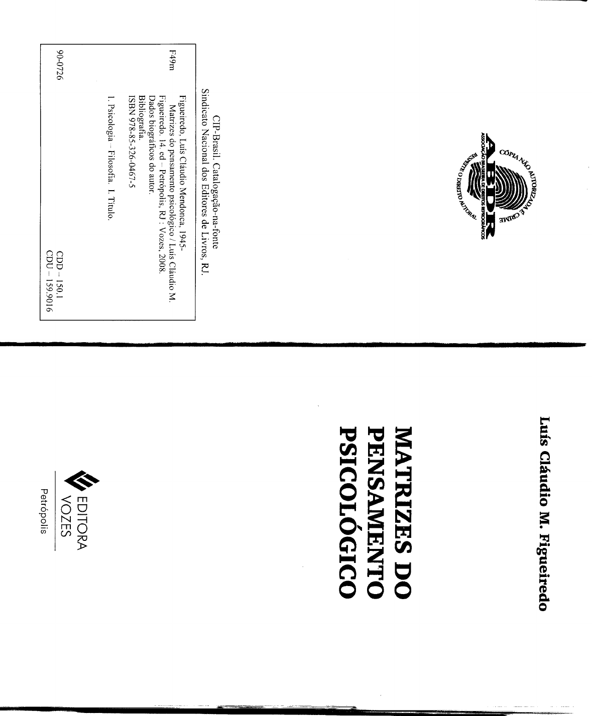 Luís Cláudio M. Figueiredo AUTORIZADA CRIME ABDR ASSOCIAÇÃO DE DIREITO AUTORAL MATRIZES DO PENSAMENTO PSICOLÓGICO CIP-Brasil. Catalogação-na-fonte Sindicato Nacional dos Editores de Livros, RJ. Figueiredo, Cláudio Mendonca, 1945- F49m Matrizes do pensamento psicológico / Cláudio M. Figueiredo. 14. ed Petrópolis, RJ : Vozes, 2008. Dados biográficos do autor. Bibliografia. ISBN 978-85-326-0467-5 1. Psicologia Filosofia. I. Título. EDITORA VOZES 90-0726 CDD 150.1 CDU 159.9016 PetrópolisSUMÁRIO INTRODUÇÃO, 11 I - A CONSTITUIÇÃO DO ESPAÇO PSICOLÓGICO, 13 1. Emergência e ruína do sujeito, 13 2. Emergência e ruína do indivíduo, 20 3. Conclusões, 22 II - A OCUPAÇÃO DO ESPAÇO PSICOLÓGICO, 26 1. Introdução, 26 2. Matrizes cientificistas, 27 3. Matrizes cientificistas e ideologias científicas, 31 4. Matrizes românticas e pós-românticas, 32 5. Matrizes românticas, pós-românticas e ideologias pararreligiosas, 38 6. Perspectivas atuais, 38 III - MATRIZ NOMOTÉTICA E QUANTIFICADORA, 43 1. Introdução, 43 2. A ordem nas aparências, 45 3. A ordem natural, 46 4. A expansão da ordem natural, 47 5. A ordem natural dos fenômenos psicológicos e comportamentais, 47 6. Raízes socioculturais da quantificação psicológica, 53IV MATRIZ ATOMICISTA E MECANICISTA, 60 1. A crítica da razão compreensiva, 142 1. problema do movimento, 60 5. Interpretação e verdade, 147 2. As origens na física, 62 3. Extensões do atomicismo e do mecanicismo, 64 X MATRIZES COMPREENSIVAS: os 4. Atomicismo e macanicismo na psicologia, 66 ESTRUTURALISMOS, 152 5. Raízes socioculturais, 68 1. A problemática estruturalista, 152 2. Origens dos estruturalismos: a psicologia da forma, 155 V MATRIZ FUNCIONALISTA E ORGANICISTA NA 3. Origens dos estruturalismos: os formalistas russos, 159 PSICOLOGIA AMERICANA, 73 4. Origens dos estruturalismos: a de Saussure, 160 1. Limites do atomicismo e do mecanicismo, 73 5. Novos rumos para os estruturalismos: a gramática 2. Função, estrutura e gênese, 74 gerativa, 162 3. Os reflexos do funcionalismo na psicologia, 77 6. Estruturalismo na antropologia e na psicologia, 163 4. movimento da psicologia funcional, 78 7. Romantismo, estruturalismo e psicanálise, 167 5. A psicologia comparativa, 79 6. Os behaviorismos, 82 XI MATRIZ FENOMENOLÓGICA E 7. apogeu do funcionalismo behaviorista, 84 EXISTENCIALISTA, 172 1. A fenomenologia e a questão epistemológica, 172 VI MATRIZ E ORGANICISTA NA 2. encontro da fenomenologia com as Ciências PSICOLOGIA EUROPÉIA, NA PSICANÁLISE E NA humanas, 174 PSICOSSOCIOLOGIA, 89 3. As estruturas da consciência transcendental, 175 1. Funcionalismo na etologia européia, 89 4. Os modos da consciência transcendental e as ontologias 2. Funcionalismo na psicogenética de Piaget, 92 regionais, 177 3. Funcionalismo na psicanálise freudiana, 95 5. A inflexão romântica na fenomenologia de M. Scheler, 178 4. Funcionalismo na psicossociologia, 100 6. As doutrinas existencialistas, 179 7. A psicopatologia de K. Jaspers, 180 VII SUBMATRIZES AMBIENTALISTA E NATIVISTA NA 8. Analítica e psicanálise existencial, 182 PSICOLOGIA, 107 9. A antipsiquiatria existencial-marxista, 184 1. o ambientalismo psicológico, 107 10. o problema da compreensão nas doutrinas 2. o nativismo psicológico, 110 existencialistas, 187 3. Os interacionismos, 113 4. Raízes socioculturais das submatrizes ambientalista e XII CONSIDERAÇÕES FINAIS E PERSPECTIVAS, 195 nativista, 119 1. A problemática da diversidade e da unidade, 195 VIII MATRIZ VITALISTA E NATURISTA, 125 2. A superação e a conservação da diversidade, 204 1. o bergsonismo: um exemplo, 125 2. o humanismo romântico, 129 3. irracionalismo conformista, 130 IX MATRIZES COMPREENSIVAS: HISTORICISMO IDIOGRÁFICO E SEUS IMPASSES, 135 1. Desdobramentos e diferenciações do iluminismo, 135 2. Caracterização do romantismo, 137 3. o romantismo e as humanidades, 141INTRODUÇÃO A psicologia, desde seu nascimento oficial como ciência independente, vive, ao lado de outras ciências humanas, uma crise permanente. Esta crise se caracteriza pela extraordinária diversidade de posturas medotológicas e teóricas em persistente e irredutível oposição. que mais chama a atenção ao longo destes pouco mais de cem anos de esforços para dar à psicologia um status de "verdadeira ciência" é tanto a dispersão como a esperança reiteradamente frustrada - de reunificação da psicologia, de forma a garantir-lhe uma posição autônoma e indiscutível no quadro geral das ciências. Nesta medida, quem se proponha a interpretar a psicologia e sua história enquanto fenômenos socioculturais - e é esta a intenção do presente texto - deve adotar um enfoque dúplice: se é necessário sublinhar a diver- sidade, é necessário igualmente desvelar terreno em que as posições divergentes cobram sentido e podem ser legitimamente confrontadas umas com as outras. No presente trabalho tentaremos sugerir algumas idéias acerca do projeto de fazer da psicologia uma ciência inde- pendente para, em seguida, enfocar as posturas alternativas em suas articulações com este projeto. Só assim os modelos de inteligibilidade e os interesses expressos nas várias posições teóricas e metodológicas podem revelar o seu alcance e seu significado. Estes interesses e modelos, por atuarem como gera- 11dores de uma variedade quase infinita de escolas e "seitas" psicológicas, foram aqui denominados matrizes do pensamento psicológico. Cada uma das matrizes examinadas recebeu uma designa- I ção que aponta para o grande conjunto cultural que está na sua origem. No foco das análises estão sempre os pressupostos que sustentam as práticas teóricas da(s) psicologia(s) contem- A Constituição do Espaço porânea(s), sejam elas científicas, pretensamente científicas ou acintosamente anticientíficas. Psicológico o presente texto, embora redigido com objetivo de alcan- çar prioritariamente alunos pós-graduados e profissionais 