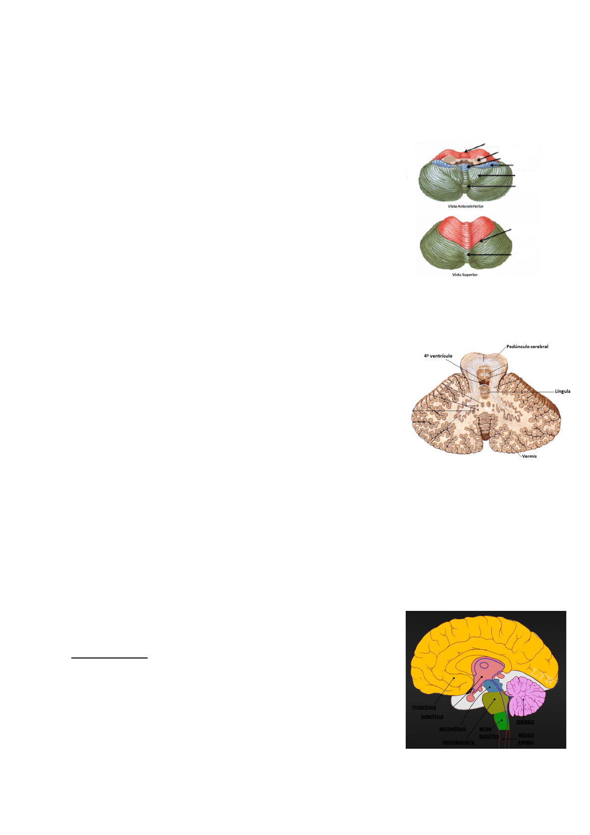 NEUROANATOMIA NP2 CEREBELO FUNÇÃO Postura, Equilíbrio, Coordenação Motora Refinada e Tônus Muscular É formado por duas massas de tecido Nervoso Cada Lado possui um Hemisfério Cerebelar - V. Posterior Cada Hemisfério Direito e Esquerdo: Possui Lóbulos ● Lóbulo Anterior: Controla o Tônus Muscular ● Lóbulo Posterior: Controla nossa Coordenação Refinada A Fissura que Divide o Lóbulo Posterior do Anterior se chama: FISSURA PRIMA Na Posição Mediana possui um vão Chamado: VERMIS Vista Anterior Possui uma Cavidade - IV Ventrículo Lóbulo flóculo nodular: Responsável pelo equilíbrio e Postura Parte Posterior Possui duas Tonsilas ● Flóculo Laterais ● Nódulo Medial Possui 3 Superfícies ● Face Anterior, Superior e Posterior ● Possui Substância Nervosa Cinzenta - Chamada de CÓRTEX (forma as folhas Cerebelares) ● Na Profundidade, são encontrados NÚCLEOS PROFUNDOS DO CEREBELO Substância Branca São Encontradas no CENTRO BRANCO MEDULAR CÉREBRO Estrutura que é consciente da sua própria existência ● Possui Duas Divisões: Diencéfalo e Telencéfalo DIENCÉFALO Responsável Pelo Controle Comportamental Parte Central - Compreende uma região Neuroendócrina ● ESTRUTURA TÁLAMO Responsável por Restribuir/Direcionar os impulsos nervoso Vias Ascendentes e aferentes no final do tálamo Aderência Intertalâmica - Botão Tubérculo Anterior - Parte Pontuda Pulvinar do Tálamo - Parte Arredondada Corpos Geniculado Medial e Lateral - Fica acima dos 4 pontinhos do Mesencéfalo ● ESTRUTURA HIPOTÁLAMO Se Localiza abaixo do tálamo Responsável pelo comportamento e armazenamento de diversos Hormônios Quiasma Óptico - Ficam no meio do Cruzamento do Nervo Óptico HIPÓFISE ● Parte Anterior: Endócrino Hipófise ● Parte Posterior: Neuro Hipófise ● Infundíbulo da Hipófise - Fim do Canudo Túber Cinéreo - Onde Possui uma pequena elevação Corpos Mamilares - Duas Bolinhas Sulco Hipotalâmico - Parte Superior ● ESTRUTURA EPITÁLAMO É construído pela Glândula Pineal Responsável pelo Ciclo Circadiano - Sono e Vigília Comissura Posterior TELENCÉFALO É a parte do Cérebro que recobre o Diencéfalo Sua superfície é coberta por substância Cinzenta (corpos de Neurônios) É toda Redobrada, chamada de CÓRTEX CEREBRAL ● Núcleos da Base: São S.C profundo no Telencéfalo Regulam a Coordenação motora Grosseira Substância Branca: Estão presente entre os córtex e o núcleos da base Corpo Caloso Faz a comunicação entre os Hemisférios Direito e Esquerdo ● Estrutura: Joelho - Anterior Tronco - Médio Esplênio - Posterior ● Fórnix Fica abaixo do corpo Caloso e se estende dos Corpos mamilares ao hipocampo Hipocampo (Onde se Armazena a memória e também é uma área de comunicação inter hemisférica) ● Cápsula interna Fica no meio dos núcleos da Base, é também uma área de comunicação inter hemisférica Cada Hemisfério é denominado por um conjunto de Giros e Sulcos e também por Faces ● Faces Súpero-lateral Medial Inferior ● Polos (Nome é de acordo com a estrutura óssea que reveste) Anterior ou Frontal Posterior ou Occipital Lateral ou Temporal ● Lobos Frontal - Centro Primário da Atividade Motora Parietal - Atividades Sensoriais/Sensibilidade Temporal - Atividade da função Auditiva e Equilíbrio Occipital - Atividade eminentemente Visual Da Ínsula - Atividades comportamentais e emoções ● Sulcos (Separa os Lobos) Central Lateral Parieto-occipital Do cíngulo Calcarino Do Corpo Caloso ● Giros Pré-Central - Pertence ao Lobo frontal (Área motora Primária) Pós-Central - Pertence ao Lobo Parietal (Área Sensitiva Primária) Giro Frontal - Superior, médio e Inferior No lobo Temporal - Possui o Giro Superior, Médio e inferior No lobo Occipital - Todos Os giros São Occipitais Giro do Cíngulo - Acompanha o corpo caloso é dividido em frontal e Parietal Giro Pré Cuneo - Fica após o frontal superior, fica entre o Sulco Central e ramo Marginal Giro Cuneo - É após o Pré cuneo que fica entre o ramo marginal e o Parieto Occipital Uncus - Fica após o cuneo, sulco calcarino fica posterior ao uncus Giro Parahipocampal - É inferior MENINGES São Três membranas que envolvem o sistema nervoso Central Dura Máter - É a mais Externa Espaço Subdural Aracnóide - É a mais Media Espaço subaracnoideo - É onde circula Pia Máter - É a mais Profunda o liquor e nos ventrículos