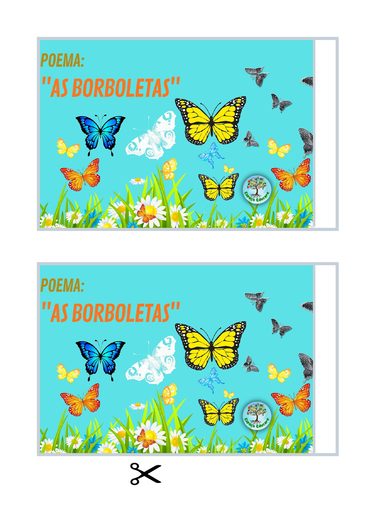 recorte para utilizar Rótulo lata C o la r a q u i C o la r a q u i Vinícius de Moraes Vinícius de Moraes recorte para utilizar ca ntinho ca ntinho Rótulo Tampa lata Recorta as borboletas e colar na tampa. Ps: dobrar no meio e passar cola somente no meio, e as assas ficarem solta com uma leve inclinação. recorte para utilizar AS BORBOLETAS AZUIS AM ARELAS E PRETAS BRAN CAS AS BELAS BORBOLETAS BRIN CAM N A LUZ recorte para utilizar BORBOLETAS BRANCAS SÃO ALEGRES E FRANCAS. E AS PRETAS, ENTÃO OH, QUE ESCURIDÃO! AS AMARELINHAS SÃO TÃO BONITINHAS! BORBOLETAS AZUIS GOSTAM DE MUITA LUZ.