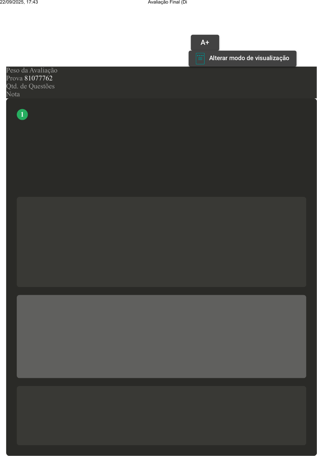 Prova Impressa GABARITO | Avaliação Final (Discursiva) - Individual (Cod.:955546) Peso da Avaliação 2,00 Prova 81077762 Qtd. de Questões 2 Nota 9,00 [Laboratório Virtual - Observação do esqueleto axial] As costelas são ossos planos e curvos que constituem a maior parte da caixa torácica. Elas são extremamente leves, mas altamente resistentes, contribuindo para a proteção dos órgãos torácicos internos. Existem 12 pares de costelas, todos articuladas com a coluna vertebral. Possuímos três tipos de costelas: as verdadeiras, as falsas e as flutuantes. Disserte sobre a localização (com quem se articula anterior e posterior) e o número de cada tipo de costela. Resposta esperada Do primeiro até o sétimo par de costelas são consideradas costelas verdadeiras e estão presentes, junto a essas estruturas, uma camada de cartilagem hialina, formando a chamada cartilagem costal. Os cinco pares de costelas restantes são denominados de costelas falsas, porque suas cartilagens não se fixam ao esterno. A décima primeira e a décima segunda costelas são denominadas costelas flutuantes. Os espaços entre as costelas são chamados de espaços intercostais, os quais são preenchidos por músculos, vasos sanguíneos e nervos intercostais. Minha resposta As costelas se articulam com a coluna vertebral na região posterior do tórax e na região anterior elas se articulam com o esterno. Elas são divididas entre verdadeiras, falsas e flutuantes. Os pares de um a sete são consideradas costelas verdadeiras, elas possuem uma camada de cartilagem hialina que forma a cartilagem costal. Os outros cinco pares de costela são denominadas como falsas pois suas cartilagens não se ligam ao esterno. Os dois últimos pares de costela são denominados de flutuantes e são chamadas assim pois não possuem ligação anterior. Retorno da correção Parabéns acadêmico, sua resposta se aproximou dos objetivos da questão, poderia apenas ter apresentado mais argumentos acerca dos conteúdos disponibilizados nos materiais didáticos e estudos. VOLTAR A+ Alterar modo de visualização 1 22/09/2025, 17:43 Avaliação Final (Discursiva) - Individual about:blank 1/2 [Laboratório Virtual – Introdução ao estudo macroscópico do sistema nervoso central] Medindo cerca de 45 cm nos adultos, a medula espinal vai do forame magno do osso occipital até o espaço entre a primeira e a segunda vértebras lombares, no qual termina em uma região cuneiforme denominada cone medular. Após observar o corte transversal da medula espinal, como é possível diferenciar as regiões anterior e posterior da medula? Resposta esperada A região anterior da medula espinal é facilmente reconhecível devido à presença de um sulco profundo localizado centralmente: a fissura mediana anterior. Além deste, outros sulcos mais superficiais são encontrados por todo o comprimento da medula espinal. Posteriormente à fissura mediana anterior encontramos o sulco mediano posterior. Minha resposta É possível diferenciar a região anterior da medula espinal por uma substância cinzenta presente, a região posterior possui uma substância branca envolvendo a substância cinzenta. Assim é possível observar as regiões anterior e posterior da medula. Retorno da correção Parabéns acadêmico, sua resposta se aproximou dos objetivos da questão, poderia apenas ter apresentado mais argumentos acerca dos conteúdos disponibilizados nos materiais didáticos e estudos. 2 Imprimir 22/09/2025, 17:43 Avaliação Final (Discursiva) - Individual about:blank 2/2