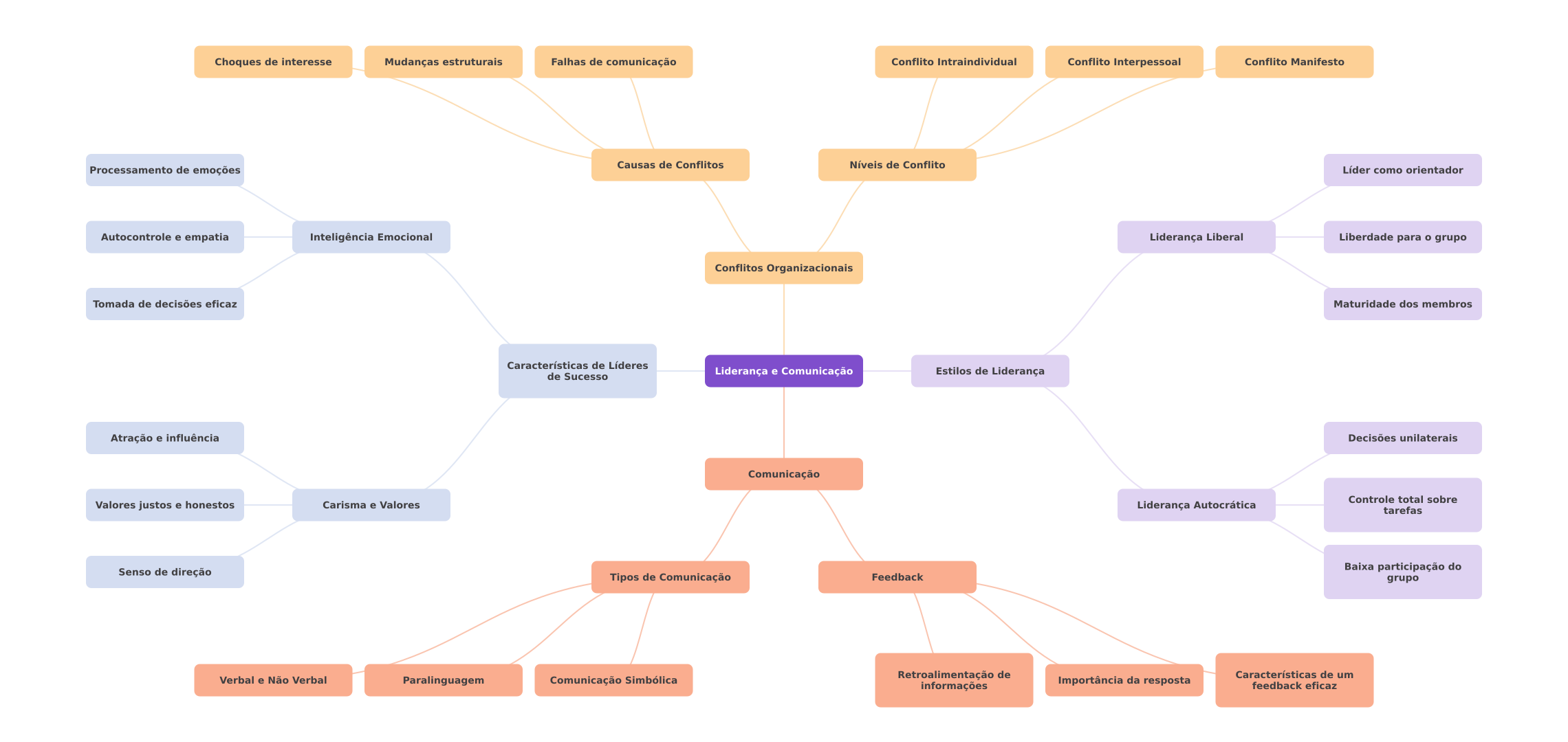 Choques de interesse Mudanças estruturais Falhas de comunicação Conflito Intraindividual Conflito Interpessoal Conflito Manifesto Causas de Conflitos Níveis de Conflito Processamento de emoções Líder como orientador Autocontrole e empatia Inteligência Emocional Liderança Liberal Liberdade para grupo Conflitos Organizacionais Tomada de decisões eficaz Maturidade dos membros Características de Líderes de Sucesso Liderança e Comunicação Estilos de Liderança Atração e influência Decisões unilaterais Comunicação Controle total sobre Valores justos e honestos Carisma e Valores Liderança Autocrática tarefas Senso de direção Baixa participação do Tipos de Comunicação Feedback grupo Verbal e Não Verbal Retroalimentação de Características de um Paralinguagem Comunicação Simbólica informações Importância da resposta feedback eficaz
