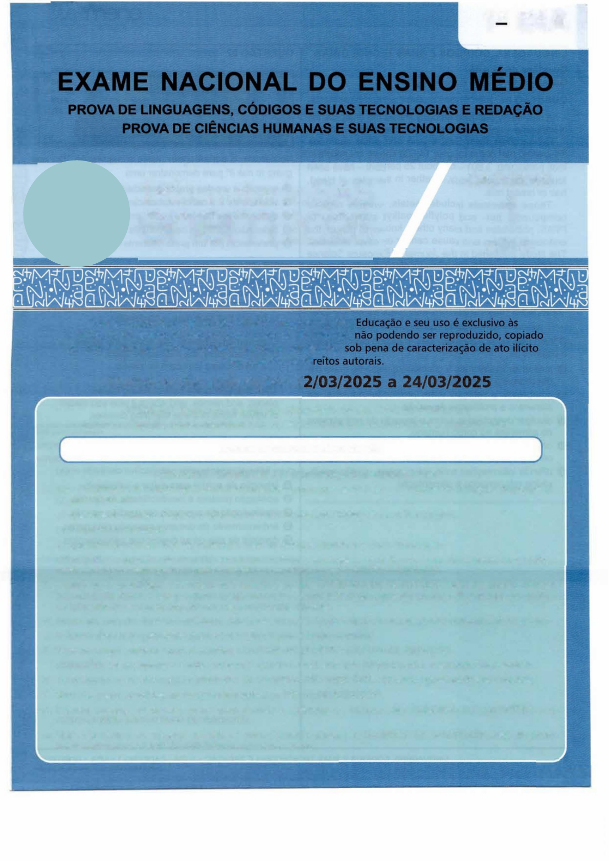 LINGUAGENS, CÓDIGOS E SUAS TECNOLOGIAS E REDAÇÃO• 1g DIA• CADERNO 1 •AZUL• erem2025 2.2