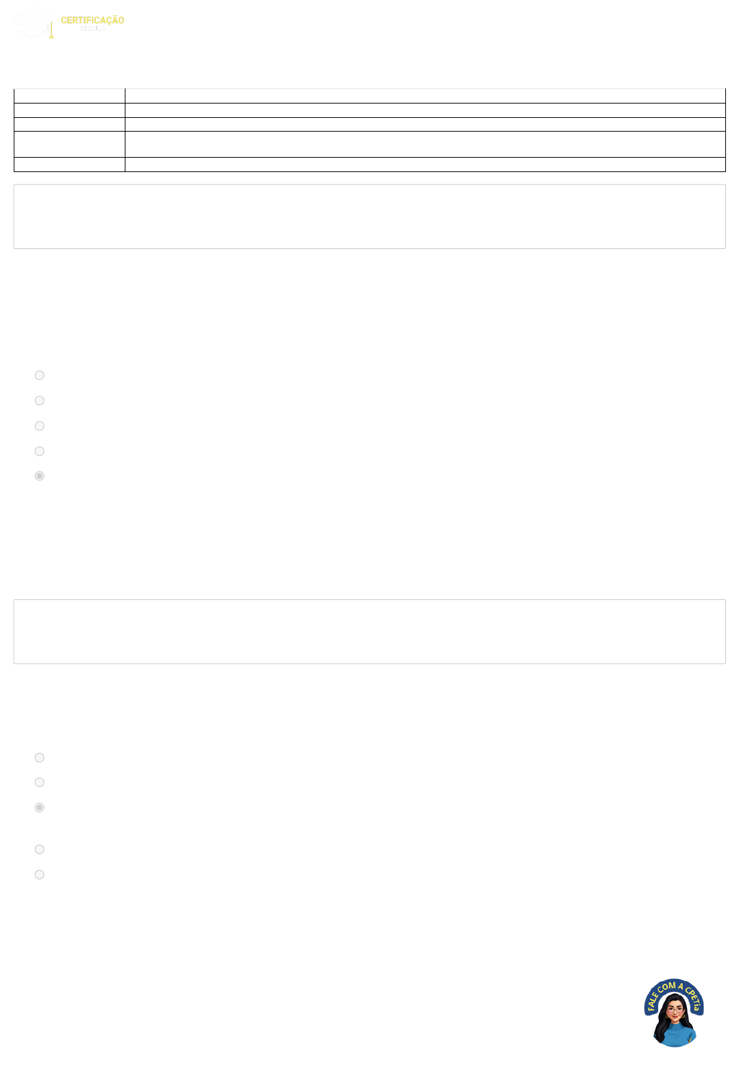 Iniciado em sexta-feira, 26 set. 2025, 20:53 Estado Finalizada Concluída em sexta-feira, 26 set. 2025, 21:00 Tempo empregado 7 minutos 30 segundos Avaliar 10,0 de um máximo de 10,0(100%) Questão 1 Correto Atingiu 2,0 de 2,0 Questão 2 Correto Atingiu 2,0 de 2,0 Uma das principais dimensões da qualidade é a que a define com base no produto, mesmo considerando que a maioria da literatura sobre Gestão da Qualidade Total diz que o princípio da qualidade é ela ser "focada no cliente". Nesse sentido, por que a importância da qualidade com base no produto? Escolha uma opção: a. Porque ela estabelece a visão de qualidade do tipo "valorize seu dinheiro" ou "excelência comprável". b. Porque ela reforça a visão de que a "beleza está nos olhos do cliente". c. Porque, em essência, a visão da qualidade é a do tipo "não consigo defini-la, mas posso reconhecê-la". d. Por ela se confirmar em virtude de padrões específicos, ou seja, fazer certo desde a primeira vez. e. Como o que o cliente enxerga é o produto, a qualidade deve ser medida em termos de produtos. Sua resposta está correta. A resposta correta é: Como o que o cliente enxerga é o produto, a qualidade deve ser medida em termos de produtos. A perspectiva transcendental da qualidade diz que ela é: Escolha uma opção: a. Determinada pela maneira como as preferências do cliente são satisfeitas; assim, é uma função dos valores do consumidor. b. Confirmada pela concordância com os padrões especificados. c. Uma excelência inata, a qual não é atributo específico do produto nem do consumidor, mas, sim, uma terceira entidade separada. d. Determinada pelo desempenho ou concordância do produto e do seu preço. e. A conformidade com os objetivos. Sua resposta está correta. A resposta correta é: Uma excelência inata, a qual não é atributo específico do produto nem do consumidor, mas, sim, uma terceira entidade separada. Gestão da Qualidade Total - ssg - TST DT 29/09/2025, 13:51 Exercício de Fixação - Dimensões da Qualidade: Revisão da tentativa https://www.certificacaotecnica.com.br/mod/quiz/review.php?attempt=10661799&cmid=106880 1/3 https://www.certificacaotecnica.com.br/ https://www.certificacaotecnica.com.br/mod/quiz/review.php?attempt=10661799&cmid=106880 https://api.whatsapp.com/send?phone=5511915197955 Questão 3 Correto Atingiu 2,0 de 2,0 Questão 4 Correto Atingiu 2,0 de 2,0 É preciso que se diferencie as relações da qualidade com foco no produto ou com foco no processo, ou seja, utilizar uma distinção entre qualidade interna e qualidade externa. Sobre essa distinção é INCORRETO afirmar que: Escolha uma opção: a. A qualidade interna e a qualidade externa não se relacionam. Alterações ou percepções sobre uma delas não impacta a outra. b. Para alcançar um alto nível de qualidade externa, é preciso transformar as preocupações dos consumidores em medidas de controle de qualidade interna. c. A qualidade externa refere-se à maneira como o cliente enxerga o produto. d. Pela perspectiva de um gerente de produção, as ligações entre qualidades externa e interna são a chave para o desenvolvimento de um programa eficaz de qualidade. e. A qualidade interna se refere à conformidade com as especificações de qualidade dentro da fábrica. Sua resposta está correta. A resposta correta é: A qualidade interna e a qualidade externa não se relacionam. Alterações ou percepções sobre uma delas não impacta a outra. Uma empresa pode melhorar seus produtos, processos e sistemas ao entender melhor as influências da qualidade em seus negócios. Para tanto, ela pode se valer de uma vasta literatura sobre qualidade que, de maneira geral, pode ser dividida em duas grandes categorias. Escolha uma opção: a. Com base no usuário e com base no produto. b. Com base no produto ou com base no valor. c. Gestão da Qualidade Total e Controle Estatístico da Qualidade. d. Gestão da Qualidade Total e Just in Time. e. Kanban e Just in Time. Sua resposta está correta. A resposta correta é: Gestão da Qualidade Total e Controle Estatístico da Qualidade. Gestão da Qualidade Total - ssg - TST DT 29/09/2025, 13:51 Exercício de Fixação - Dimensões da Qualidade: Revisão da tentativa https://www.certificacaotecnica.com.br/mod/quiz/review.php?attempt=10661799&cmid=106880 2/3 https://www.certificacaotecnica.com.br/ https://www.certificacaotecnica.com.br/mod/quiz/review.php?attempt=10661799&cmid=106880 https://api.whatsapp.com/send?phone=5511915197955 Questão 5 Correto Atingiu 2,0 de 2,0 A qualidade é um conceito com várias facetas, que não é resumido em simples medidas numéricas. Qual entre as alternativas abaixo NÃO corresponde a uma dimensão ou perspectiva da qualidade? Escolha uma opção: a. Com base na empresa. b. Com base no produto. c. Com base no usuário. d. Com base na fabricação. e. Com base no valor. Sua resposta está correta. A resposta correta é: Com base na empresa. ◀ Anterior Próximo ▶ Gestão da Qualidade Total - ssg - TST DT 29/09/2025, 13:51 Exercício de Fixação - Dimensões da Qualidade: Revisão da tentativa https://www.certificacaotecnica.com.br/mod/quiz/review.php?attempt=10661799&cmid=106880 3/3 https://www.certificacaotecnica.com.br/mod/url/view.php?id=126537&forceview=1 https://www.certificacaotecnica.com.br/mod/lti/view.php?id=106881&forceview=1 https://www.certificacaotecnica.com.br/ https://www.certificacaotecnica.com.br/mod/quiz/review.php?attempt=10661799&cmid=106880 https://api.whatsapp.com/send?phone=5511915197955
