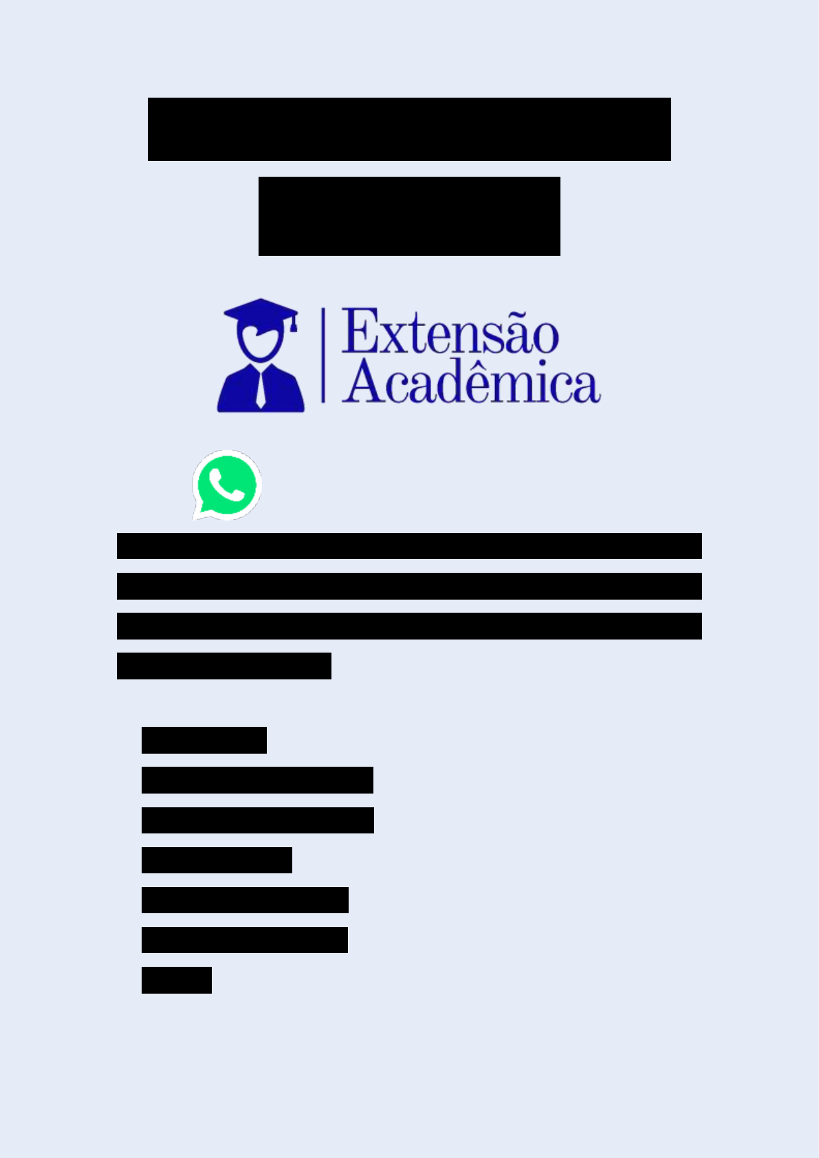 Projeto de extensão Farmácia Elaboramos trabalhos acadêmicos de altíssima qualidade, rigorosamente de acordo com as normas da ABNT e em conformidade com os requisitos específicos da sua universidade. ✓ Portfólios ✓ Projeto de extensão ✓ Relatório de estágio ✓ Aula Prática ✓ Projeto Integrado ✓ Projeto de ensino ✓ TCC (66) 99682-2497
