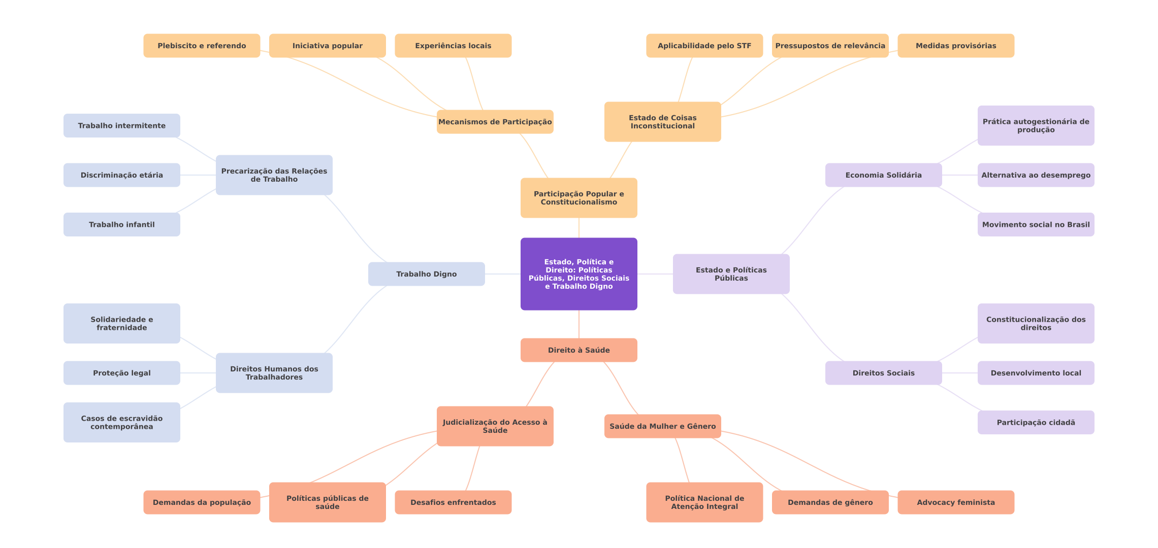 Plebiscito e referendo Iniciativa popular Experiências locais Aplicabilidade pelo STF Pressupostos de relevância Medidas provisórias Estado de Coisas Trabalho intermitente Mecanismos de Participação Inconstitucional Prática autogestionária de produção Discriminação etária Precarização das Relações Economia Solidária de Trabalho Alternativa ao desemprego Participação Popular e Constitucionalismo Trabalho infantil Movimento social no Brasil Estado, Política e Direito: Políticas Estado e Políticas Trabalho Digno Públicas, Direitos Sociais Públicas e Trabalho Digno Solidariedade e Constitucionalização dos fraternidade direitos Direito à Saúde Direitos Humanos dos Proteção legal Direitos Sociais Desenvolvimento local Trabalhadores Casos de escravidão Judicialização do Acesso à contemporânea Saúde da Mulher e Gênero Participação cidadã Saúde Políticas públicas de Política Nacional de Demandas da população Desafios enfrentados saúde Atenção Integral Demandas de gênero Advocacy feminista