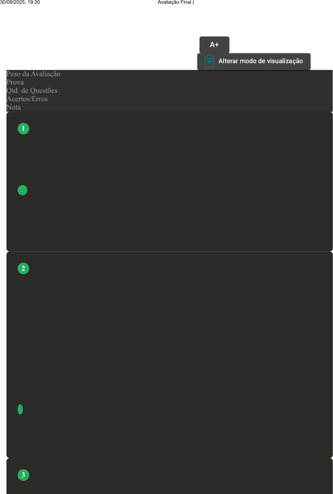 Prova Impressa GABARITO | Avaliação Final (Objetiva) - Individual (Cod.:1526158) Peso da Avaliação 4,00 Prova 103987840 Qtd. de Questões 10 Acertos/Erros 9/1 Nota 9,00 O Diagrama de Fluxo de Dados (DFD) é uma ferramenta fundamental para a construção de software, é um diagrama gráfico que utiliza quatro símbolos para representar todas as relações entre os dados, bem como os processos que modificam os dados e os limites entre o que está pertencente ao sistema e ao que não está. Sobre a definição de DFD, assinale a alternativa CORRETA: A A forma geométrica de retângulo com cantos arredondados representa um depósito de dados. B O DFD apresenta as partes componentes do sistema com as interfaces entre os componentes indicados. C O DFD é um texto livre de formato para representar as relações entre os dados. D Uma entidade externa indica os dados e o respectivo caminho por onde percorrem no sistema. Segundo Reis (2003), a execução dos processos de software depende diretamente da linguagem adotada na etapa da modelagem dos processos, sendo que na maioria das vezes o nível de formalidade adotado é baixo. Geralmente, a modelagem orientada a processos usa o mesmo nível de formalismo para a execução dos processos e a elaboração de sistemas computacionais como prioridade a sua coesão. A respeito dos tipos de formalismos de execução/modelagem mais conhecidos e utilizados em ambientes de desenvolvimento de software, assinale a alternativa CORRETA: FONTE: REIS, C. A. Uma abordagem flexível para execução de processos de software evolutivos. 267 f. Tese (Doutorado) - Curso de Ciência da Computação da Universidade Federal do Rio Grande do Sul, Porto Alegre, 2003. A Execução procedimental, Execução baseada em Evento-Ação, Execução baseada em Regras, Execução baseada em Redes de Petri e Execução baseada em Redes Colaborativas. B Execução Rotineira, Execução baseada em Progressão, Execução baseada em Diretrizes, Execução baseada em Redes de Evento-Ação e Execução baseada em Redes de Tarefas. C Execução procedimental, Execução baseada em Regras, Execução baseada em Regras ECA (Evento-Condição-Ação), Execução Baseada em Redes de Petri e Execução baseada em Redes de Tarefas. D Execução procedimental, Execução baseada em Progressão, Execução baseada em Diretrizes, Execução baseada em Regras ECA (Evento-Condição-Ação) e Execução baseada em Redes Petri. O Enterprise Knowledge Development (EKD) é uma técnica de modelagem que permeia todos os níveis de uma organização, desde os níveis estratégicos até os níveis operacionais. A proposta de VOLTAR A+ Alterar modo de visualização 1 2 3 30/09/2025, 19:30 Avaliação Final (Objetiva) - Individual about:blank 1/5 usar o EKD é prover uma descrição clara e não ambígua sobre como a organização funciona. Sobre as ações da proposta de uso do EKD, analise as sentenças a seguir: I- Identificar quais requisitos devem mudar e quais as razões da mudança. II- Identificar as opções que precisam ser criadas para encontrar esses requisitos. III- Identificar quais são as diretrizes e os argumentos usados para avaliação dessas opções. IV- Identificar quais métricas poderão ser utilizadas para a divulgação dos resultados. Assinale a alternativa CORRETA: A As sentenças I e IV estão corretas. B As sentenças III e IV estão corretas. C As sentenças I, II e III estão corretas. D Somente a sentença I está correta. Os softwares podem ser definidos e desenvolvidos para diversas áreas de aplicabilidade, suas funcionalidades são executar funções, disponibilizar resultados específicos, gerenciar uma grande gama de dados e informações. Um desafio da tecnologia da informação é disponibilizar para os usuários/clientes, softwares de qualidade, que sejam confiáveis, fáceis de utilizar e que tenham interoperabilidade. Uma categoria de software em específico utiliza algoritmos não numéricos, utilizados no desenvolvimento da robótica, sistemas especialistas, redes neurais e jogos. Com relação a essa categoria de software, analise as opções a seguir: I- Linhas de produtos. II- Aplicação embutida. III- Inteligência artificial. IV- Engenharia web. Assinale a alternativa CORRETA: A As opções I, II e IV estão corretas. B Somente a opção II está correta. C As opções I e III estão corretas. D Somente a opção III está correta. O processo de software trata de colocar em prática as etapas da Engenharia de Software em uma organização de desenvolvimento de software, busca aplicar em cada etapa do desenvolvimento um conjunto de atividades, métodos, ferramentas e práticas que são utilizadas para construir um produto de software. Sobre a importância do processo de software, assinale a alternativa CORRETA: A Um processo de software bem documentado irá definir o quê, quando e como as atividades de desenvolvimento serão realizadas, sem preocupar-se com quem irá fazer. B Um processo de software torna-se opcional em uma organização de desenvolvimento de software quando o nível de expertise dos seus profissionais é elevado e os recursos tecnológicos utilizados são de última geração. 4 5 30/09/2025, 19:30 Avaliação Final (Objetiva) - Individual about:blank 2/5 C O processo de software define todas as etapas de desenvolvimento de software, desde o entendimento das necessidades do cliente, da definição do escopo, implementação, testes e liberação para uso. D Um processo de software não é pré-requisito para uma organização obter certificado de qualidade de software. Os sistemas de informação são um conjunto de comandos escritos em uma determinada linguagem de programação como, por exemplo, JAVA ou PHP. Os comandos escritos pelos programadores criam rotinas dentro do programa, a fim de permitir o funcionamento e atingir os seus objetivos, os quais foram propostos pelos clientes e usuários. Sobre as aplicações do software, a