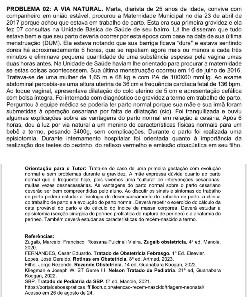 Cardiotocografia fetal intraparto Distorce Partograma Descrever os mecanismos de parto normal e os sinais e sintomas do trabalho de parto. O mecanismo de parto é o conjunto de movimentos e fenômenos ativos e passivos do feto durante a passagem deste pelo canal de parto. Sendo as contrações uterinas a força motriz do trabalho de parto, impulsionando o feto pela pelve para alcançar a vulva e despender – nascimento. Contratilidade uterina Além de, no decorrer de um parto normal, o estudo da contratilidade uterina ter sua maior importância em três situações: para a inibição de contrações nos casos de trabalho de parto prematuro; para a indução do trabalho de parto em casos em que seja necessária a resolução do parto; e, finalmente, no período pós-parto para o miotamponamento e para a regressão do útero nos dias seguintes ao nascimento. O evento de contratilidade uterina com ritmo só é possível por ser precedido por notáveis modificações na estrutura miometrial, as quais determinam hipertrofia e hiperplasia das células. O miométrio é, de fato, composto por células musculares lisas que apresentam grau máximo de diferenciação no sistema muscular. A unidade geradora de contração uterina é formada por um complexo proteico (actina-miosina) disposto em fuso dentro do citoplasma. Assim, essas fibras estão dispostas em feixes e envoltas por uma matriz de tecido conjuntivo composta por colágeno, cuja principal função é facilitar a transmissão das forças contráteis geradas pelos feixes musculares. As células musculares uterinas apresentam junções comunicantes que permitem sincronia e transmissão dos estímulos eletrofisiológicos. As contrações uterinas se iniciam na parte superior do útero, local em que são mais intensas, e se propagam com intensidade decrescente pelo corpo do útero até atingir o segmento inferior. Tríplice Gradiente Descendente. Fisiologia das Contrações Uterinas: A contratilidade uterina depende da interação dos componentes do complexo proteico e é modulada pela ação da enzima cínase, presente na miosina, que quando ativada modula a fosforilação da miosina gerando contração. Esta enzima é influenciada por 3 sistemas reguladores: cálcio, calmodulina e monofosfato de adenosina cíclico (AMP cíclico). Os dois primeiros formam um complexo que ativa a cínase da cadeia leve de miosina, enquanto o AMP cíclico inibe a sua atividade enzimática. Os sistemas moduladores são inter-relacionados e respondem a ação hormonal e de fármacos: · A progesterona, principal hormônio da gravidez, consolida as ligações do cálcio no retículo sarcoplasmático, reduzindo assim a fração livre disponível de cálcio intracelular e, consequentemente, elevando o limiar de excitabilidade da fibra miometrial. Tornando o útero quiescente. bloqueio progestagênico. · As prostaglandinas também modulam o fluxo de cálcio por meio de alterações na permeabilidade da membrana celular, o que leva ao aumento dos níveis intracelulares de cálcio e favorece a contração das fibras. · O estrógeno é o principal responsável pelo aumento da concentração dessas proteínas de conexão. Características das células musculares miometriais: · Baixa sensibilidade dolorosa: discreta; ocorrendo durante o parto vaginal, coincidindo com a contração e resulta da projeção da apresentação fetal contra o segmento inferior e da compressão dos órgãos vizinhos. Contrações de intensidade de 40 a 50mmHg não são identificadas pelas gestantes. · Excitabilidade: as fibras miometriais são excitáveis, podendo responder a eventos estressantes por resposta a produção de catecolaminas, como adrenalina e noradrenalina, gerando alterações contráteis, algumas vezes ligadas ao trabalho de parto prematuro. · Elasticidade: · Extensibilidade: capacidade de adaptação da parede uterina a variação de volume. · Retratilidade: capacidade de encurtamento das fibras miometriais. · Tonicidade · Contratilidade: · Tipo A: alta frequência e baixa amplitude, geralmente com 1 contração/min e intensidade de 2 a 4 mmHg. · Tipo B ou contrações de Braxton Hicks: alta amplitude, com intensidade de 10 a 20 mmHg se difundindo de forma parcial ou total pelo útero. Aumentam a partir da 28º semana de gestação. Marcante nas últimas semanas, com maior frequência. Ocorre distensão do segmento inferior do útero e pequeno grau de encurtamento cervical, o que justifica a percepção de diminuição do volume do abdome nessa fase (queda do ventre) MECANISMO DO PARTO NORMAL O mecanismo do parto normal envolve um conjunto de fatores que estão envolvidos de forma dinâmica para a “expulsão” do feto do útero materno, como a contratilidade uterina, o posicionamento do feto (relações uterofetais) e conformação da pelve materna. O parto é caracterizado por contrações das fibras miometriais, cujas principais funções são a dilatação cervical e a expulsão do feto através do canal de parto. Essas contrações são dolorosas, porém, antes do seu início, o útero sofre modificações fisiológicas e bioquímicas locais concomitantes ao aumento da frequência de contrações indolores (contrações de Braxton Hicks), até que o verdadeiro trabalho de parto seja deflagrado. FASES CLÍNICAS DO PARTO: O processo que regula as modificações uterinas durante o parto não é bem delimitado, estando suas faces divididas em: Quiescência (fase 1): caracterizada por relativa ausência de resposta a agentes que determinam a contratilidade uterina. · Ela se inicia com a implantação do zigoto e perdura por quase toda a gestação. · Apesar de algumas poucas contrações serem observadas nesse período, elas não modificam a estrutura cervical nem causam dilatação do colo uterino Ativação (fase 2): prepara o útero e o canal cervical para o trabalho de parto e dura aproximadamente 6 a 8 semanas. · Determina algumas modificações cervicais