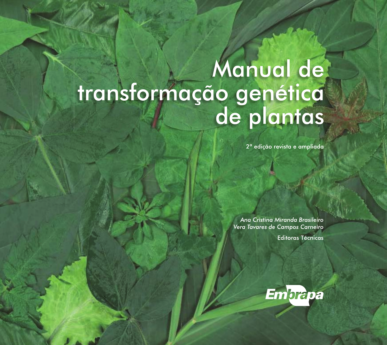 Empresa Brasileira de Pesquisa Agropecuária Embrapa Recursos Genéticos e Biotecnologia Ministério da Agricultura, Pecuária e Abastecimento Embrapa Brasília, DF 2015 Manual de transformação genética de plantas 2ª edição revista e ampliada Ana Cristina Miranda Brasileiro Vera Tavares de Campos Carneiro Editoras Técnicas MANUAL_TRANSF_GENETICA_PLANTAS_ed02_2014_MIOLO.indd 1 04/07/2016 15:11:32 Exemplares desta publicação podem ser adquiridos na: Embrapa Recursos Genéticos e Biotecnologia Parque Estação Biológica (PqEB) Av. W5 Norte (final) 70770-917 Brasília, DF Fone: (61) 3448-4700 Fax: (61) 3340-3624 www.embrapa.br www.embrapa.br/fale-conosco/sac Unidade responsável pelo conteúdo Embrapa Recursos Genéticos e Biotecnologia Comitê Local de Publicações Presidente João Batista Teixeira Secretário-executivo Thales Lima Rocha Membros Jonny Everson Scherwinski Pereira Lucília Helena Marcellino Lígia Sardinha Fortes Marcio Sanches Samuel Resende Paiva Vânia Cristina Rennó Azevedo Daniela Aguiar de Souza Kols (suplente) João Batista Tavares da Silva (suplente) Embrapa Informação Tecnológica Parque Estação Biológica (PqEB) Av. W3 Norte (final) 70770-901 Brasília, DF Fone: (61) 3448-4236 Fax: (61) 3448-2494 www.embrapa.br/livraria livraria@embrapa.br Unidade responsável pela edição Embrapa Informação Tecnológica Coordenação editorial Selma Lúcia Lira Beltrão Lucilene Maria de Andrade Nilda Maria da Cunha Sette Supervisão editorial Juliana Meireles Fortaleza Wyviane Carlos Lima Vidal Revisão de texto Ana Maranhão Nogueira Normalização bibliográfica Iara Del Fiaco Rocha Projeto gráfico e capa Carlos Eduardo Felice Barbeiro 1ª edição 1ª impressão (1998): 2.000 exemplares 2ª edição 1ª impressão (2015): 500 exemplares 2ª impressão (2016): 500 exemplaresTodos os direitos reservados A reprodução não autorizada desta publicação, no todo ou em parte,constitui violação dos direitos autorais (Lei n° 9.610). Dados Internacionais de Catalogação na Publicação (CIP) Embrapa Informação Tecnológica Manual de transformação genética de plantas / Ana Cristina Miranda Brasileiro, Vera Tavares de Campos Carneiro, editoras técnicas. – 2. ed. rev. ampl. – Brasília, DF : Embrapa, 2015. 453 p. : il. color. ; 23,0 cm x 20,5 cm. ISBN 978-85-7035-452-5 1. Planta. 2. Biotecnologia. 3. Engenharia genética. 4. Agricultura. 5. Melhoramento genético vegetal. I. Brasileiro, Ana Cristina Miranda. II. Carneiro, Vera Tavares de Campos. III. Embrapa Recursos Genéticos e Biotecnologia. CDD 631.5233 © Embrapa, 2015 MANUAL_TRANSF_GENETICA_PLANTAS_ed02_2014_MIOLO.indd 2 04/07/2016 15:11:32 Autores 8) Elíbio Leopoldo Rech Engenheiro-agrônomo, Ph.D. em Biologia Molecular e Celular Vegetal, pesquisador da Embrapa Recursos Genéticos e Biotecnologia, Brasília, DF 9) Érika Valéria Saliba Albuquerque Bióloga, Ph.D. em Biologia Celular e Molecular Vegetal, pes- quisadora da Embrapa Recursos Genéticos e Biotecnologia, Brasília, DF 10) Francisco José Lima Aragão Engenheiro-agrônomo, Ph.D. em Biologia Molecular, pesquisa- dor da Embrapa Recursos Genéticos e Biotecnologia, Brasília, DF 11) Giovanni Rodrigues Vianna Engenheiro-agrônomo, doutor em Biologia Molecular, pesquisa- dor da Embrapa Recursos Genéticos e Biotecnologia, Brasília, DF 12) Glaucia Barbosa Cabral Engenheira-agrônoma, doutora em Ciências (Energia Nuclear na Agricultura), pesquisadora da Embrapa Recursos Genéticos e Biotecnologia, Brasília, DF 13) Guy de Capdeville Engenheiro-agrônomo, Ph.D. em Fitopatologia, pesquisador da Embrapa Recursos Genéticos e Biotecnologia, Brasília, DF 1) Ana Claudia Guerra Araujo Bióloga, doutora em Ciências Biológicas (Biofísica), pesquisado- ra da Embrapa Recursos Genéticos e Biotecnologia, Brasília, DF 2) Ana Cristina Meneses Mendes Gomes Bióloga, mestre em Ciências Agrárias, analista da Embrapa Recursos Genéticos e Biotecnologia, Brasília, DF 3) Ana Cristina Miranda Brasileiro Engenheira-� orestal, Ph.D. em Biologia Molecular e Celular Vegetal, pesquisadora da Embrapa Recursos Genéticos e Biotecnologia, Brasília, DF 4) Angela Mehta Bióloga, Ph.D. em Genética e Biologia Molecular, pesquisadora da Embrapa Recursos Genéticos e Biotecnologia, Brasília, DF 5) Cristiano Lacorte Biólogo, doutor em Biologia Celular e Molecular de Plantas, pesquisador da Embrapa Recursos Genéticos e Biotecnologia, Brasília, DF 6) Diva Maria de Alencar Dusi Engenheira-agrônoma, Ph.D. em Ciências de Plantas, pesquisa- dora da Embrapa Recursos Genéticos e Biotecnologia, Brasília, DF 7) Eduardo Romano Biólogo, Ph.D. em Biologia Molecular, pesquisador da Embrapa Recursos Genéticos e Biotecnologia, Brasília, DF Fo to : C la ud io B ez er ra M el o MANUAL_TRANSF_GENETICA_PLANTAS_ed02_2014_MIOLO.indd 3 04/07/2016 15:11:33 14) Isabel Cristina Bezerra Engenheira-agrônoma, Ph.D. em Biologia Celular e Molecular, pesquisadora da Embrapa Recursos Genéticos e Biotecnologia, Brasília, DF 15) Júlio Carlyle Macedo Rodrigues Biólogo, Ph.D. em Biologia Molecular Vegetal, analista da Embrapa Recursos Genéticos e Biotecnologia, Brasília, DF 16) Leila Maria Gomes Barros Bióloga, doutora em Ciências Biológicas (Biologia Molecular), pesquisadora da Embrapa Recursos Genéticos e Biotecnologia, Brasília, DF 17) Luciano Paulino da Silva Biólogo, Ph.D. em Biologia Animal, pesquisador da Embrapa Recursos Genéticos e Biotecnologia, Brasília, DF 18) Lucília Helena Marcellino Bióloga, doutora em Ciências Biológicas (Biologia Molecular), pesquisadora da Embrapa Recursos Genéticos e Biotecnologia, Brasília, DF 19) Marcelo Porto Bemquerer Biólogo, doutor em Bioquímica, pesquisador da Embrapa Recursos Genéticos e Biotecnologia, Brasília, DF 20) Maria Cristina Mattar da Silva Bióloga, doutora em Biologia Molecular, pesquisadora da Embrapa Recursos Genéticos e Biotecnologia, Brasília, DF 21) Maria Fátima Grossi de Sá Bióloga, Ph.D. em Biologia