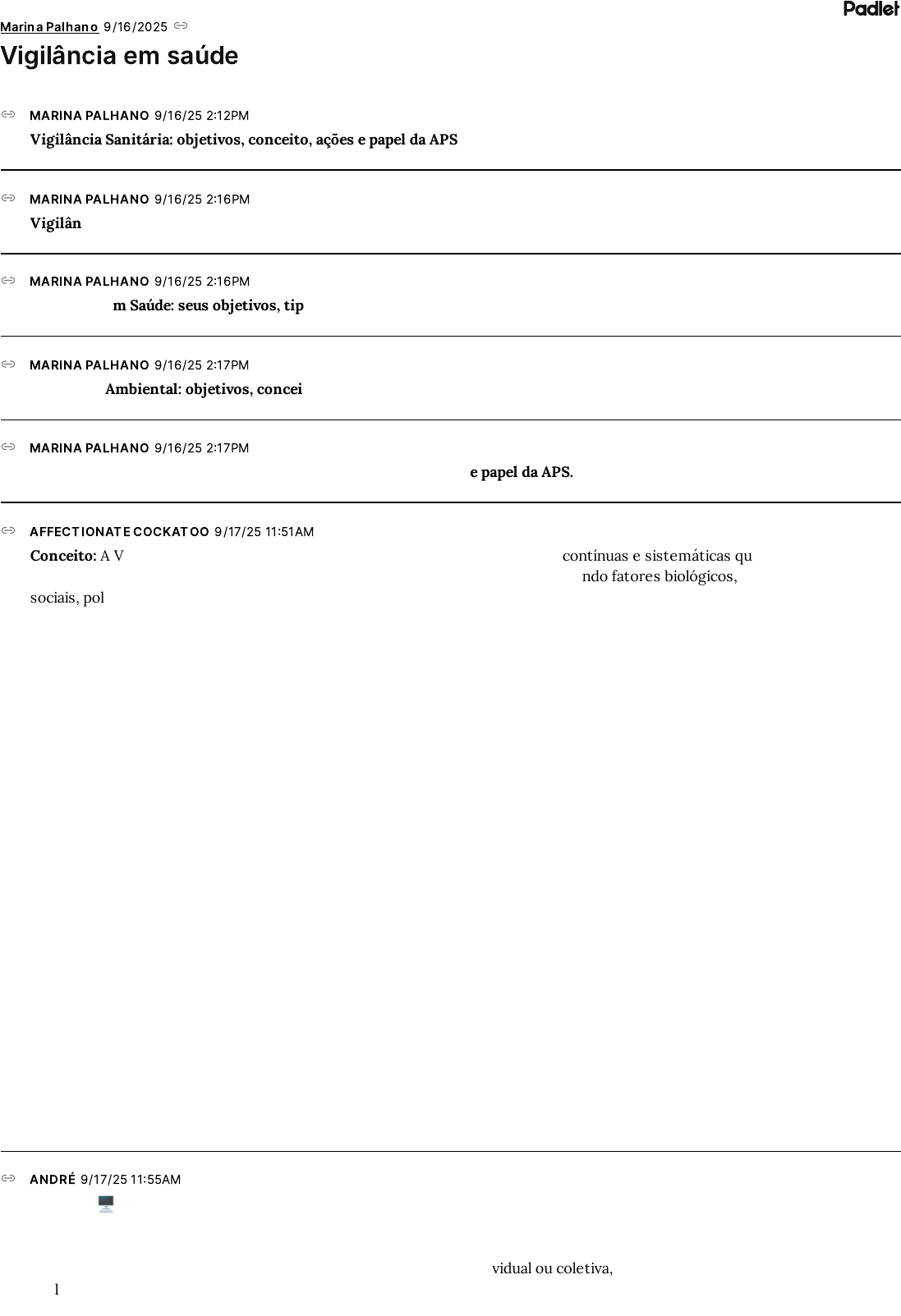 Marina Palhano 9/16/2025 Vigilância em saúde MARINA PALHANO 9/16/25 2�12PM Vigilância Sanitária: objetivos, conceito, ações e papel da APS MARINA PALHANO 9/16/25 2�16PM Vigilância Epidemiológica: objetivos, ações e papel da APS MARINA PALHANO 9/16/25 2�16PM Vigilância em Saúde: seus objetivos, tipos de noti�cação, competências e componentes. MARINA PALHANO 9/16/25 2�17PM Vigilância Ambiental: objetivos, conceito, ações e papel da APS MARINA PALHANO 9/16/25 2�17PM Vigilância em Saúde do Trabalhador: objetivos, conceito, ações e papel da APS. AFFECTIONATE COCKATOO 9/17/25 11�51AM Conceito: A Vigilância em Saúde do Trabalhador (Visat) é o conjunto de ações contínuas e sistemáticas que têm como objeto o processo saúde–doença na relação com o trabalho, considerando fatores biológicos, sociais, políticos e técnicos. Ela ultrapassa a lógica tradicional da medicina do trabalho (voltada ao indivíduo) e da saúde ocupacional (focada no ambiente), adotando uma visão coletiva, interdisciplinar e preventiva. Objetivos: Detectar, conhecer e analisar os fatores determinantes e condicionantes de doenças e agravos relacionados ao trabalho. -Planejar, executar e avaliar intervenções para eliminar ou controlar riscos. Promover, proteger, recuperar e reabilitar a saúde dos trabalhadores. -Integrar vigilância epidemiológica, sanitária e ambiental no SUS. -Reduzir desigualdades no adoecer e morrer entre trabalhadores. Ações principais: A Visat atua em várias frentes, entre elas: 1.Identi�cação e monitoramento de riscos (físicos, químicos, biológicos, mecânicos e ergonômicos). 2.Investigação de acidentes e doenças relacionadas ao trabalho. 3.Fiscalização das condições de trabalho (em articulação com Ministério do Trabalho e Previdência). 4.Educação e promoção da saúde, com foco na prevenção. 5.Articulação intersetorial, envolvendo saúde, trabalho, previdência e meio ambiente. 6.Participação social (Conselhos e Comissões Intersetoriais de Saúde do Trabalhador – CIST). Papel da Atenção Primária à Saúde (APS): A APS é a porta de entrada do trabalhador no SUS e tem papel estratégico porque: -Realiza a identi�cação precoce de riscos, agravos e doenças relacionadas ao trabalho. -Desenvolve ações de promoção e prevenção no território, considerando o per�l produtivo local. -Noti�ca casos suspeitos ou con�rmados de doenças relacionadas ao trabalho (via SINAN). -Encaminha para serviços especializados quando necessário (CEREST, hospitais de referência). -Atua junto à comunidade e às empresas para sensibilização e redução de riscos. ANDRÉ 9/17/25 11�55AM Conceito 🖥 A Lei n. 8080/1990 de�ne vigilância epidemiológica como “um conjunto de ações que proporciona o conhecimento, a detecção ou prevenção de qualquer mudança nos fatores determinantes e condicionantes de saúde individual ou coletiva, com a �nalidade de recomendar e adotar as medidas de prevenção e controle das doenças ou agravo” http://padlet.com/palhanomarina https://padlet.com/palhanomarina/vigil-ncia-em-sa-de-smq79ocsh286kmpr http://padlet.com/palhanomarina https://padlet.com/palhanomarina/vigil-ncia-em-sa-de-smq79ocsh286kmpr/wish/wKmOZ5vqM0EoWzMA http://padlet.com/palhanomarina https://padlet.com/palhanomarina/vigil-ncia-em-sa-de-smq79ocsh286kmpr/wish/E851Q0rPM02AWVAb http://padlet.com/palhanomarina https://padlet.com/palhanomarina/vigil-ncia-em-sa-de-smq79ocsh286kmpr/wish/9kmlZV1gemorQpgV http://padlet.com/palhanomarina https://padlet.com/palhanomarina/vigil-ncia-em-sa-de-smq79ocsh286kmpr/wish/E851Q0rPMROXWVAb http://padlet.com/palhanomarina https://padlet.com/palhanomarina/vigil-ncia-em-sa-de-smq79ocsh286kmpr/wish/j40PQDnp9m3VWvXB https://padlet.com/palhanomarina/vigil-ncia-em-sa-de-smq79ocsh286kmpr/wish/kxodWG1K6RrJQgP7 https://padlet.com/palhanomarina/vigil-ncia-em-sa-de-smq79ocsh286kmpr/wish/YDgnZeXgD64bQwrA (BRASIL, 1990, art.6º, §1º). FRIENDLY STORK 9/17/25 11�56AM Tipos de Noti�cação A vigilância em saúde utiliza as noti�cações de doenças e agravos como base de seu funcionamento. A partir delas, desenvolve um ciclo de ações articuladas: 1. Coleta e processamento de dados: registrar e organizar as informações provenientes das noti�cações feitas pelos serviços de saúde. 2. Análise e interpretação: transformar os dados em informação útil, identi�cando tendências, riscos e prioridades. 3. Divulgação de informações: repassar os resultados para gestores, pro�ssionais e população, orientando a tomada de decisão. 4. Investigação de casos e surtos: aprofundar a apuração quando há suspeita de casos graves, inusitados ou em número acima do esperado. 5. Recomendações e promoção de medidas de controle: propor e implementar ações de prevenção, proteção e controle adequadas à situação identi�cada. ANDRÉ 9/17/25 11�56AM Objetivos da Vigilância Epidemiológica 👮 - Conhecer o per�l de saúde da população por meio de coleta, análise e interpretação contínua de informações. - Detectar precocemente mudanças nos determinantes e condicionantes da saúde. - Prevenir e controlar doenças e agravos de interesse à saúde pública. - Subsidiar o planejamento, a execução e a avaliação das ações de saúde no SUS. - Dar resposta rápida a surtos, emergências e eventos inusitados de saúde pública ANDRÉ 9/17/25 11�58AM Principais Ações da Vigilância Epidemiológica - Noti�cação compulsória de doenças e agravos. - Investigação epidemiológica de casos e surtos. - Adoção de medidas de controle (bloqueio vacinal, isolamento, quarentena). - Coordenação de programas nacionais (como o Programa Nacional de Imunizações – PNI). - Manutenção de redes estratégicas: - Rede Nacional de Laboratórios de Saúde Pública. - Rede Nacional de Alerta e Resposta a Emergências em Saúde Pública (CIEVS). - Análise da situaçã