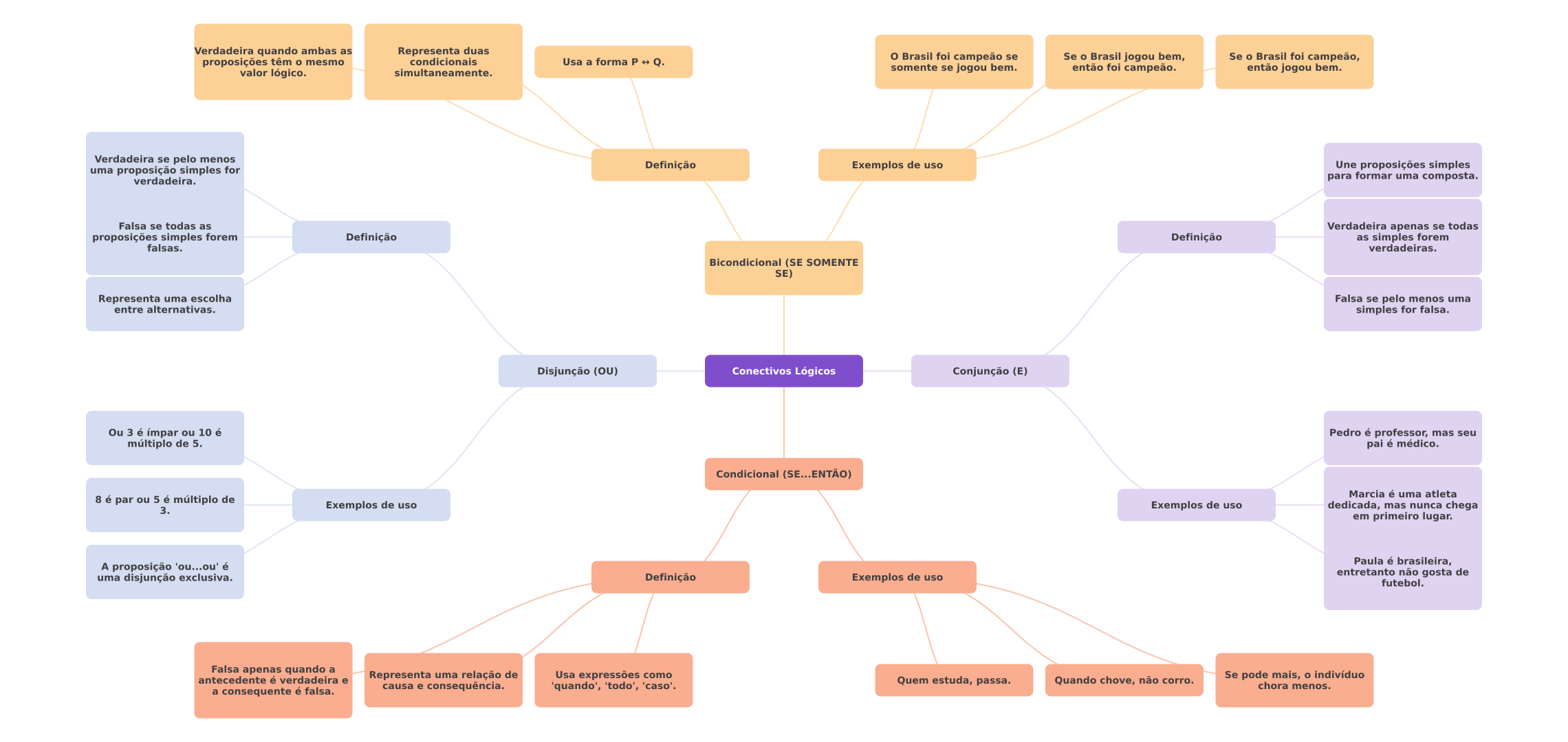 Verdadeira quando ambas as Representa duas proposições têm mesmo condicionais Usa a forma Brasil foi campeão se Se Brasil jogou bem, Se Brasil foi campeão, valor lógico. simultaneamente. somente se jogou bem. então foi campeão. então jogou bem. Verdadeira se pelo menos uma proposição simples for Definição Exemplos de uso Une proposições simples verdadeira. para formar uma composta. Falsa se todas as Verdadeira apenas se todas proposições simples forem Definição Definição as simples forem falsas. verdadeiras. Bicondicional (SE SOMENTE SE) Representa uma escolha Falsa se pelo menos uma entre alternativas. simples for falsa. Disjunção (OU) Conectivos Lógicos Conjunção (E) Ou 3 é ímpar ou 10 é Pedro é professor, mas seu múltiplo de 5. pai é médico. Condicional (SE...ENTÃO) Marcia é uma atleta 8 é par ou 5 é múltiplo de 3. Exemplos de uso Exemplos de uso dedicada, mas nunca chega em primeiro lugar. Paula é brasileira, A proposição 'ou...ou' é uma disjunção exclusiva. Definição Exemplos de uso entretanto não gosta de futebol. Falsa apenas quando a antecedente é verdadeira e Representa uma relação de Usa expressões como Quando chove, não corro. Se pode mais, indivíduo a consequente é falsa. causa e consequência. 'quando', 'caso'. Quem estuda, passa. chora menos.