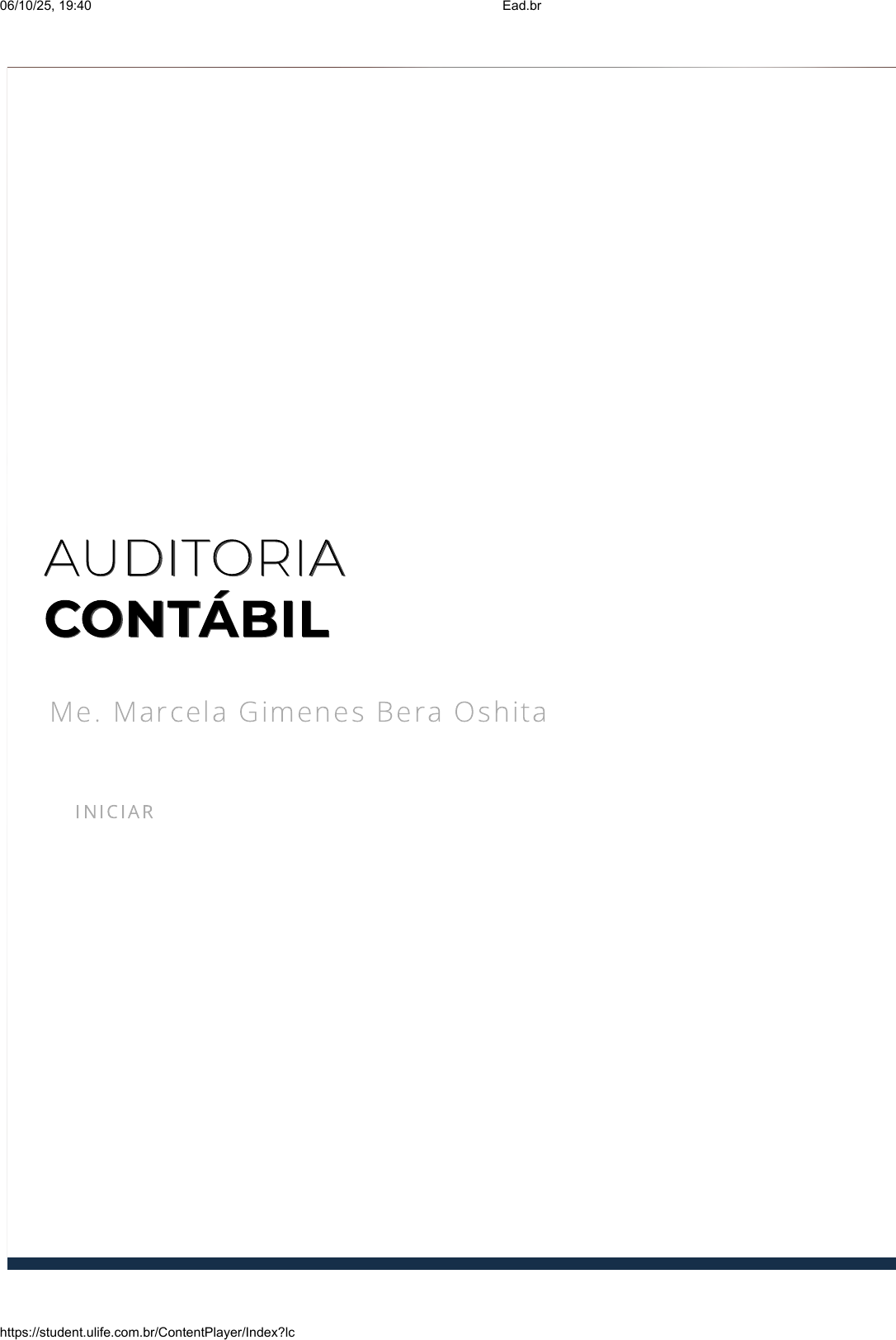 AUDITORIAAUDITORIA CONTÁBILCONTÁBIL Me. Marcela Gimenes Bera Oshita IN IC IAR 06/10/25, 19:40 Ead.br https://student.ulife.com.br/ContentPlayer/Index?lc=aLJL34wjoQ9jXiUSAMOEew%3d%3d&l=xkQ%2bi1dHlE%2be6GEfiSoR1A%3d%3d&cd=Oi… 1/39 introdução Introdução Neste estudo, você poderá compreender os aspectos relacionados ao desenvolvimento da auditoria. Trataremos do tema planejamento e execução da auditoria, compreendendo as questões relacionadas aos controles internos e a sua importância, as necessidades de comunicação e as deficiências nos controles internos. Nesse sentido, vamos conhecer a base do planejamento e execução da auditoria e ainda as questões voltadas para as deficiências dos controles internos. Na sequência, abordaremos as fases do trabalho de auditoria, a comunicação com os responsáveis pela governança e a avaliação de risco. Aprenderemos também sobre o tema planejamento, a questão da materialidade e a execução da auditoria. 06/10/25, 19:40 Ead.br https://student.ulife.com.br/ContentPlayer/Index?lc=aLJL34wjoQ9jXiUSAMOEew%3d%3d&l=xkQ%2bi1dHlE%2be6GEfiSoR1A%3d%3d&cd=Oi… 2/39 Uma execução bem-sucedida, na auditoria, depende em essência da elaboração de um planejamento eficiente. Para isso, exige-se um nível adequado de conhecimento sobre o ramo de atividade da empresa e das práticas operacionais, uma vez que o planejamento é a base sobre a qual todo trabalho deve ser estruturado, funcionando como um guia para atingir o objetivo proposto. Nesse aspecto, o desenvolvimento do planejamento tem como finalidade estabelecer antecipadamente o que deve ser realizado, como, onde, quando e por quem, em um nível de detalhe suficiente, mas sem perder a essência do objetivo geral, sendo que o planejamento tem lugar antes da ação, e por isso ele se deve basear em previsões do que irá acontecer. Nesse sentido, além das metas e objetivos, é importante se atentar aos obstáculos, dificuldades e problemas que poderão surgir e atrapalhar a consecução dos objetivos definidos. Assim, Attie (2018) orienta que o planejamento deve considerar todos os itens relevantes na execução do trabalho, em especial: o conhecimento das Planejamento e ExecuçãoPlanejamento e Execução da Auditoriada Auditoria 06/10/25, 19:40 Ead.br https://student.ulife.com.br/ContentPlayer/Index?lc=aLJL34wjoQ9jXiUSAMOEew%3d%3d&l=xkQ%2bi1dHlE%2be6GEfiSoR1A%3d%3d&cd=Oi… 3/39 práticas contábeis utilizadas pela empresa e as alterações em relação ao exercício anterior; o conhecimento do sistema contábil e de controles internos e seu nível de confiabilidade; os riscos de auditoria da entidade, pelo volume de transações ou complexidade de suas atividades; a natureza, a oportunidade e a extensão dos procedimentos de auditoria a serem aplicados; a existência de entidades associadas, filiais e partes relacionadas; o uso dos trabalhos de outros auditores; a natureza, o conteúdo e a oportunidade dos pareceres, relatórios e informações a serem entregues à empresa; e a necessidade de atender a prazos estabelecidos por entidades reguladoras ou fiscalizadoras. O auditor deve documentar seu planejamento e desenvolver programas de trabalho por escrito de forma detalhada para servir como guia e meio de controle de sua execução. O planejamento e os programas de trabalho devem ser revisados e atualizados sempre que novos fatos o recomendarem. Por sua vez, quando for realizada uma auditoria pela primeira vez, na empresa, ou também quando as demonstrações contábeis do exercício anterior tenham sido examinadas por outro auditor, de acordo com Attie (2018) no planejamento deve-se observar os seguintes procedimentos: obtenção de evidências suficientes de que as informações exercício anterior não distorcem as demonstrações contábeis do exercício atual; exame da adequação dos saldos de encerramento do exercício anterior com os saldos de abertura do exercício atual; verificação se as práticas contábeis são uniformes com as adotadas no exercício anterior; identificação de fatos relevantes que possam afetar a situação patrimonial e financeira; e a identificação de fatos relevantes ao exercício anterior, revelados ou não revelados. O planejamento da auditoria é um processo que se inicia na etapa de avaliação para a contratação dos serviços. Etapa essa em que devem ser buscadas as informações necessárias para conhecer o tipo de atividade da organização, a sua complexidade, a legislação cabível, os relatórios, o parecer e os outros informes a serem emitidos, para, dessa forma, determinar o trabalho a ser realizado. 06/10/25, 19:40 Ead.br https://student.ulife.com.br/ContentPlayer/Index?lc=aLJL34wjoQ9jXiUSAMOEew%3d%3d&l=xkQ%2bi1dHlE%2be6GEfiSoR1A%3d%3d&cd=Oi… 4/39 Assim, os principais objetivos do planejamento da auditoria, conforme Attie (2018), são: obter conhecimento das atividades da entidade, para identificar eventos e transações relevantes que afetem as demonstrações contábeis; propiciar o cumprimento dos serviços contratados dentro dos prazos e compromissos previamente estabelecidos; assegurar que as áreas importantes e os valores relevantes contidos em suas demonstrações contábeis recebam a atenção requerida; identificar os problemas potenciais da entidade e a legislação aplicável; estabelecer a natureza, a oportunidade e a extensão dos exames a serem efetuados, de acordo com proposta de serviços para a realização do trabalho; definir a forma de divisão das tarefas; facilitar a supervisão dos serviços executados; propiciar a coordenação do trabalho a ser realizado por outros auditores; buscar a coordenação do trabalho a ser realizado por auditores internos; e identificar os prazos para entrega de relatórios, pareceres e outros informes decorrentes do trabalho contratado. Neste contexto, o conteúdo do planejamento abrange, mas não se limita ao cronograma, procedimentos de auditoria, relevância e planejamen