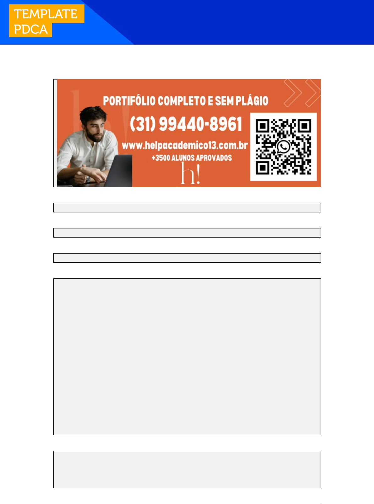 ALUNO: CURSO: NUTRIÇÃO - BACHARELADO COMPONENTE CURRICULAR: PROJETO DE EXTENSÃO II - NUTRIÇÃO PROGRAMA DE EXTENSÃO: PROGRAMA DE SUSTENTABILIDADE. FINALIDADE E MOTIVAÇÃO: O programa extensionista voltado as ações de Sustentabilidade do curso de Nutrição possui a finalidade de apoiar a comunidade por meio da disseminação do conhecimento adquirido no curso, priorizando o cuidado e compreensão do meio ambiente. Tais ações poderão reduzir impactos socioambientais negativos e criar uma cultura regenerativa para gerar impactos positivos que irão refletir no meio ambiente, que são importantes para possibilitar uma continuidade do uso de recursos naturais de forma sustentável. Ao identificar as problemáticas ambientais da comunidade os alunos terão a motivação para efetuar as ações de apoio relacionadas ao curso, pelas quais poderão ser desenvolvidas competências técnicas e soft skills específicas. Os conteúdos programáticos sugeridos para correlacionar as ações são: Segurança alimentar e nutricional; Políticas públicas de alimentação e nutrição; Educação alimentar e nutricional; Bioquímica nutricional. Os locais que poderão contemplar esse projeto são: Parcerias com a Prefeitura; Associações de Bairros; Associações Comerciais; ONGs; UBS; Hospitais; Clínicas de Saúde Públicas e Privadas; Centros de Saúde; Casas de Repouso; Instituições de Longa Permanência para Idosos; Creches; Templos Religiosos e Escolas. COMPETÊNCIAS: I - Planejar, executar e avaliar políticas públicas, programas e ações de alimentação e nutrição; II - Gerenciar os processos administrativos em serviços de alimentação; III - Realizar o controle de qualidade dos alimentos. PERFIL DE EGRESSO: O perfil do egresso do curso de Nutrição idealizado pela IES proporciona a formação de um profissional, humanista, crítico, reflexivo, ético e generalista. A atuação no Programa de Sustentabilidade, demonstra as habilidades para atuar em atividades de planejamento, gerenciamento e avaliação de unidades de alimentação e nutrição, visando a manutenção e ou melhoria das condições de saúde de coletividades sadias e enfermas; realizar diagnósticos e intervenções na área de alimentação e nutrição considerando a influência sociocultural e econômica que determina a disponibilidade, consumo e utilização biológica dos alimentos pelo indivíduo e pela população; atuar 1 Público em equipes multiprofissionais destinadas a planejar, coordenar, supervisionar, implementar, executar e avaliar atividades na área de alimentação e nutrição e de saúde; investigar e aplicar conhecimentos com visão holística do ser humano integrando equipes multiprofissionais. SOFT SKILLS (COMPETÊNCIAS SOCIOEMOCIONAIS): Tomada de Decisão Planejamento e organização Análise e resolução de problemas OBJETIVOS DE APRENDIZAGEM: O objetivo da extensão no Programa de Sustentabilidade do curso Nutrição está relacionado a transferir para a sociedade os conhecimentos desenvolvidos no curso mediante projetos e ações de apoio na resolução de diversas problemáticas no âmbito da sustentabilidade, auxiliando a comunidade e potencializando a aplicação dos conhecimentos adquiridos no curso, ampliando o desenvolvimento das habilidades do egresso. CONTEÚDOS: I - Segurança alimentar e nutricional; II - Políticas públicas de alimentação e nutrição; III - Educação alimentar e nutricional; IV - Bioquímica nutricional. INDICAÇÕES BIBLIOGRÁFICAS: FREITAS, Alexandra Corrêa de. Segurança alimentar e nutricional. Londrina: Editora e Distribuidora Educacional S.A., 2019. PONTIERI, Flávia Melo. Políticas e programas aplicados à saúde e nutrição. Londrina: Editora e Distribuidora Educacional S.A., 2019. GALISA, Mônica Santiago ...[et al]. Educação alimentar e nutricional: da teoria à prática. Rio de Janeiro: GEN, 2014. BRINQUES, Graziela Brunch. Bioquímica humana aplicada à nutrição. São Paulo: Pearson, 2014. TEMPLATE PDCA Aluno e Aluna, essa atividade é para sua organização e uso da metodologia PDCA. Por isso é um documento orientativo e não precisa ser entregue. Veja as orientações apresentadas no MANUAL DE ATIVIDADES EXTENSIONISTAS. 1. PLANEJAMENTO (PLAN) Antes de definir sua proposta, explore os Objetivos de Desenvolvimento Sustentável (ODS) da Organização das Nações Unidas (ONU) no link https://brasil.un.org/pt-br/sdgs. Se preferir, pode 2 baixar o documento pelo link https://brasil.un.org/sites/default/files/2020-09/agenda2030-pt- br.pdf. Compreenda a proposta da ONU e engaje-se nessa oportunidade de contribuir com as metas de um organismo internacional tão importante ao mesmo tempo em que participa de soluções de seu contexto! Analise os 17 objetivos e escolha quais metas podem ser aderentes à sua proposta e ao seu projeto. Para isso, clique no ícone de cada objetivo e observe a listagem de metas disponível em cada um. É necessário que você escolha pelo menos uma meta. Pode ser que você encontre metas aderentes à sua proposta em diferentes objetivos, mas não se restrinja. Pode escolher dessa forma e mantenha o foco da essência de sua proposta. Feito isso, liste aqui suas escolhas. Essa informação também deverá ser declarada em seu Relatório Final de Atividades Extensionistas. LISTAR METAS DOS ODS ADERENTES AO SEU PROJETO DEFINA A PROPOSTA. IMERSÃO: DEFINA OS ITENS DA IMERSÃO Segue sugestão de perguntas para utilizar na entrevista com o parceiro. SUGESTÃO DE SCRIPT DE ENTREVISTA 1. Quais os principais problemas, fragilidades ou dificuldades que a instituição/parceiro convive com maior frequência? 1.1. Os problemas estão articulados com o programa/conteúdo proposto no componente curricular? Se não estiver, será necessário voltar à pergunta 1. 1.2. É possível resolver ou mitigar os problemas identificados no prazo de duração de projeto de extensão. Se não for possível deve voltar à pergunta 1. 1