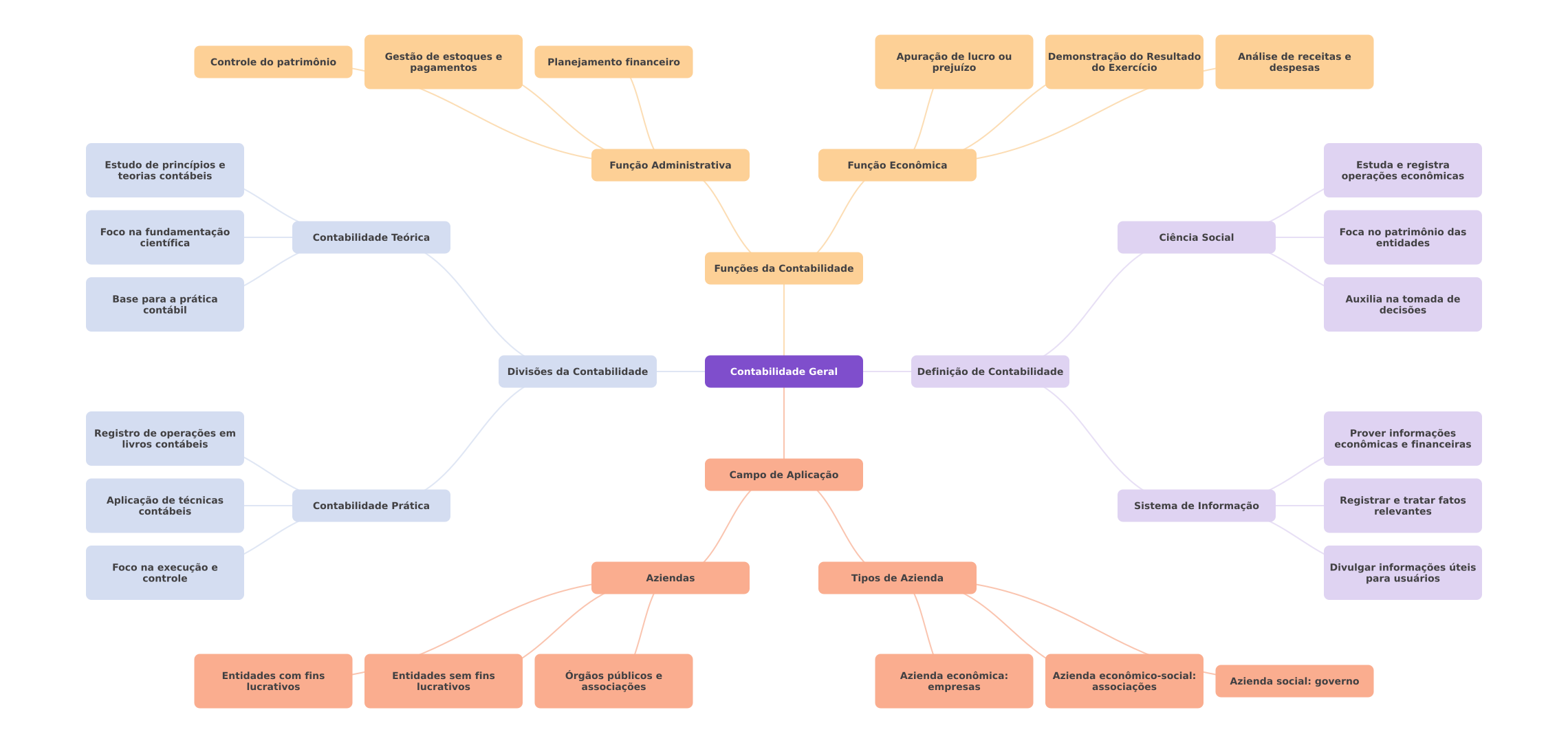 Gestão de estoques e Apuração de lucro ou Demonstração do Resultado Análise de receitas e Controle do patrimônio Planejamento financeiro pagamentos prejuízo do Exercício despesas Estudo de princípios e Função Administrativa Função Econômica Estuda e registra teorias contábeis operações econômicas Foco na fundamentação Contabilidade Teórica Ciência Social Foca no patrimônio das científica entidades Funções da Contabilidade Base para a prática Auxilia na tomada de contábil decisões Divisões da Contabilidade Contabilidade Geral Definição de Contabilidade Registro de operações em Prover informações livros contábeis econômicas e financeiras Campo de Aplicação Aplicação de técnicas Contabilidade Prática Sistema de Informação Registrar e tratar fatos contábeis relevantes Foco na execução e Divulgar informações úteis controle Aziendas Tipos de Azienda para usuários Entidades com fins Entidades sem fins Órgãos públicos e Azienda econômica: Azienda econômico-social: lucrativos lucrativos associações associações Azienda social: governo empresas