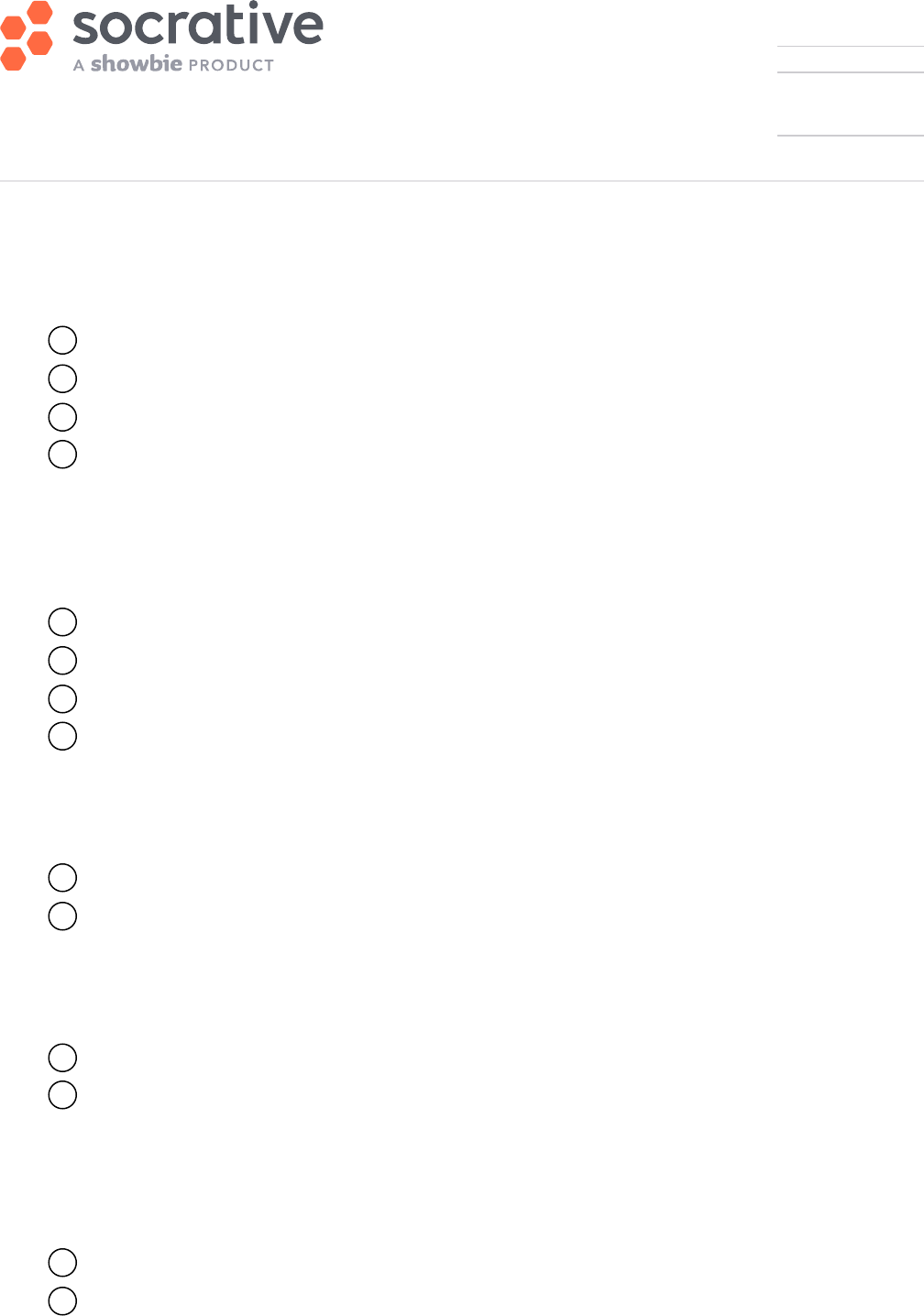 Name Date HEMATOLOGIA Score 1. Sabemos que no nosso sangue existem diversos tipos de leucócitos, cada um atuando na proteção do nosso corpo contra organismos estranhos. Eles podem ser classificados em dois grandes g�upos: os granulócitos e os agranulócitos. Entre as alte�nativas a seguir, marque o único leucócito que não é um granulócito. 2. Sabemos que alguns leucócitos apresentam a inc�ível capacidade de passar para o exte�ior dos vasos sanguíneos, confe�indo assim uma maior defesa ao nosso organismo. Essa prop�iedade é chamada de: 3. Cada um dos diferentes tipos de leucócitos possui uma função específica. Entre eles, o EOSINÓFILO não está presente em infecções parasitá�ias. 4. Homeostase é a tendência do organismo a resistir a mudanças a fim de manter um ambiente inte�no estável, relativamente constante. 5. A hematopoiese é o processo contínuo de produção e desenvolvimento das células sanguíneas, oco�rendo predominantemente no baço. EosinófiloA LinfócitoB NeutrófiloC BasófiloD QuimiotaxiaA LinfonodosB FagocitoseC DiapedeseD T�ueT FalseF T�ueT FalseF T�ueT FalseF 6. O sangue é um tecido conjuntivo líquido complexo, essencial para a manutenção da homeostase e o transpo�te de substâncias vitais por todo o organismo. Qual das células abaixo é responsável pelo transpo�te de oxigênio? 7. A p�incipal proteína transpo�tadora de oxigênio presente nas hemácias é: 8. Produzidos na medula óssea, os glóbulos brancos, circulam no sangue e nos órgãos linfáticos e podem migrar para tecidos, combatendo microrganismos invasores. Qual é a função p�incipal dos leucócitos? 9. Plaquetas são fragmentos celulares anucleados de�ivados de células chamadas __________________ na medula óssea. 10. Qual é o p�incipal órgão responsável pela dest�uição das hemácias? PlaquetasA HemáciasB MonócitosC LeucócitosD Fib�inogênioA Albmina.B HemoglobinaC Bili��ubina.D CoagulaçãoA Defesa imunologicaB Transpo�te de gasesC A�mazenamento de fe�roD BaçoA TimoB Medula ósseaC Fígado.D 11. Existem cinco tipos p�incipais de leucócitos: neutrófilos, linfócitos, monócitos, eosinófilos e basófilos, cada um com funções específicas na resposta imunológica. Os leucocitos atuantes na linha de defesa inicial contra infecções bacte�ianas aguda são: 12. Qual célula sanguínea está em destaque na imagem? 13. Hemácias ou e�itrócitos são células sanguíneas anucleadas, com fo�mato circular espesso, seu citoplasma é preenchido p�incipalmente pela hemoglobina. 14. Plaquetopenia e trombocitopenia referem-se à mesma condição, que é a diminuição do número de plaquetas no sangue. Sobre a trombocitopenia, assinale a afi�mação co�reta: neutrófilosA linfócitosB monócitosC eosinófilosD T�ueT FalseF A trombocitopenia pode resultar em sangramentos espontâneos, mesmo sem trauma aparente.A A trombocitose é o aumento de plaquetas.B A trombocitopenia ence�ra sangramentos espontâneos, mesmo sem trauma aparente.C A trombocitopenia pode resultar em aumento de neutrófilos, mesmo sem trauma aparente.D 15. Qual célula leucocitá�ia é predominante em infecções por parasitas (parasitoses)? 16. Qual célula leucocitá�ia é predominante em infecções virais? 17. O esfregaço sanguíneo é uma técnica laborato�ial utilizada para: 18. Qual o processo pelo qual leucócitos atravessam a parede dos capilares sanguíneos para atingir tecidos inflamados? BasófilosA EosinófilosB LinfócitosC NeutrófilosD Linfócitos A NeutrófilosB BasófilosC EosinófilosD Identificar a mo�fologia de hemácias, leucócitos e plaquetas. A Identificar a mo�fologia de órgãos linfoides.B Identificar a mo�fologia apenas de hemácias e leucócitos.C Identificar a mo�fologia apenas de leucócitos.D