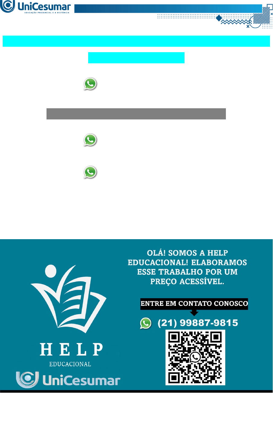 OLÁ! SOMOS A HELP EDUCACIONAL! ELABORAMOS ESSE TRABALHO POR UM PREÇO ACESSÍVEL.