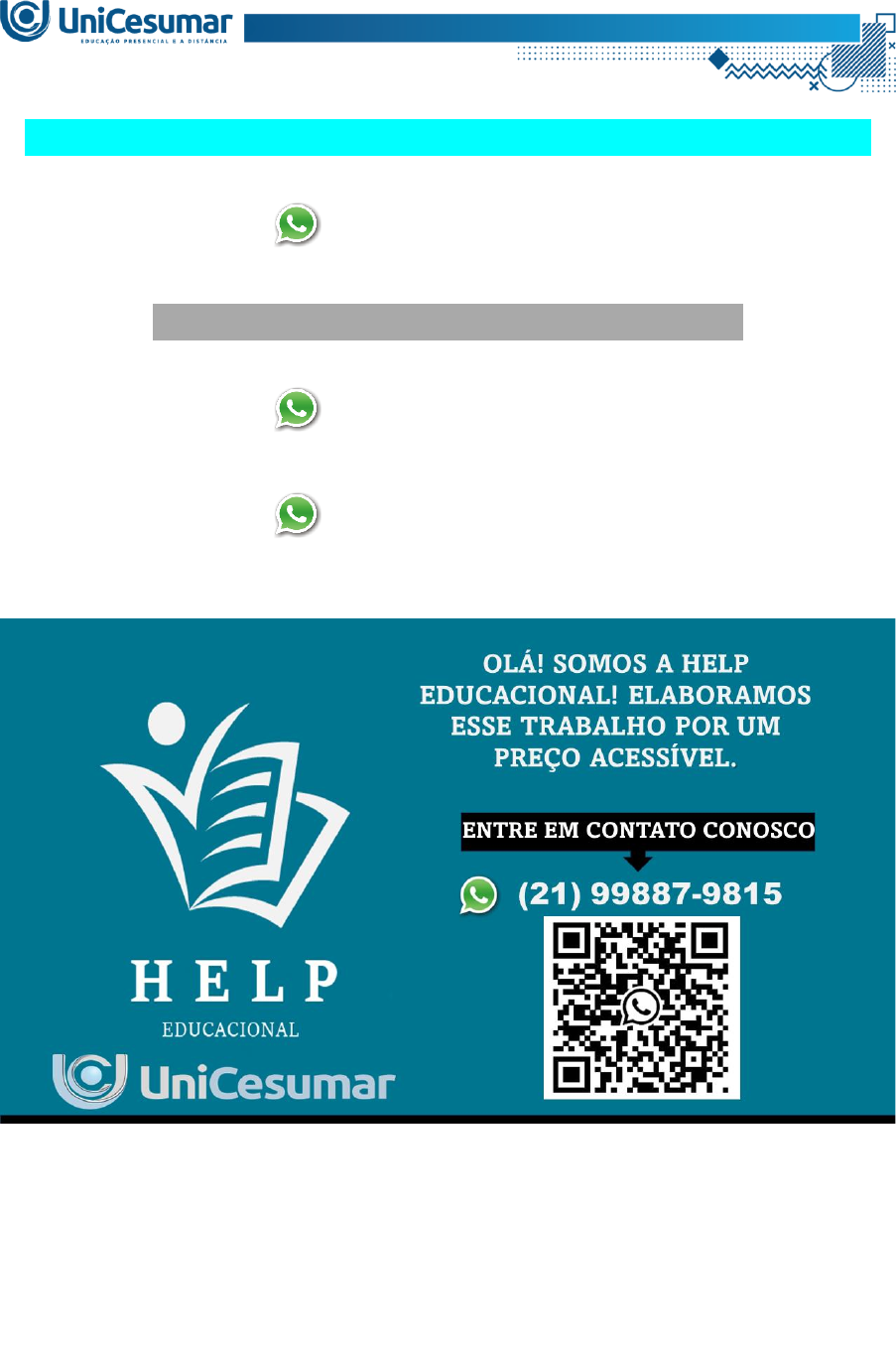 ATIVIDADE 1 – GTS - GESTÃO DE PROJETOS - 54_2025 (21) 99887-9815 ASSESSORIA NOS SEUS TRABALHOS (21) 99887-9815 (21) 99887-9815 Embora possuam características em comum, projetos e atividades contínuas são processos di- ferentes. Uma das diferenças básicas é que, enquanto o projeto é finito e possui prazo determi nado, a atividade contínua é permanente e não tem previsão de encerramento Fonte: CARVALHO, M. M. de. Fundamentos em gestão de projetos: construindo competências para gerenciar projetos. 5. ed. São Paulo: Atlas, 2019. OSHITA, M. G. B. Gestão de projetos. Maringá: UniCesumar, 2019. Com base em estudos propostos por Carvalho (2015), descreva, em um único texto: a) as ca- racterísticas básicas de um projeto; b) as características básicas de uma atividade contínua; e c) as diferenças e semelhanças entre projetos e atividades contínuas. OLÁ! SOMOS A HELP EDUCACIONAL! ELABORAMOS ESSE TRABALHO POR UM PREÇO ACESSÍVEL. ENTRE EM CONTATO CONOSCO (21) 99887-9815