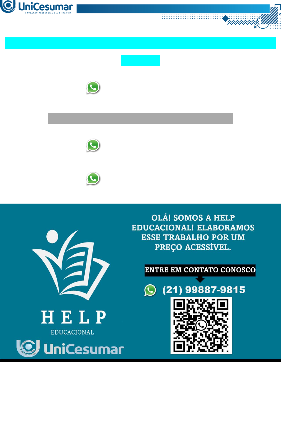 MAPA – ENF - FUNDAMENTOS DE GENÉTICA HUMANA - 54_2025 (21) 99887-9815 ASSESSORIA NOS SEUS TRABALHOS (21) 99887-9815 (21) 99887-9815 Texto introdutório Problemas de saúde, síndromes e doenças podem ser causadas por alterações cro- mossômicas e mutações de DNA. As síndrome causadas por alterações/aberrações cromossômicas podem ser do tipo numérica, quand4o existe uma cópia excedente ou ausência de um cromossomo autossômico ou sexual. Dentre as síndromes causadas por alterações numéricas está a síndrome de Down, ou trissomia do cromossomo 21. As alterações também podem ser do tipo estrutural, quando há alteração na estru- tura do cromossomo, como por exemplo a deleção de partes do DNA. Um exemplo de síndrome causada por alteração na estrutura do cromossomo é a síndrome de cri-du-chat, conhecida como miado do gato, causada pela deleção de parte do braço curto de uma dos cromossomos do par 5. Já as mutações de DNA podem ser causadoras de doenças, ou serem imperceptí- veis. As mutações de DNA geram variabilidade genética, sendo que essas muta- ções podem mudar alelos. Dessa forma, temos doenças como por exemplo a acata- lasia, ou acatelasemia, ou ainda doença de Takahara. Essa doença é caracterizada pela deficiência na produção da enzima catalase, resultando na deficiência da ativi- dade enzimática nos eritrócitos. Na maioria dos casos é assintomática, no entanto, podem estar presentes ulcerações orais seguidas de gangrena. A acatalasemia é causada por um gene autossômico recessivo, e expressa apenas quando em homozigose. Fonte: o professor. Situação de aprendizagem Ao estagiar em um hospital, você, participa de uma equipe multidisciplinar que está acompanhando um pré-natal, em que há particularidades a serem analisadas. O médico responsável pela gestante, apresenta a vocês o caso dessa mulher. Caso A gestante com aproximadamente 14 semanas de gravidez, durante a anamnese ci- tou que em sua família há a presença de acatalasia Sabendo dessa informação, o médico solicitou o aconselhamento genético para descobrir a chance de a criança apresentar acatalasia, além disso, foi solicitado um exame cariotípico do feto, devido a uma pequena suspeita de síndrome cromossô- mica, gerada devido uma observação durante o ultrassom morfológico. Exame 1: aconselhamento genético Para o aconselhamento genético foram coletados os seguintes dados. Gestante: não apresenta acatalasia, no entanto, sua mãe apresenta acatalasia. O pai da gestante, assim como toda família paterna não apresentam acatalasia, sendo todos homozigotos dominantes para o caráter. Genitor (pai): não apresente acatalasia, no entanto, em um exame realizado quando adolescente, foi identificado que é heterozigoto para o caráter. Exame 2: cariotipagem fetal Após cariotipagem do feto, foi identificado o seguinte cariótipo. Fonte: www.shutterstock.com AGORA RESPONDA 1- Sobre o aconselhamento genético: a) Qual é o genótipo da gestante e do genitor(pai) para a acatalasia? b) Sabendo do genótipo dos pais, qual é a probabilidade da criança apresentar aca- talasia? Realize os cálculos de genética mendeliana e apresente-os no quadro de Punnett. c) Em uma próxima gravidez, qual é a probabilidade de nascer uma criança sem acatalasia? 2- Sobre a análise do cariótipo: a) Analisando o resultado do cariótipo fetal, qual é sua conclusão? A criança apre- senta alguma síndrome? Justifique sua resposta e apresente as características da síndrome diagnosticada. b) Qual o sexo da criança apresentado no cariótipo? c) A síndrome diagnosticada pode ser encontrada no sexo masculino e no sexo fe- minino? Justifique sua resposta. Orientações importantes: 1. Leia o livro da disciplina. 2. Assista às aulas conceituais e ao vivo. 3. Baixe o "Formulário Padrão do MAPA", disponível no ambiente Studeo, na pasta “Material da Disciplina”, e preencha corretamente todos os campos solicitados. 4. Anexe seu “Formulário Padrão do MAPA” respondido, no espaço específico da atividade MAPA. 5. Antes de clicar em "Finalizar" certifique-se que o arquivo anexado é o correto. 6. Lembre-se de clicar em “Finalizar” para efetivar sua participação. 7. Caso utilize materiais de outros autores, não se esqueça de referenciar correta- mente, pois o uso de trechos ou textos não referenciados será considerado plágio. 8. A equipe de professores mediadores está à sua disposição para o atendimento das dúvidas por meio do “Fale com o Mediador” em seu Studeo. Aproveite essa fer- ramenta! Bons estudos, sucesso! Boa Atividade! OLÁ! SOMOS A HELP EDUCACIONAL! ELABORAMOS ESSE TRABALHO POR UM PREÇO ACESSÍVEL. ENTRE EM CONTATO CONOSCO (21) 99887-9815