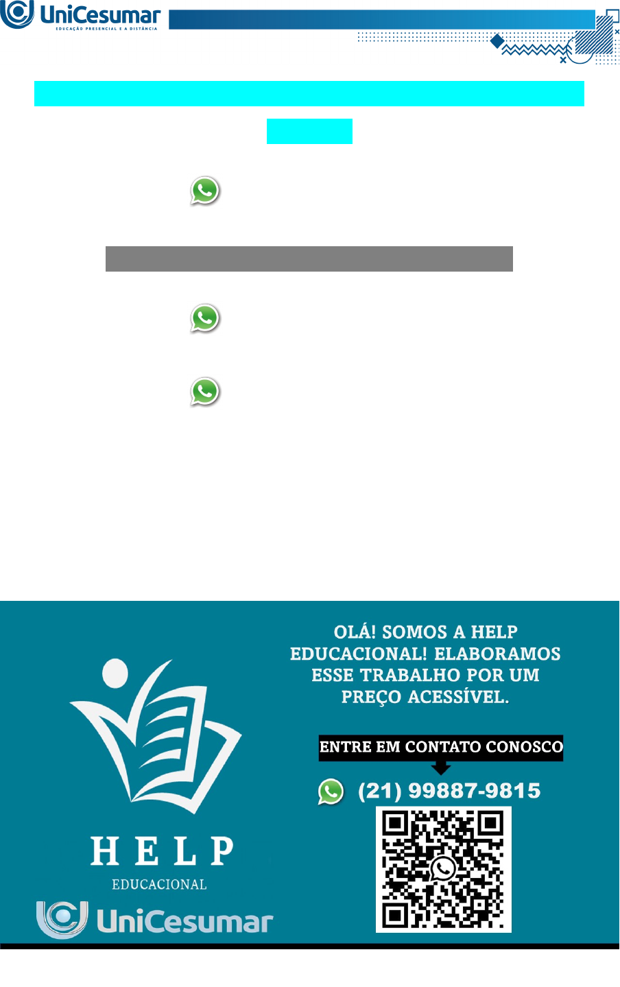 ATIVIDADE 1 – BEDU - ATIVIDADES DE ACADEMIA - 54_2025 (21) 99887-9815 ASSESSORIA NOS SEUS TRABALHOS (21) 99887-9815 (21) 99887-9815 Suponha que você trabalha com a modalidade de Ciclismo Indoor (Spinning) e um dos seus alunos lhe diz que comprou um monitor de frequência cardíaca para melhor controlar a intensidade dos treinos. Diante disso, você diz a ele que é necessário, então, determinar uma zona de treinamento, para maximizar as melhoras na aptidão cardiorrespiratória (ou aptidão aeróbia) dele. Assim, ele lhe faz as seguintes perguntas: “o que é a aptidão cardiorrespiratória (ou aptidão aeróbica)? Ela é importante para a saúde também?” E, “utilizando o frequencímetro, qual é a zona de treinamento que eu devo respeitar durante as aulas de Ciclismo Indoor?” Fonte: o Professor Desta forma, nesta Atividade de Estudo, você deverá responder todas as perguntas que o aluno apresentou. A respeito da zona de treinamento, para determiná-la considere um indivíduo com 32 anos de idade e Frequência cardíaca de repouso igual a 63 BPM; seu limite inferior e superior de treino sendo respectivamente, 55% e 80%. Para esta última pergunta, você deverá apresentar os cálculos completos e as respectivas respostas da Frequência cardíaca máxima, da Frequência cardíaca de treinamento do limite inferior e a Frequência cardíaca de treinamento do limite superior. Questão 1: “o que é a aptidão cardiorrespiratória (ou aptidão aeróbica)? Ela é importante para a saúde também?” Questão 2: “utilizando o frequencímetro, qual é a zona de treinamento que eu devo respeitar durante as aulas de Ciclismo Indoor?” OLÁ! SOMOS A HELP EDUCACIONAL! ELABORAMOS ESSE TRABALHO POR UM PREÇO ACESSÍVEL. ENTRE EM CONTATO CONOSCO (21) 99887-9815 image1.png image2.png image3.png
