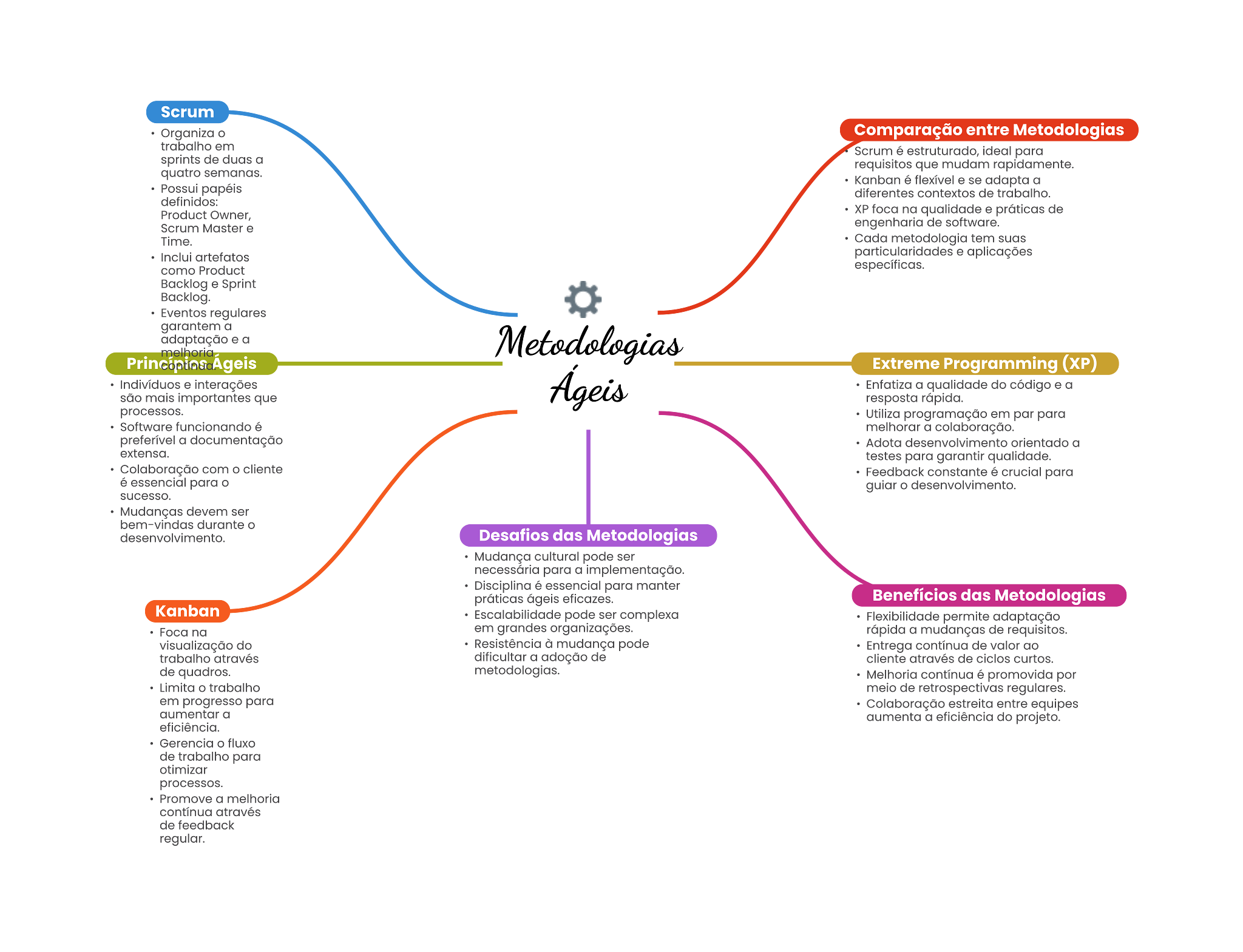 Scrum Organiza Comparação entre Metodologias trabalho em Scrum estruturado, ideal para de a requisitos que mudam quatro Kanban adapta a Possul diferentes contextos de trabalho. definidos: Product Owner, XP foca na qualidade . práticas de Scrum Master . engenharia de software. Time. Cada metodologia tern . aplicações como Product Backlog . Sprint Backlog. Eventos regulares garantem a adaptação . a Ageis Extreme Programming interações a qualidade do código a mais importantes que resposta rápida. processos. Utiliza programação em par para Software funcionando melhorar colaboração. a documentação Adota orientado a extensa. testes para garantir qualidade. Colaboração com cliente Feedback constante crucial para essencial para o desenvolvimento. sucesso. Mudanças devem ser durante Desafios das Metodologias Mudança cultural pode para a implementação. Disciplina essencial para manter Benefícios das Metodologias Kanban pode ser complexa permite adaptação Foca na em grandes organizações. a mudanças de requisitos. do à mudança pode Entrega continua de valor através dificultar a adoção de cliente atravée de de quadros. metodologias. continua promovida por Limita trabalho meio de retrospectivas regulares. em progresso para Colaboração estreita entre equipes a a eficiência do projeto. eficiência. Gerencia fluxo de trabalho para otimizar processos. Promove melhoria continua de feedback regular.