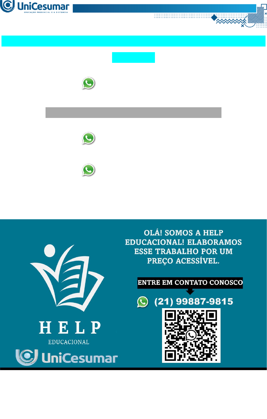 ATIVIDADE 1 – FAR - BIOESTATÍSTICA E EPIDEMIOLOGIA - 54_2025 (21) 99887-9815 ASSESSORIA NOS SEUS TRABALHOS (21) 99887-9815 (21) 99887-9815 A Catapora é uma infecção causada pelo vírus varicela-zoster, altamente contagi- osa, mas geralmente sem gravidade. É comum em crianças menores de 10 anos e confere imunidade vitalícia após o contágio. O vírus pode reativar-se na forma de herpes zoster. Transmite-se pelo contato com saliva, secreções respiratórias ou lí quido das vesículas. O período de incubação é de cerca de 15 dias, e a recupera- ção leva de sete a 10 dias. Fonte: SOCIEDADE BRASILEIRA DE DERMATOLOGIA. Disponível em: https://www.sbd.org.br/doencas/catapora/ . Acesso: 12 de mar 2025. (com adapta- ções) Considere que você trabalhe em um hospital e tenha sido encarregado de analisar os prontuários de uma população de crianças com idade entre 0 e 10 anos que foram acometidas com catapora. Considere ainda, que a tabela que segue, apresenta a distribuição de frequência referente à idade dessas crianças. Na tabela, cada classe de valores inclui o limite inferior e exclui o limite superior, exceto pela última classe, que abrange ambos os limites. A) Algumas informações estão ausentes e precisam ser determinadas com base nas relações existentes entre os elementos da distribuição de frequência. Com isso, COMPLETE os dados que estão faltando. Tabela – Distribuição de frequência das idades de crianças com catapora atendidas em um hospital. * Fonte: elaborado pelo professor, 2025. *dados fictícios Com base nessas informações e após completar a tabela, responda aos itens abaixo: B) CLASSIFIQUE a variável idade em qualitativa ou quantitativa, discreta ou contí- nua. C) RESPONDA: Qual o total de crianças que foram acometidas com catapora? D) CITE o percentual de crianças que apresentaram idade inferior a 4 anos. Orientações para desenvolver sua Atividade de Etudo 1 (AE1): 1. Leia o livro da disciplina. 2. Assista às aulas conceituais. 3. Assista ao video de orientações para a realização da atividade. Link de acesso: https://youtu.be/E6ISK-NKZ9g (copiar e colar no navegador de internet). 4. Baixe o "Modelo de entrega da AE1", disponível no ambiente Studeo, na pasta “Material da Disciplina”, e preencha corretamente todos os campos solicitados. 5. Anexe seu modelo de entrega da AE1 respondido no espaço especifico da Ativi- dade de Estudo 1 6. Lembre-se de clicar em “Finalizar” para efetivar sua participação. 7. Evite plagio de informações, lembre-se que evidências de cópias de materiais, in- cluindo de outros academicos, sem devidas referencias, serão inquestionavelmente zeradas. As citações e referencias, mesmo que do livro da disciplina, devem ser re- alizadas conforme normas da Instituição de Ensino. *Essa atividade faz parte da composição de notas da disciplina. Sua realização é muito importante. Bom trabalho! OLÁ! SOMOS A HELP EDUCACIONAL! ELABORAMOS ESSE TRABALHO POR UM PREÇO ACESSÍVEL. ENTRE EM CONTATO CONOSCO (21) 99887-9815