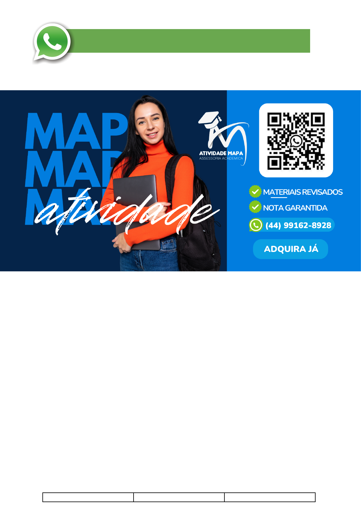 RESPOSTA- (44) 99162-8928 MAPA - BEDU - ATIVIDADES DE ACADEMIA - 54_2025 Nas academias, a ginástica de condicionamento se consolidou enquanto modalidade de exercício físico como um meio de aprimorar os componentes da aptidão física, como resistência, força e flexibilidade, por meio de aulas coletivas, coreografadas e orientadas por diferentes estilos musicais. No cenário atual, existe uma grande variedade de modalidades de ginástica que podem ser ofertadas nas academias. Estas modalidades podem ou não fazer uso de diferentes equipamentos e tecnologias, e foram/são desenvolvidas para atender os diversos públicos que frequentam este local de treinamento. Fonte: MATSUO, A. R.; IBA, F.L. Atividades de academia. Maringá: Unicesumar, 2020 (adaptado). Diante do contexto apresentado acima, suponha que você está estagiando em uma academia e o coordenador lhe dá novas atribuições, agora no setor da ginástica de academia. Antes de iniciar suas tarefas neste novo setor, para testar seus RESPOSTA- (44) 99162-8928 conhecimentos sobre a área, o coordenador lhe aplicou 4 atividades. Estas atividades estão descritas no MODELO DE MAPA – ATIVIDADES DE ACADEMIA. Sendo assim, siga as orientações abaixo. Orientações para a realização da atividade - Faça o download do arquivo MODELO DE MAPA – ATIVIDADES DE ACADEMIA, que se encontra no Material da Disciplina; - Leia atentamente as informações e tire suas dúvidas com o professor mediador antes de entregar sua atividade; - Utilize o livro (PDF) da disciplina como principal fonte de apoio; - Antes de entregar a atividade, confira se o arquivo está correto (poderá ser entregue o arquivo em formato Word ou PDF). - Todas as atividades do curso são avaliadas conforme o que está sendo solicitado e as instruções fornecidas. Sendo assim, o descumprimento dessas orientações sempre acarreta algum desconto na nota. ATENÇÃO: Todas as atividades abaixo estão descritas no MODELO DE MAPA. ATIVIDADE 1 No campo da Educação Física, o planejamento é uma ferramenta essencial para garantir a organização, a coerência e a eficácia do processo de treinamento. Ele permite estruturar de forma lógica a progressão das atividades, definindo objetivos claros para cada sessão. No contexto das ginásticas de academia, as sessões são denominadas “aulas” e estas são organizadas, basicamente, em quatro partes: Introdução, Aquecimento, Parte principal e Volta à calma. Desta forma, descreva qual a finalidade (objetivo) e o que acontece em cada uma dessas partes. ATIVIDADE 2 A ginástica localizada é reconhecida como uma das modalidades mais tradicionais no ambiente das academias, caracterizando-se por integrar exercícios resistidos ao formato de aulas coletivas e coreografadas. Essa prática tem como principal objetivo o fortalecimento muscular localizado, utilizando o peso do próprio corpo ou alguns acessórios/equipamentos. Os movimentos propostos guardam semelhanças com os exercícios realizados na musculação, porém são adaptados para a dinâmica de grupo e com maior ênfase na repetição e na coordenação motora. Nesse contexto, considerando as discussões e o material da disciplina, você deve responder as duas questões que se seguem. RESPOSTA- (44) 99162-8928 1. Os exercícios que compõem uma aula de Ginástica localizada podem fazer ou não o uso de materiais (equipamentos) para a sua execução. Sendo assim, cite quais são os principais materiais que podem ser utilizados nesse tipo de aula. 2. Independente do exercício físico, alguns cuidados devem ser tomados para que ele tenha qualidade e ofereça riscos mínimos aos praticantes. Desta forma, quais são as recomendações de segurança para a prática da Ginástica localizada? ATIVIDADE 3 Nesse momento você irá planejar e organizar, de modo geral, uma aula de Ginástica localizada. Para isso preencha o quadro abaixo com as informações necessárias, de acordo com as seguintes orientações: - Esta aula deverá ser composta por 6 músicas ao todo; - Você deverá escolher entre 2 e 4 grupos musculares que serão estimulados (trabalhados) ao longo de toda a aula; - No campo “Nome da música, insira o nome da música e do artista. Por exemplo, Jovem Dionisio - Acorda Pedrinho (Lamic Remix). Você deve inserir 6 músicas diferentes. - No campo “Duração” deverá ser informada a duração de cada música. Exemplo, suponha que a duração seja de três minutos e onze segundos, então deverá ser preenchido como 3:11. - Cada música deverá ter um objetivo específico e este deverá ser indicado no campo “Objetivo da música”. Um exemplo: “Estimular os músculos abdominais, em específico os oblíquos”. - Em cada música deverão ser listados os exercícios que serão executados. Isto deve ser feito no campo “Exercícios programados”. Por exemplo: Abdominal reto, abdominal infra, Abdominal Twist, prancha. Procure listar entre 4 e 6 exercícios por música. Etapa Música Duraçã o Objetivo da música Exercícios programados n . Nome da música Aqueciment o 1 Parte principal 2 3 4 5 RESPOSTA- (44) 99162-8928 Volta à calma 6 ATIVIDADE 4 No contexto da ginástica de academia, a coreografia se refere ao planejamento estruturado da movimentação em sincronia com a música, sendo essencial para organizar as aulas coletivas de forma dinâmica e funcional. Ela é a combinação harmônica entre ritmo, tempo musical e movimentos específicos de cada modalidade. Uma ferramenta pedagógica amplamente utilizada nesse processo é a nota de coreografia, que permite registrar, esquematizar e visualizar a sequência de movimentos, facilitando tanto a elaboração quanto a reprodução das aulas por parte do profissional de Educação Física. Um exemplo de coreografia pode ser observado acessando o Link: https://youtu.be/TlC2yrtD0eU A quadro abaixo representa a nota da coreografia apresentada. Observe que estão faltando informações nas colunas “Moviment