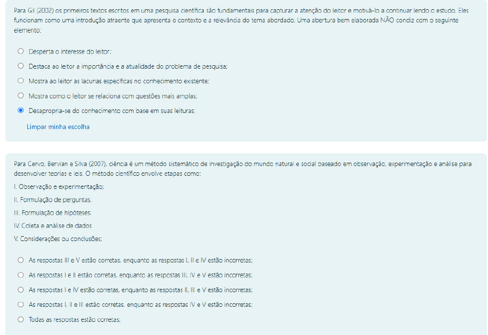Questões - Metodologia Científica Imagem das questões conforme solicitado: