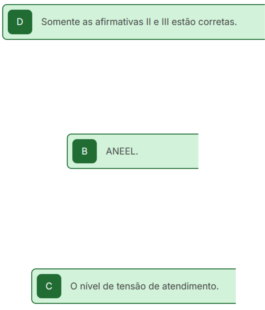 (Adaptada de: Prefeitura Municipal de Cascavel – Engenheiro, 2016) Um sistema elétrico de potência possui uma estrutura que pode ser dividida em três etapas: geração, transmissão e distribuição. A partir do que se sabe referente aos três segmentos, julgue os itens a seguir e marque a alternativa correta. I. As linhas de distribuição secundária operam com tensões mais elevadas e, por isso, é necessário um transformador para alterar o nível de tensão do sistema. II. O motivo para realizar a transmissão de energia em AT ou UAT (ultra alta tensão) é tornar o valor da corrente baixo o suficiente para reduzir o dimensionamento dos condutores elétricos. III. As linhas de transmissão operam com as tensões mais elevadas do sistema, tendo como principal função a transmissão de energia entre centros de produção e centros de consumo. (Petróleo Brasileiro S.A – Petrobras – Profissional Júnior – Engenharia, 2015) Considerando-se a atual estrutura institucional do setor elétrico brasileiro, o órgão que tem, dentre outras funções, a de definir as diretrizes para os procedimentos licitatórios e promover as licitações destinadas à contratação de concessionários de serviço público para produção, transmissão e distribuição de energia elétrica é: (CESGRANRIO, 2012, Engenheiro Elétrico) A ANEEL é responsável por regulamentar a tarifação da energia elétrica, garantindo que o consumidor pague um valor justo pela energia consumida, como também garantindo o equilíbrio econômico-financeiro da concessionária. Dessa forma, dois grandes grupos de consumidores estruturam a tarifação de energia elétrica dos consumidores finais. Esses grupos são definidos como “grupo A" e “grupo B". O que diferencia o “grupo A" do “grupo B"? (Adaptada de UFRRJ - 2019 [PRC1] - UFRRJ - Engenheiro – Elétrica) Segundo dados divulgados pela Câmara de Comercialização de Energia Elétrica (CCEE), o mercado livre representa quase um terço do consumo de energia elétrica no Brasil. De acordo com as normas e regulamentos do setor elétrico brasileiro, uma empresa que foi conectada ao sistema em janeiro de 2022, pode se tornar um consumidor livre, se atender aos seguintes requisitos mínimos: (FUNDATEC Órgão: CEEERS, 2010) As atividades de coordenação e controle da operação da geração e da transmissão de energia elétrica, integrantes do Sistema Interligado Nacional – SIN, e as atividades de acompanhamento e avaliação permanentemente da continuidade e da segurança do suprimento eletroenergético em todo o território nacional são atribuições, respectivamente: Referente à análise estática de um sistema, avalie as afirmativas a seguir e assinale a alternativa correta. I. Um sistema estável/seguro é aquele capaz de manter seu estado de equilíbrio somente em condições operativas normais. II. Um sistema estável/seguro é aquele capaz de manter seu estado de equilíbrio quando em condições operativas normais, e de alcançar um estado de se manter em um equilíbrio viável após contingência. III. Um sistema inseguro é aquele capaz de manter seu estado de equilíbrio quando em condições operativas normais, e de alcançar um estado de se manter em um equilíbrio viável após contingência. Verificando o aprendizado Questão 1 (Adaptada de CS - UFG - 2017). A seguir observamos o circuito equivalente de um transformador submetido a ensaios em laboratório. Nesse circuito, a resistência do ramo magnetizante, RM, é determinada por meio (AOCP - 219) Um transformador do tipo Δ−Y é alimentado por uma tensão de linha de 5000 V. Sabendo que o número de voltas do enrolamento primário é 1000 e do secundário 20, assinale a alternativa que apresenta a tensão de fase do lado secundário. Caso necessário, considere 3=1,73. (FGV -2022) Um equipamento possui valores nominais de potência e tensão de 40 MVA e 1000 kV, respectivamente. Os valores de base adotados no local onde está instalado são 20 MVA e 500 kV. Sabe-se que a reatância desse equipamento é igual a 0,2 p.u. O valor da reatância para a nova base é (FGV - 2022) Um equipamento de 20 kV e 1,0 MVA e reatância igual a 0,3 p.u. (em função de seus valores nominais) está inserido em um setor do sistema elétrico, cujas bases são iguais a 60 kV e 3 MVA. O novo valor da reatância desse equipamento é: (Consulplan - 2020). Uma linha de transmissão de energia elétrica possui quatro parâmetros, sendo que dois deles, uniformemente distribuídos ao longo da linha, formam a impedância em série; assinale-os. A transmissão de energia elétrica pode ser feita em corrente contínua ou alternada. Durante a transmissão são observados alguns efeitos particulares à característica de corrente. Assinale a alternativa correta quanto aos efeitos promovidos no sistema. (Adaptada de IFTO - 2016) Uma linha de transmissão pode ser representada mediante os parâmetros concentrados de acordo com o modelo PI, conforme mostra o circuito abaixo: Considere Vs e Is tensão e corrente por fase no lado do transmissor, Vr e Is tensão e corrente por fase no lado do receptor e Z e Y/2 impedância e admitância da linha de transmissão. Qual expressão pode determinar a tensão Vs? (Cesgranrio - 2012) As equações gerais para linhas de transmissão em corrente alternada, senoidal, em regime permanente, são utilizadas nas análises de transmissão de energia elétrica em sistemas elétricos de potência. A análise com parâmetros distribuídos é comumente empregada em linhas de transmissão longas e quando na determinação das tensões e correntes das linhas em pontos específicos de interesse. Considere: · 𝑥 a distância da linha de transmissão a partir de seu terminal receptor. · 𝑉(𝑥) e 𝐼(𝑥) a tensão fase-neutro e a corrente de linha no ponto 𝑥 de interesse, respectivamente. · 𝑉𝑟 e 𝐼𝑟 a tensão fase-neutro e a corrente de linha no terminal receptor, respecti