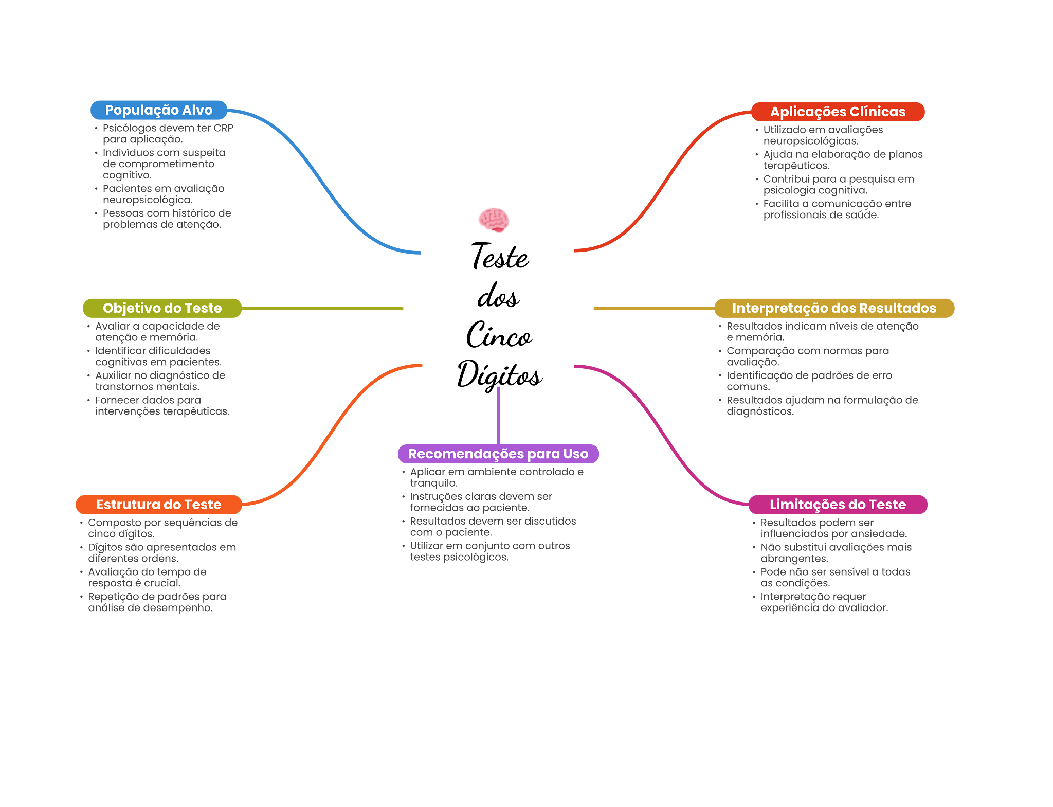 População Alvo Aplicações Clínicas Palcólogos devem ter CRP Utilizado em para aplicação. neuropsicológicas. com Ajuda na elaboração de de comprometimento terapêuticos. cognitivo. Contribui para a em Pacientes em cognitiva. Facilita a comunicação entre com histórico de de problemas de atenção. Objetivo do Teste Interpretação dos Resultados Avaliar capacidade de Resultados níveis de atenção atenção memória. Identificar Comparação com normas para cognitivas em pacientes. no diagnóstico de identificação de padrões de erro transtornos Fornecer dados para Resultados ajudam na formulação de intervenções diagnósticos. Recomendações para Uso Aplicar em ambiente controlado tranquilo. devem Estrutura do Teste fornecidas paciente. Limitações do Teste Composto por sequências de Resultados devem ser discutidos Resultados podem ser cinco digitos. com paciente. por Dígitos apresentados em em conjunto com outros Não substitui mais diferentes ordens. psicológicos. abrangentes. do tempo de Pode não ser a resposta as condições. de padrões para requer de experiência do avallador.