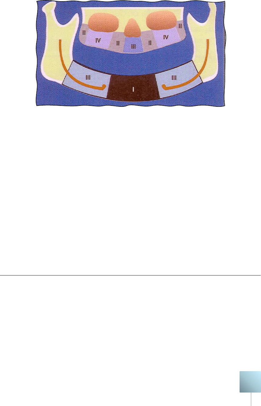 Por: Maria Clara Pires- Odontologia Uninovafapi 1 Anatomia aplicada a Implantodontia O meio da implantodontia possui vários fatores importantes para um implante adequado. A densidade óssea é um fator crítico, pois influencia diretamente na estabilidade primária dos implantes dentários, na osseointegração e na longevidade do tratamento. Ossos mais densos→ Tipo I e II oferecem maior resistência mecânica e melhor suporte inicial ao implante, reduzindo o risco de micro movimentação e falha precoce. Ossos menos densos→ Tipos III e IV apresentam menor resistência e podem exigir técnicas auxiliares, como fresagem menos agressiva, uso de implantes com maior rosca ou enxertos ósseos. A avaliação da densidade óssea é essencial para planejar a técnica cirúrgica e o tipo de implante adequado, garantindo maior previsibilidade e sucesso clínico. DENSIDADE ÓSSEA MAXILA ANTERIOR→ D2 e D3 MAXILA POSTERIOR→ D3 e D4 MANDÍBULA ANTERIOR→ D1 e D2 MANDÍBULA POSTERIOR→D2 e D3 ANATOMIA GERAL DOS MAXILARES O maxilar é um osso frágil e poroso, que é classificado como osso pneumático por existir uma ampla cavidade, preenchida por ar, na parte central do seu corpo, e é toda revestida pela membrana de Schneider, ou membrana do seio maxilar. Por: Maria Clara Pires- Odontologia Uninovafapi 2 Durante a colocação de implantes, é importante garantir que essa membrana se mantenha integra. Ao perder dentes, é inevitável a reabsorção desse osso, já que a função de um alvéolo dental é alojar a raiz do dente, então quando o elemento é perdido o osso que o sustentava começa seu processo de reabsorção. OBS: A densidade máxima apresentada no seio maxilar é a tipo II. OBS: O uso de prótese móvel (muco-suportada) acelera a reabsorção, já que irá depositar a carga mastigatória na mucosa e no osso. Pelo fato da reabsorção maxilar se dar de forma centrípeta, muitas vezes o alvéolo desparece e fica apenas a parede palatina. ANATOMIA DA MANDÍBULA A mandíbula é um osso extremamente denso, ímpar, irregular e móvel. A movimentação desse osso está diretamente ligada a oclusão dental. A oclusão possui um encaixe o qual permite uma adequada realização das funções, sem sobrecarregar as estruturas dentais e a ATM. Na confecção da prótese sobre implante, é necessário que ela fique justa, e tenha apenas uma pequena folga nas cúspides, caso contrário, quebrará a cerâmica e o implante. A importância da ATM na oclusão da prótese sobre implante, é garantir que o paciente não tenha uma oclusão rígida. Por: Maria Clara Pires- Odontologia Uninovafapi 3 As áreas de protuberância mentual e tubérculos mentuais são as de mais densidade óssea. Por esse motivo, quando é preciso de uma boa área doadora de osso, essa é a região de escolha. Normalmente, os ápices das raízes do primeiro e do segundo molar ficam dentro das fossas submandibulares, o que implica em um cuidado redobrado nessa região para não atingir a glândula submandibular com a broca. Já na região anterior da mandíbula, deve-se estar atento a glândula sublingual durante o descolamento do tecido mole. Por meio de uma tomografia, é possível analisar a proximidade e a relação das raízes dos molares em relação a fossa submandibular. Através disso, se traça um plano de execução para o implante, de forma que ele não atinja as glândulas. Com a realização de exames, é preciso estar atento também ao nível de altura óssea. Na tomografia é possível perceber a distância até o canal alveolar. Caso uma broca atinja o canal alveolar, ela corre o risco de lesar o nervo (levando a parestesia) e a artéria alveolar (levando a hemorragia). No caso de uma hemorragia, utiliza-se medidas para contornar a hemorragia, como tamponamento e uso de vasoconstritores. A parestesia pode ser parcial ou total, e temporária ou permanente. OBS: Radiografias periapicais dão uma ideia da distância e altura óssea, mas não são valores exatos. Mudança de posição→ As estruturas de uma maxila atrófica, devido a perda de dentes, mudam de posição. O forame infraorbitário e a espinha nasal ficam mais Mobile User Por: Maria Clara Pires- Odontologia Uninovafapi 4 perto da boca, devido a reabsorção óssea. O mesmo ocorre com o posicionamento do forame mentual na mandíbula. VASCULARIZAÇÃO E INERVAÇÃO O nervo alveolar inferior (3) faz uma curva (2) no forame mentual, e o nervo incisivo (1) segue seu caminho na porção anterior. A curva está na altura do segundo pré-molar, e, por esse motivo, é preciso cuidado para não atingir o nevo. PADRÃO DE REABSORÇÃO Na maxila, o padrão de reabsorção é: • 25% da largura de rebordo após 1 ano • 40% a 60% nos 3 anos subsequentes Figura 1- Artéria e veia palatina descendente e nervo palatino anterior (palatino maior) Figura 2- Nervo nasopalatino Por: Maria Clara Pires- Odontologia Uninovafapi 5 TRATAMENTO DA REGIÃO POSTERIOR SUPERIOR • Instalação posterior ao seio maxilar • Instalação sob o seio maxilar Diâmetro convencional: 3,75 mm a 4 mm Diâmetro amplo: 5 a 6 mm • Levantamento do seio maxilar Instalação imediata do implante Instalação de implante posterior Na parede lateral do seio, com uma broca esférica, é aberta uma janela até observar uma superfície óssea azulada, significando que está próximo a entrada do seio maxilar. Logo acima, faz-se um sulco com a broca sem perfurar o comprimento, transformando a janela lateral, no assoalho do seio, e deslocando a membrana sinusal. Após isso, é feita a reconstrução da área com enxerto ósseo ou biomaterial, e, depois, os implantes já instalados. OBS: O tamanho da abertura da janela depende da quantidade de implantes e do nível de perda óssea. Contraindicações → Cisto de retenção mucoso, sinusite, e exodontia recente com exposição do seio maxilar (prévio a cirurgia). ZIGOMÁTICO Existe uma técnica cirúrgica chamada Técnica de Fixação Zigomáti
