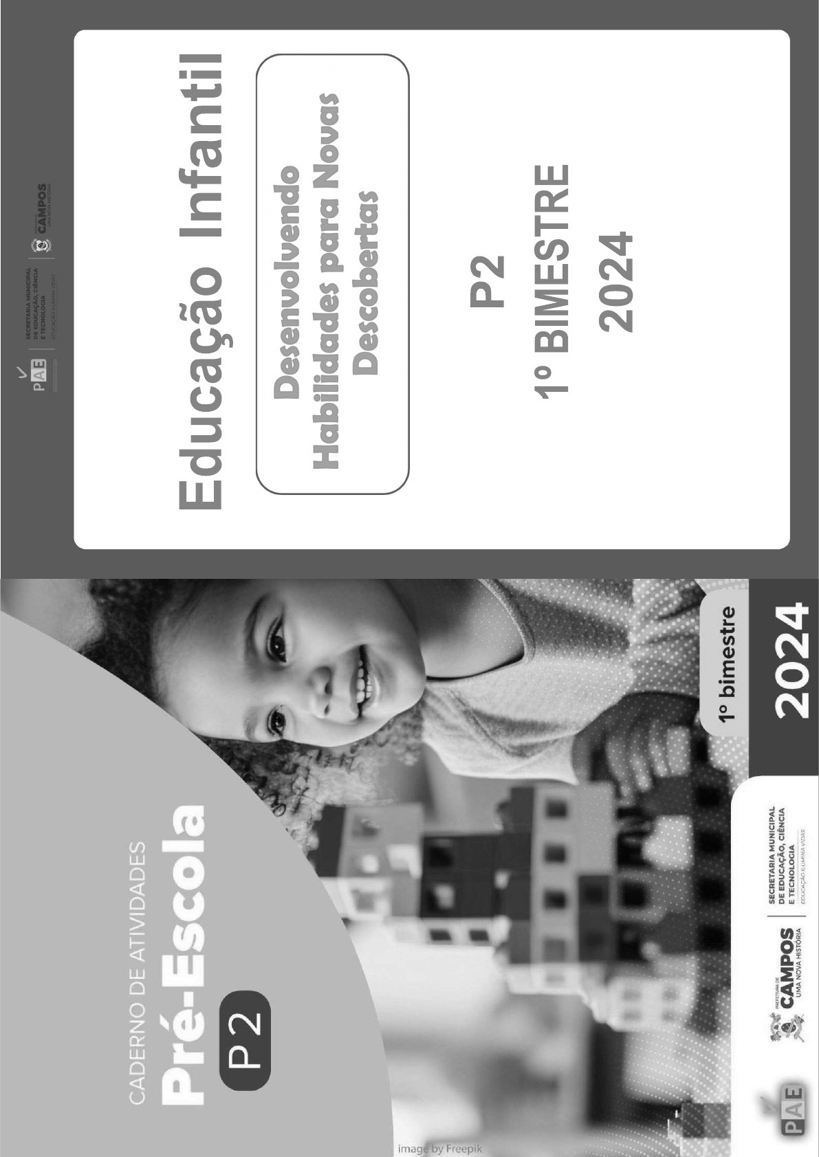 SECRETARIA MUNICIPAL PAE DE EDUCAÇÃO, CIÊNCIA E TECNOLOGIA CAMPOS VIDAS CADERNO DE ATIVIDADES Pré-Escola Educação Infantil P2 Desenvolvendo Habilidades para Novas Descobertas image by Freepik P2 1° BIMESTRE 2024 1° bimestre SECRETARIA MUNICIPAL PAE CAMPOS DE EDUCAÇÃO, CIÊNCIA E TECNOLOGIA UMA NOVA EDUCAÇÃO ILUMINA VIDAS 2024SECRETARIA MUNICIPAL SECRETARIA MUNICIPAL PAE DE EDUCAÇÃO, CIÊNCIA E TECNOLOGIA PAE DE EDUCAÇÃO, CIÊNCIA CAMPOS E TECNOLOGIA CAMPOS EDUCAÇÃO LUMINA VIDAS VIDAS CAMPO DE EXPERIÊNCIAS "TRAÇOS, SONS, CORES E FORMAS" P2 UNIDADE ESCOLAR: (EI03TS02) EXPRESSAR-SE LIVREMENTE POR MEIO DE DESENHO, PINTURA, COLAGEM, DOBRADURA E ESCULTURA, CRIANDO PRODUÇÕES BIDIMENSIONAIS E TRIDIMENSIONAIS. PROFESSOR (A): TURMA: ALUNO (A): DATA: ATIVIDADE VAMOS DESENHAR? Prezado regente, Bem-vindo a 2024! QUE EU GOSTO DE FAZER EM MINHA ESCOLA? Este ano trabalharemos de acordo com a Resolução SEDUCT n°02, de 26 de outubro de 2023, que estabelece diretrizes para a implantação das matrizes curriculares no âmbito da educação infantil da rede municipal de Campos dos Goytacazes, a partir do ano letivo de 2024. Entende-se por P2 crianças de 5 anos a 5 anos e 11 meses e 29 dias; levando-se em conta o corte etário em 31 de março, conforme previsto na instrução normativa seduct 01/2023. Cabe a cada regente utilizar as sugestões de atividades que melhor se adequam às crianças de sua turma, de acordo com os códigos alfanuméricos da BNCC. Para o pré-escolar 2 encontrarão aqui reflexões, dicas e sugestões para a faixa etária condizente com o P2, para o que compreende o período letivo de 5 de fevereiro a 30 de abril. Concluímos desejando um excelente ano letivo e um 1° bimestre bem produtivo! Equipe Pedagógica da Seduct.SECRETARIA MUNICIPAL SECRETARIA MUNICIPAL PAE DE EDUCAÇÃO, CIÊNCIA E TECNOLOGIA CAMPOS PAE DE EDUCAÇÃO, CIÊNCIA E TECNOLOGIA CAMPOS UMA UMA EDUCAÇÃO ILUMINA VIDAS EDUCAÇÃO ILUMINA VIDAS CAMPO DE EXPERIÊNCIAS "ESCUTA, FALA, PENSAMENTO E Escola (EI03EF09) LEVANTAR HIPÓTESES EM RELAÇÃO À LINGUAGEM ESCRITA, REALIZANDO REGISTROS DE PALAVRAS E TEXTOS, POR MEIO DE ESCRITA ESPONTÂNEA. ATIVIDADE É HORA DE FAZER AMIGOS! ESCREVA SEU NOME. ESCOLHA 2 AMIGOS E ESCREVA 0 NOME DELES AMIGO AMIGO AGORA ESCREVA A PRIMEIRA LETRA DO NOME DOS SEUS AMIGOS.SECRETARIA MUNICIPAL SECRETARIA MUNICIPAL PAE DE EDUCAÇÃO, CIÊNCIA E TECNOLOGIA PAE DE EDUCAÇÃO, CIÊNCIA CAMPOS E TECNOLOGIA CAMPOS EDUCAÇÃO ILUMINA VIDAS EDUCAÇÃO ILUMINA VIDAS CAMPO DE EXPERIÊNCIAS "ESCUTA, FALA, PENSAMENTO E IMAGINAÇÃO" CAMPO DE EXPERIÊNCIAS "CORPO, GESTOS E MOVIMENTOS" (EI03EF08) SELECIONAR LIVROS E TEXTOS DE GÊNEROS CONHECIDOS PARA A LEITURA DE UM ADULTO (EI03CG05) COORDENAR SUAS HABILIDADES MANUAIS NO ATENDIMENTO ADEQUADO A SEUS E/OU PARA SUA PRÓPRIA LEITURA (PARTINDO DE SEU REPERTÓRIO SOBRE ESSES TEXTOS, COMO A INTERESSES E NECESSIDADES EM SITUAÇÕES DIVERSAS. RECUPERAÇÃO PELA MEMÓRIA, PELA LEITURA DAS ILUSTRAÇÕES ETC.) ATIVIDADE VOLTA ÀS AULAS. PINTE SOMENTE MATERIAIS ESCOLARES. ESCREVA PRIMEIRA LETRA DO NOME DE CADA UM DOS DESENHOS. AS FÉRIAS ACABARAM AGORA VAMOS RETORNAR. TODOS NÓS VAMOS NOS ALEGRAR A HORA CHEGAR! NAS FÉRIAS TEVE DIVERSÃO CONHECI MUITOS AMIGOS. MÚSICA, ARTE, ALEGRIA E BRINCADEIRA, MUITA DIVERSIDADE E AMIZADE VERDADEIRA, ENCONTREI POR ONDE ANDEI! AGORA ESTOU VOLTANDO PARA MINHA ESCOLA QUERIDA, NOVAS DESCOBERTAS E MUITO APRENDIZADO. VAMOS QUE VAMOS !!!!!!!!!! AS BOAS VINDAS, ESTOU CHEGANDO! (TEXTO ESCRITO PARA ESSA ATIVIDADE. AUTORAS :REGINA LANNES E SISSI MOLL) PINTE NO TEXTO A PALAVRA FÉRIAS.AGORA REESCREVA-A NOS QUADRINHOS ABAIXO: F É R A SSECRETARIA MUNICIPAL SECRETARIA MUNICIPAL PAE DE EDUCAÇÃO, CIÊNCIA E TECNOLOGIA PAE DE EDUCAÇÃO, CIÊNCIA CAMPOS E TECNOLOGIA CAMPOS VIDAS VIDAS CAMPO DE EXPERIÊNCIAS "ESCUTA, FALA, PENSAMENTO E IMAGINAÇÃO" CAMPO DE EXPERIÊNCIAS "ESCUTA, FALA, PENSAMENTO E IMAGINAÇÃO" (EI03EF01) EXPRESSAR IDEIAS, DESEJOS E SENTIMENTOS SOBRE SUAS VIVÊNCIAS, POR MEIO DA (EI03EF07) LEVANTAR HIPÓTESES SOBRE GÊNEROS TEXTUAIS VEICULADOS EM PORTADORES LINGUAGEM ORAL E ESCRITA (ESCRITA ESPONTÂNEA), DE FOTOS, DESENHOS E OUTRAS FORMAS DE CONHECIDOS, RECORRENDO A ESTRATÉGIAS DE OBSERVAÇÃO GRÁFICA E/OU DE LEITURA. EXPRESSÃO. ATIVIDADE A LETRA F DE FÉRIAS APARECE NA FOCA, NO FEIJÃO E NA QUANTAS LETRAS TEM A PALAVRA FÉRIAS? FAMÍLIA. REPRESENTE COM MATERIAL CONCRETO. ATIVIDADE TEM NO FOGO E NA FUMAÇA, NA FAROFA E NA FARINHA. TEM NA FITA E NA FIVELA TEM NA FADA E NA FIGURA. REESCREVA AS VOGAIS DA PALAVRA FÉRIAS. QUAL A PRIMEIRA SÍLABA DO NOME DE CADA FIGURA? PINTE-A. FA FI FO REESCREVA AS CONSOANTES DA PALAVRA FÉRIAS. FI FE FUSECRETARIA MUNICIPAL SECRETARIA MUNICIPAL PAE DE EDUCAÇÃO, CIÊNCIA E TECNOLOGIA PAE DE EDUCAÇÃO, CIÊNCIA CAMPOS E TECNOLOGIA CAMPOS UMA VIDAS VIDAS CAMPO DE EXPERIÊNCIAS "ESCUTA, FALA, PENSAMENTO E IMAGINAÇÃO" CAMPO DE EXPERIÊNCIAS EU, o OUTRO E o NÓS" (EI03EF07) LEVANTAR HIPÓTESES SOBRE GÊNEROS TEXTUAIS VEICULADOS EM PORTADORES (EI03EO02) AGIR DE MANEIRA INDEPENDENTE, COM CONFIANÇA EM SUAS CAPACIDADES, CONHECIDOS, RECORRENDO A ESTRATÉGIAS DE OBSERVAÇÃO GRÁFICA E/OU DE LEITURA. RECONHECENDO SUAS CONQUISTAS E LIMITAÇÕES. ATIVIDADE ATIVIDADE QUAL É A PRIMEIRA SÍLABA DA FIGURA? PINTE-A. OBSERVE AS FIGURAS E 0 NOME DE CADA IMAGEM. IDENTIFIQUE SOM DAS SÍLABAS DA FAMÍLIA DA LETRA F. ENCONTRE E CERQUE-AS. FU FO FA AGORA, QUAL É ÚLTIMA SÍLABA DA FIGURA? PINTE-A. 10 FA FE FO DEPOIS DE PINTAR AS SÍLABAS, MOSTRE QUE VOCÊ É ESPERTO(A), OBSERVE AS DUAS IMAGENS E ESCREVA NOME DELAS.SECRETARIA MUNICIPAL SECRETARIA MUNICIPAL PAE DE EDUCAÇÃO, CIÊNCIA E TECNOLOGIA PAE DE EDUCAÇÃO, CIÊNCIA CAMPOS E TECNOLOGIA CAMPOS UMA EDUCAÇÃO ILUMINA VIDAS VIDAS CAMPO DE EXPERIÊNCIAS "TRAÇOS, SONS, CORES E FORMAS" CAMPO DE EXPERIÊNCIAS "CORPO, GESTOS E MOVIMENTOS" (EI03TS02) EXPRESSAR-SE LIVREMENTE POR MEIO DE DESENHO, PINTURA, COLAGEM, DOBRADURA E ESCULTURA, CRIAN