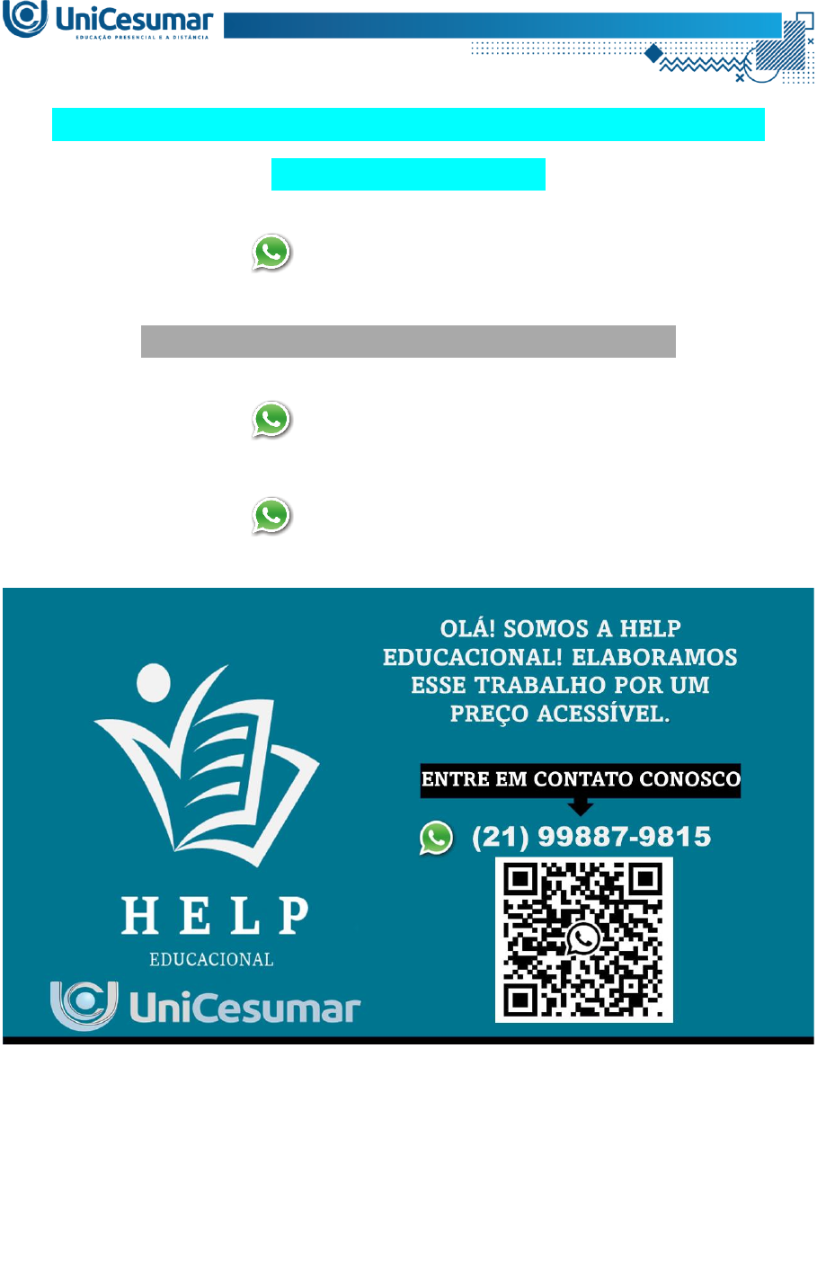 MAPA – BEDU - ESPORTES COLETIVOS: FUTSAL E FUTEBOL - 54_2025 (21) 99887-9815 ASSESSORIA NOS SEUS TRABALHOS (21) 99887-9815 (21) 99887-9815 Como futuro professor de Educação Física e treinador esportivo, conhecer e viven- ciar os aspectos práticos (lógica interna) associados às modalidades esportivas é essencial para que você possa acumular experiências autênticas, possibilitando, en- tão, que esses conhecimentos sejam posteriormente transferidos aos alunos du- rante as aulas de Educação Física e sessões de treinamento. Essas vivências per- mitem que o processo de ensino-aprendizagem e treinamento ocorra de maneira sa- tisfatória. Freire (2003) apresenta quatro princípios pedagógicos norteadores para o ensino do futebol e futsal, sendo eles: ensinar futebol a todos; ensinar futebol bem a todos; ensinar mais que futebol a todos; e ensinar a gostar do esporte. Fonte: FREIRE, J. B. Pedagogia do Futebol. Campinas: Autores Associados, 2003. Com base no texto, para a proposta da Atividade MAPA, você deverá planejar (des- crever em texto e imagem) DUAS atividades para uma AULA/um TREINO da moda- lidade FUTEBOL, sendo uma que contemple o princípio pedagógico “ensinar mais que futebol todos” e outra que contemple “ensinar a gostar do esporte”. Passo a passo: 1. Baixe o arquivo MODELO MAPA, disponível no Material da Disciplina para res- ponder a sua atividade. 2. Acesse o livro da disciplina para entender esses dois princípios para poder elabo- rar as atividades. 3. Elabore uma atividade para cada princípio solicitado (“ensinar mais que futebol to- dos” e “ensinar a gostar do esporte”). 4. As atividades deverão conter: a) Faixa etária. b) Local (onde a atividade será realizada). c) Objetivo. d) Material. e) Organização do espaço e da turma. f) Desenvolvimento. g) Variações (outras formas de realizar a atividade). h) Imagem (elaborada por você ou disponível na interntet). Orientações: - Siga o formato de apresentação das atividades conforme o Modelo MAPA. - Acesse as páginas 98 e 99 da Unidade 3 do livro da disciplina para verificar exem- plos. - Poste sua atividade em formato Word (doc. ou docx.) ou PDF. Outros formatos não serão aceitos. - Cópias parciais ou totais serão zeradas. OLÁ! SOMOS A HELP EDUCACIONAL! ELABORAMOS ESSE TRABALHO POR UM PREÇO ACESSÍVEL. ENTRE EM CONTATO CONOSCO (21) 99887-9815