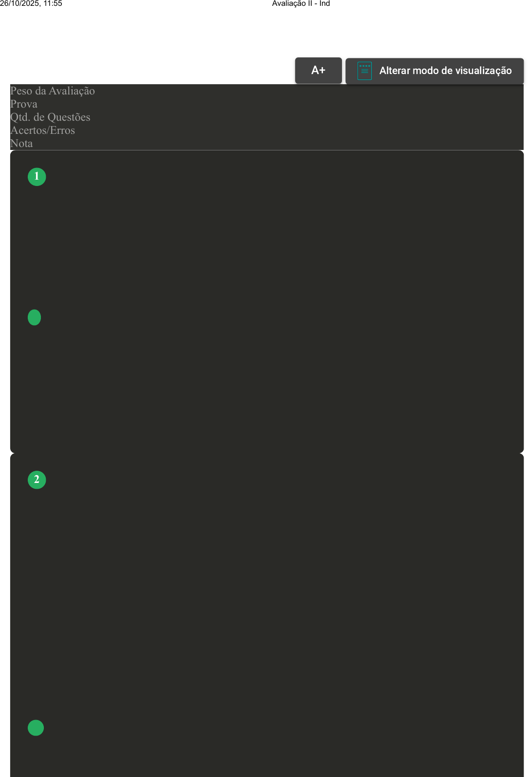 Prova Impressa GABARITO | Avaliação II - Individual (Cod.:1523407) Peso da Avaliação 2,00 Prova 107546697 Qtd. de Questões 10 Acertos/Erros 10/0 Nota 10,00 [Laboratório Virtual - RT-PCR] A transcrição reversa é uma reação que ocorre pela ação da enzima transcriptase reversa ou RT. Essa enzima é uma DNA polimerase dependente de RNA, ou seja, ela é capaz de sintetizar uma fita de DNA utilizando como molde a fita simples de RNA. Sua descoberta se deu a partir da observação de que, quando os retrovírus, cujo material genético é um RNA, infectam um hospedeiro, o RNA viral é convertido em DNA. Sobre a técnica de RT-PCR, assinale a alternativa CORRETA: A A técnica de RT-PCR utiliza a enzima Taq DNA polimerase que adicionará os nucleotídeos à dupla fita de RNA. B Para o processo de transcrição reversa, são necessários oligonucleotídeos sintéticos e a enzima transcriptase reversa. C Nessa técnica, são utilizados somente os quatro dNTPs, a amostra de RNA e os cofatores enzimáticos. D Ao final da técnica, origina-se o RNA mensageiro, a partir do uso da enzima transcriptase reversa. E Nenhuma das alternativas está correta. [Laboratório Virtual - RT-PCR] Segundo o sumário da aula prática, a transcrição reversa seguida de reação em cadeia da polimerase (RT-PCR – reverse transcription polymerase chain reaction) é um método de biologia molecular utilizado desde o início da década de 1980. A partir de conhecimentos em virologia baseados em enzimas responsáveis pela replicação viral, os cientistas estudaram a atividade da enzima transcriptase reversa (RT – reverse transcriptase). Sobre os reagentes utilizados na reação de RT-PCR, analise as sentenças a seguir: I- Amostra de RNA e Transcriptase reversa. II- Primer F, primer R e OligoDT. III- Buffer e MgCl2. IV- dNTP, Taq DNA polimerase e indutor de RNAse.Assinale a alternativa CORRETA: A As sentenças III e IV estão corretas. B As sentenças I e II estão corretas. C As sentenças I, II, III e IV estão corretas. D As sentenças I, II e III estão corretas. VOLTAR A+ Alterar modo de visualização 1 2 26/10/2025, 11:55 Avaliação II - Individual about:blank 1/5 E As sentenças II e III estão corretas. A genômica estrutural é o estudo da estrutura propriamente dita do genoma, sendo seu principal objetivo atrelado à possibilidade de manipulação de fragmentos do DNA ou de seus genes in loco. Sobre a genômica estrutural, associe os itens, utilizando o código a seguir: I- Mapas cromossômicos de alta resolução. II- Mapas cromossômicos de baixa resolução. III- Mapas cromossômicos físicos. ( ) A primeira etapa se baseia na ocorrência de um alelo que não esteja presente no mapa cromossômico, em uma região com marcadores já mapeados. Dessa forma, pode-se definir em qual cromossomo aquele novo alelo ocorre. ( ) A segunda etapa determina a posição dos genes dentro de cada cromossomo, fornecendo informações mais precisas sobre esses gene e marcadores no genoma. ( ) A terceira etapa aplica diferentes técnicas determinando um mapa físico do genoma e ocorre o sequenciamento. Assinale a alternativa que apresenta a sequência CORRETA: A Nenhuma das alternativas está correta. B I - II - III. C I - III - II. D II - I - III. E III - II - I. No processo de digestão in gel, os spots contendo as proteínas de interesse são submetidos a um processo de hidrólise química e enzimática, formando fragmentos proteicos menores, capazes de migrar pela malha do gel e se difundir no sobrenadante, formando a amostra que será analisada por espectrometria de massas. De acordo com a digestão in gel, analise as sentenças: I- As proteínas são separadas de acordo com sua massa molecular, embora, nesse caso, as bandas obtidas do gel representem populações de proteínas com massas similares. II - A análise no espectrômetro de massas necessita que a carga líquida se torne negativa, ou seja, o processo de ionização não é necessário. III - A cromatografia líquida é utilizada como método de fracionamento, em que os peptídeos presentes na amostra são dissolvidos em uma fase líquida, bombeadas para passar por uma fase estacionária e direcionadas para espectrometria de massas. IV - As amostras podem ser submetidas a outro fracionamento prévio à análise por MS, com o objetivo de reduzir a complexidade da amostra ou apenas complementar o fracionamento já realizado na eletroforese. Assinale a alternativa CORRETA: A As sentenças III e IV estão corretas. B As sentenças II e IV estão corretas. 3 4 26/10/2025, 11:55 Avaliação II - Individual about:blank 2/5 C As sentenças II, III e IV estão corretas. D As sentenças I, III e IV estão corretas. E As sentenças I, II, III e IV estão corretas. As regiões responsáveis por codificar ou regular o DNA são conservadas entre as espécies, permitindo driblar um dos grandes desafios do Projeto Genoma Humano, ou seja, a interpretação dos dados, já que grande parte dessa informação era não codificadora. Sobre as sequências codificadoras e reguladoras de DNA, avalie as asserções a seguir e a relação proposta entre elas: I- Uma estratégia utilizada para conhecer as sequências codificadoras do genoma humano é baseada na comparação com outras espécies que sejam evolutivamente relacionadas aos seres humanos, como os camundongos, por exemplo. PORQUE II- A partir da estratégia é possível definir quais regiões são não codificadoras entre as duas espécies, indicando que essas regiões estiveram menos sujeitas a mutações ao longo do processo evolutivo. Assinale a alternativa CORRETA: A A asserção I é uma proposição falsa e a II é uma proposição verdadeira. B A asserção I é uma proposição verdadeira e a II é uma proposição falsa. C As asserções I e II são verdadeiras, e a II é uma justificativa correta da I. D As asserções I e II são falsas. E As asserções I e II são verdadeiras, mas a II não é uma justi
