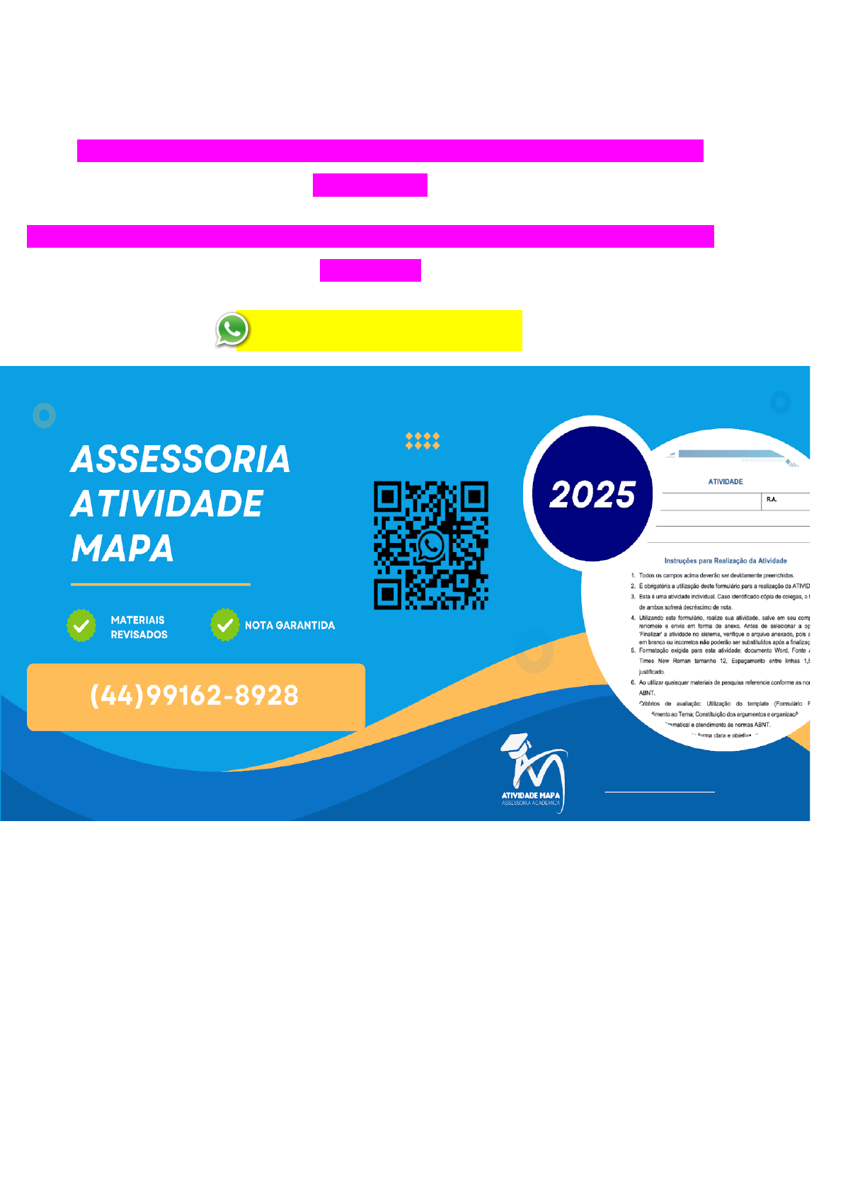 Está SEM TEMPO ou com DIFICULDADE de realizar o seu trabalho acadêmico? Entre em contato conosco agora mesmo! Iremos te ajudar nessa jornada acadêmica (44) 99162-8928 MAPA - ENF - DIDÁTICA APLICADA A ENFERMAGEM - 54_2025 A riqueza da Didática na área da Enfermagem está no aprendizado necessário para elaborar um plano de aula! O plano de aula bem estruturado utiliza uma combinação eficaz de recursos e metodologias para proporcionar uma experiência de aprendizado abrangente. O preparo do profissional na área da licenciatura é essencial, visto que ele participa dos diversos tipos de educação em saúde, como a permanente, na saúde, popular em saúde, entre outros. Elaborado pela autora. Dessa forma, para a atividade MAPA , propomos a você elaborar um plano de aula focado em "Educação Permanente em Saúde: integração de práticas e tecnologias" para profissionais novatos em um hospital, utilizando estratégias dinâmicas, divertidas e com apoio de tecnologias de informação e comunicação (TICs). O plano pode ser estruturado da seguinte forma: 1. Tema da aula (título e público-alvo). 2. Objetivo da aula. 3. Carga horária estimada. 4. Conteúdo programático (método ativo de aprendizagem e estratégias): - Definição e importância do tema no contexto hospitalar. - Papel do profissional como agente transformador. - Recursos inovadores (gamificação, simulação em cenário clínico com TICs). - Colaboração interprofissional (simulação de papéis). 5. Recursos didáticos (indicar pelo menos dois recursos tecnológicos e dois físicos). 6. Avaliação sugerida (indicar um tipo de formativa e/ou autoavaliação e/ou feedback). 7. Cronograma (distribuição dos temas em minutos considerando a carga horária total informada). 8. Referências no formato ABNT (material científico de fonte confiável). Agora, é com você!! Boa ativida