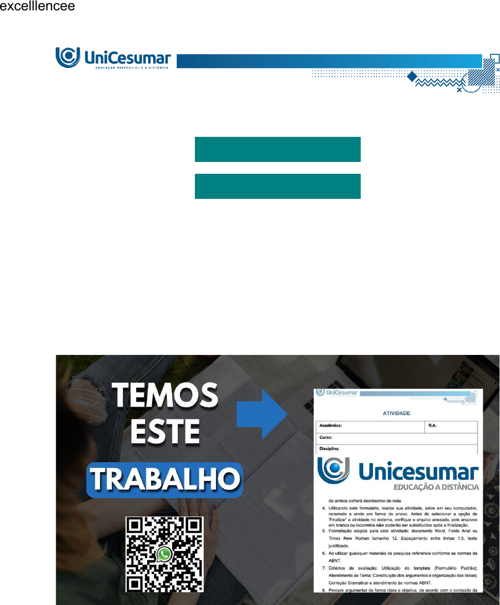 (99) 99119-3171 (99) 99119-3171 Olá!!! Somos da Assessoria Excellence Educacional e iremos te ajudar com este trabalho! Entre em contato conosco! MAPA - GCOM - GESTÃO DE CUSTOS E FORMAÇÃO DO PREÇO DE VENDA - 52_2025 MAPA - GCOM - GESTÃO DE CUSTOS E FORMAÇÃO DO PREÇO DE VENDA - 52_2025 Olá, estudante! excelllencee O objetivo da atividade MAPA (Material de Avaliação Prática de Aprendizagem) é permitir que você se sinta imerso com relação ao cálculo do preço de venda de determinado produto, utilizando como ferramenta o mark-up divisor. Que tal aproveitar para colocar em prática os conteúdos aprendidos na disciplina de Gestão de Custos e Formação de Preço de Venda? A determinação do preço de venda constitui uma das principais e das mais difíceis decisões a ser tomada em uma empresa, pois depende de um número considerável de variáveis, que nem sempre partem de decisão interna da organização, merecendo um planejamento consubstanciado em informações estratégicas de mercado e que possa refletir os objetivos da instituição. Ao se procurar formar o preço de venda, é preciso observar a base escolhida para essa formação, a partir do custo, ou a partir do mercado. Fonte: adaptado de: https://anaiscbc.abcustos.org.br/anais/article/view/3037. Acesso em: 13 maio 2025. Marília e Joana são amigas desde a época da faculdade. Recentemente, constituíram um pequeno negócio para fabricar xales de seda. Decidiram optar por esse segmento de negócio depois de realizar uma pesquisa de mercado com o público feminino e perceberem que esse é um acessório indispensável no guarda- roupa das mulheres. Imagine que sua missão é ajudar as duas empresárias a realizar o cálculo do preço de venda dessa peça e, para tanto, recebeu relatório contendo as informações de que o custo variável de produção do xale é de R$ 18,00; os impostos sobre as vendas somam o montante de 25%; a margem de contribuição desejada pelas sócias é de 35%; e que as comissões sobre as vendas são de 10%. Após analisar todos os dados fornecidos, realize os cálculos e atenda às seguintes demandas: excelllencee 1. Calcule o preço de venda do xale, utilizando como ferramenta o mark-up divisor. (Nesse item, demonstre os cálculos realizados para chegar no resultado). 2. Apresente a demonstração do resultado com os cálculos referentes à venda de uma unidade do xale. Para auxiliá-lo na execução desta atividade, seguem algumas orientações: - Assista ao vídeo explicativo, disponível na pasta "Material da disciplina". - Caso faça uso de fontes como livros, internet, revistas e artigos, informe-as nas Referências ao final de seu texto. - Realize uma cuidadosa correção ortográfica em seu texto, e o copie no template/formulário (modelo), disponível na pasta Material da Disciplina. excelllencee