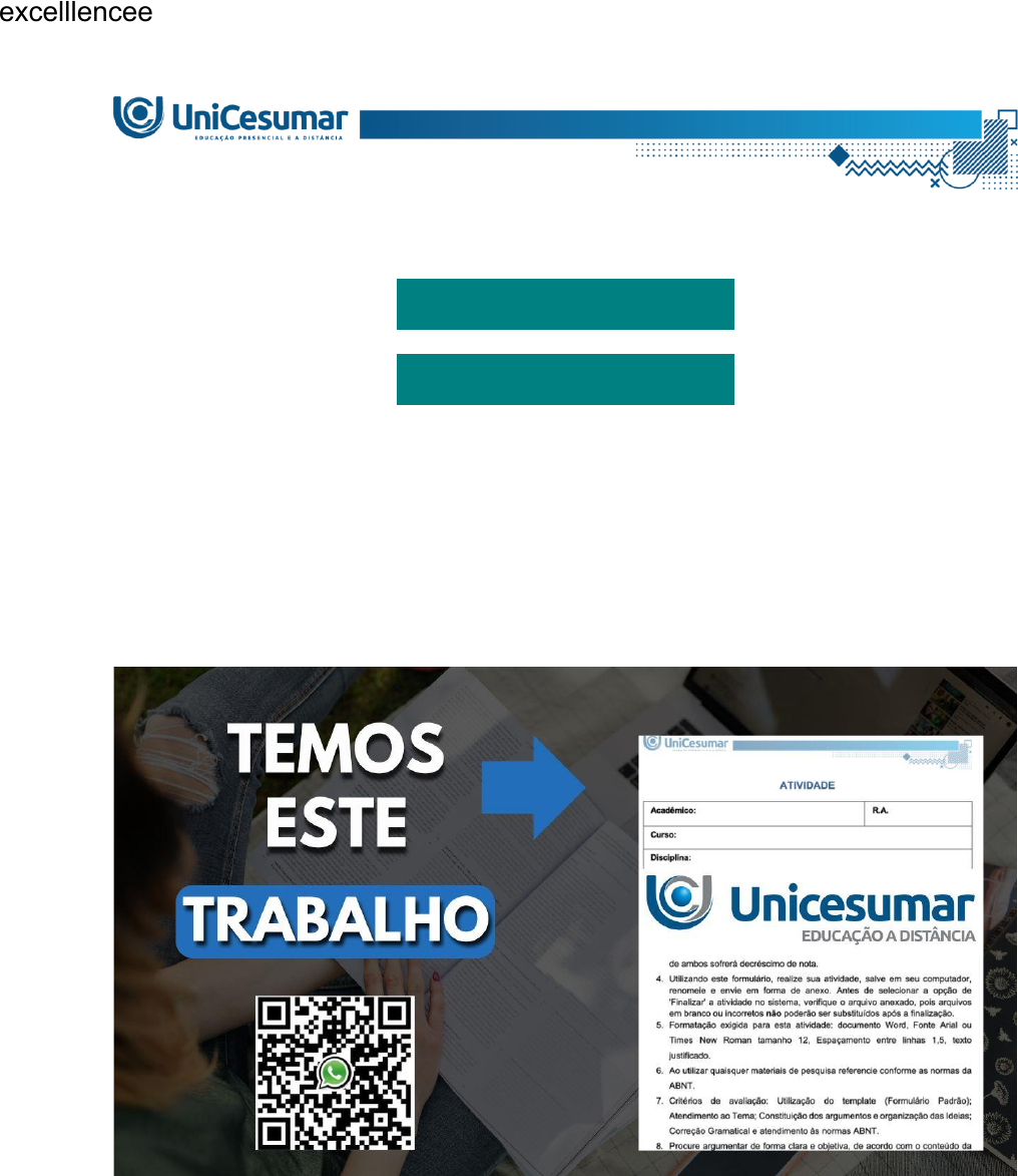 (99) 99119-3171 (99) 99119-3171 Olá!!! Somos da Assessoria Excellence Educacional e iremos te ajudar com este trabalho! Entre em contato conosco! MAPA - LET - LINGUA PORTUGUESA II - 54_2025 MAPA - LET - LINGUA PORTUGUESA II - 54_2025 No estudo da língua portuguesa, compreender a relação entre gramática e interpretação textual é fundamental. Como destaca Antunes (2010), todo texto se constrói a partir da interação de múltiplos fatores, entre eles os fatores gramaticais, que contribuem significativamente para a construção de sentidos. Essa perspectiva reforça que a análise isolada de elementos sintáticos, como os predicativos, deve excelllencee ser feita considerando seu papel no conjunto do texto, permitindo compreender como características, intenções e relações se manifestam em diferentes gêneros textuais. Portanto, a compreensão dos predicativos não se limita à identificação gramatical; ela se torna mais significativa quando articulada à interpretação global do texto. Como aponta Antunes (2010), é na interação entre partes e todo, entre aspectos lexicais, gramaticais e pragmáticos, que se constrói o sentido do texto. Assim, ao analisar predicativos em narrativas, textos jornalísticos, biográficos ou publicitários, o professor pode auxiliar os alunos a perceber como a sintaxe contribui para caracterizar sujeitos, situações e ideias centrais, promovendo uma leitura crítica e integrada. Fonte: ANTUNES, I. Análise de textos: fundamentos e práticas. São Paulo: Parábola, 2010. Agora, considere a seguinte situação hipotética: Você está em seu estágio de observação em uma turma de Ensino Médio. Durante uma aula de Língua Portuguesa, o professor propôs a leitura de um texto e pediu aos alunos que identificassem as características atribuídas a pessoas, personagens ou situações. Percebendo a dificuldade da turma, você decide preparar uma atividade prática, em que, como futuro professor de Língua Portuguesa, selecionará um trecho textual e elaborará uma proposta de análise e questões que poderiam ser aplicadas aos alunos. Dessa forma, a sua atividade MAPA consiste em: a) Escolha um trecho textual (15 a 20 linhas) que contenha predicativos usados para caracterizar personagens, pessoas ou situações. O trecho pode ser retirado de qualquer gênero textual – literário, jornalístico, biográfico, publicitário ou digital – desde que permita observar como os predicativos contribuem para a caracterização e para a construção de sentido no texto. Esse será o material de análise que você, como professor em formação, utilizará para dar exemplo em sala de aula. b) Transcreva o trecho escolhido, informando: - Autor ou fonte. excelllencee - Título da obra, texto ou publicação. - Breve contexto em que o trecho se insere (por exemplo: resumo da narrativa, situação da notícia, perfil biográfico ou objetivo do texto publicitário). c) Realize você mesmo a análise sintática dos predicativos no trecho escolhido, destacando-os e numerando-os. Essa análise deve mostrar como os predicativos contribuem para caracterizar sujeitos, situações ou ideias, independentemente do gênero textual. d) Em seguida, formule três questões práticas que você proporia aos alunos do Ensino Médio, com foco em: Identificar os predicativos no trecho. Explicar a característica ou qualidade atribuída pelo predicativo. Relacionar a análise à compreensão do sujeito, situação ou ideia central do texto. e) Apresente os comentários de correção que você, professor, faria após a realização da atividade pelos alunos, destacando como os predicativos contribuem para a caracterização, para a construção de sentidos e para o entendimento do texto. f) Finalize com uma breve reflexão (8 a 10 linhas) sobre a importância de vincular o estudo da sintaxe à leitura e interpretação de textos, independentemente do gênero, mostrando como a análise dos predicativos contribui para a compreensão do conteúdo e das características dos sujeitos ou situações retratadas. Atenção: * Faça o download do FORMULÁRIO PADRÃO – localizado no ícone MATERIAL DA DISCIPLINA, em seu Studeo –, realize a atividade neste arquivo e, em seguida, faça o envio. * O arquivo pode ser enviado uma única vez, portanto se certifique de que ele está finalizado antes de enviar. Após a finalização, não é possível fazer alterações e/ou substituição do arquivo. * Formatação: letra Times New Roman ou Arial, tamanho de letra 12, espaçamento entre linhas 1,5, alinhamento justificado e demais normas da ABNT. * Essa é uma atividade que envolve fundamentação teórica para elaboração das respostas; portanto, se atente à necessidade de apresentar as referências utilizadas. excelllencee * Acesse a Sala do Café, pois nela foram disponibilizadas informações detalhadas para realização desta atividade, especificamente, um vídeo da professora com Agora, considere a seguinte situação hipotética: Você está em seu estágio de observação em uma turma de Ensino Médio. Durante uma aula de Língua Portuguesa, o professor propôs a leitura de um texto e pediu aos alunos que identificassem as características atribuídas a pessoas, personagens ou situações. Percebendo a dificuldade da turma, você decide preparar uma atividade prática, em que, como futuro professor de Língua Portuguesa, selecionará um trecho textual e elaborará uma proposta de análise e questões que poderiam ser aplicadas aos alunos. excelllencee