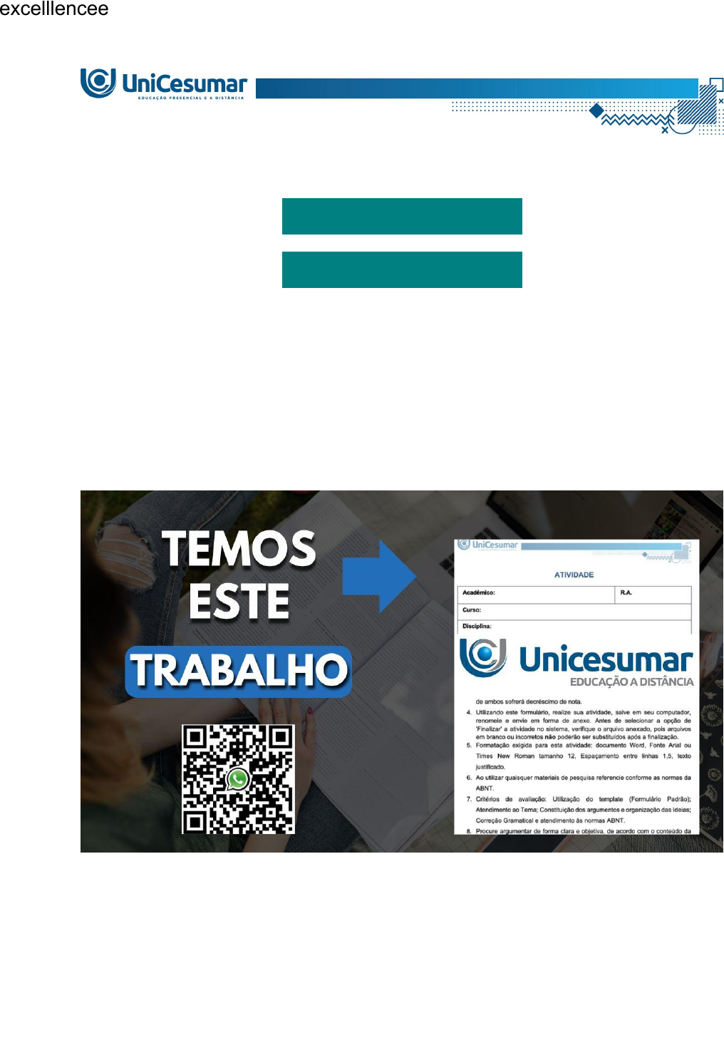 (99) 99119-3171 (99) 99119-3171 Olá!!! Somos da Assessoria Excellence Educacional e iremos te ajudar com este trabalho! Entre em contato conosco! PORTFÓLIO - LET - PRÁTICA PEDAGÓGICA: LITERATURA E ENSINO - 54_2025 PORTFÓLIO - LET - PRÁTICA PEDAGÓGICA: LITERATURA E ENSINO - 54_2025 O ensino de literatura não pode se restringir à transmissão de obras canônicas ou à memorização de escolas literárias. É preciso dialogar com a realidade do aluno, incorporando textos contemporâneos, periféricos, visuais e multimodais, de modo a formar leitores críticos e sensíveis. Fonte: CUNHA, Maria Zilda da. Literatura e educação: rotas de atravessamento. São Paulo: Editora UNESP, 2018. excelllencee A literatura é uma das formas mais ricas de expressão humana, capaz de transmitir valores, emoções, críticas sociais e visões de mundo. Mas como torná-la significativa para os jovens do Ensino Médio em um contexto marcado pela diversidade de linguagens e pela cultura digital? Para refletir sobre esse tema, leia o texto: “A literatura no ensino médio: entre o cânone e o contemporâneo”, da autora Maria Zilda da Cunha, para embasar teoricamente esta atividade. O texto está disponível na pasta MATERIAL DA DISCIPLINA. ATIVIDADE PRÁTICA – PROPOSTA DE AULA Após realizar a leitura indicada e refletir sobre o assunto proposto, coloque-se na posição de um(a) docente da educação básica que pretende realizar uma atividade crítica de estudo do texto literário com seus alunos e elabore uma proposta de atividade de literatura para uma turma do 1º ano do Ensino Médio, com base em uma obra literária de sua escolha (pode ser um conto, poema, crônica, romance ou mesmo uma adaptação gráfica ou audiovisual). Sua proposta deve apresentar os seguintes elementos: - Título da atividade; - Objetivos de aprendizagem; - Materiais necessários; - Passo a passo da atividade; - Forma de avaliação; - Referências TEXTO DE APOIO: Artigo "Um clássico sobre a educação literária: o "Direito à Literatura", de Antônio Candido, por Maria Amélia Dalvi. https://ojs.uel.br/revistas/uel/index.php/estacaoliteraria/article/view/33930/25191 Para uma boa execução desta atividade: - Atente-se às instruções passadas durante a disciplina. - Atente-se às instruções e intervenções realizadas pelos professores mediadores no ambiente on-line de aprendizagem (Studeo), especificamente, por meio do "Mural de Avisos" e "Mensagem". - Verifique se existem materiais complementares que possam ser utilizados para a realização da atividade — estarão na "Sala do Café", "Mural de Avisos" ou "Material da Disciplina". - O formulário no formato Word e demais orientações para a realização da atividade MAPA estarão disponíveis na pasta "Material da Disciplina". Em caso de dúvida, entre em contato com a mediação. excelllencee
