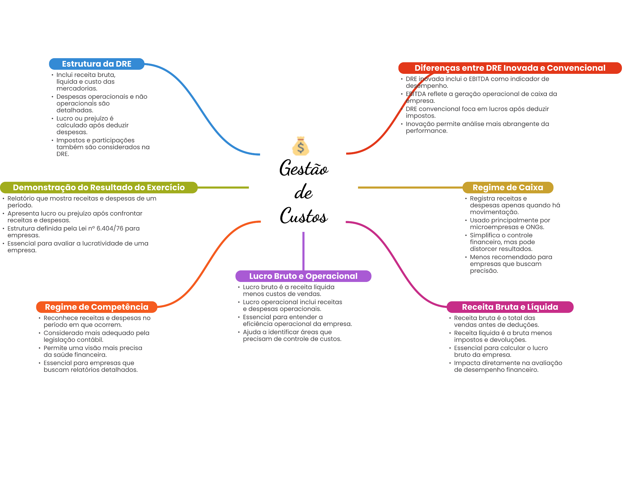 Estrutura da DRE Diferenças entre DRE Inovada e Convencional receita bruta, custo DRE o EBITDA como de Despesas operacionale não a geração operacional de da são DRE convencional foca em lucros após deduzir Lucro ou impostos. calculado Inovação permite abrangente da performance. e participações também considerados na $ DRE. Demonstração do Resultado do Exercício Regime de Caixa Relatório que mostra despesas de um Registra receitas período. apenas quando há Apresenta lucro ou após confrontar movimentação. receitas Usado por Estrutura definida pela Lei 6.404/76 para ONGs. empresas. controle Essencial para a lucratividade de uma financeiro, pode empresa. distorcer resultados. recomendado para que precisão. Lucro Bruto e Operacional Lucro bruto é a receita menos custos de Lucro operacional receitos Regime de Competência despesas Receita Bruta e Líquida Reconhece receitas despesas no Essencial para entender a bruta é o total em que ocorrem. eficiência operacional da empresa. vendas de deduções. Considerado adequado pela Ajuda a que Receita é a bruta menos legislação contábil. precisam de controle de custos. devoluções. Permite uma visão mais precisa Essencial para calcular lucro da saúde financeira. bruto da Essencial para empresas que na buscam de desempenho financeiro.