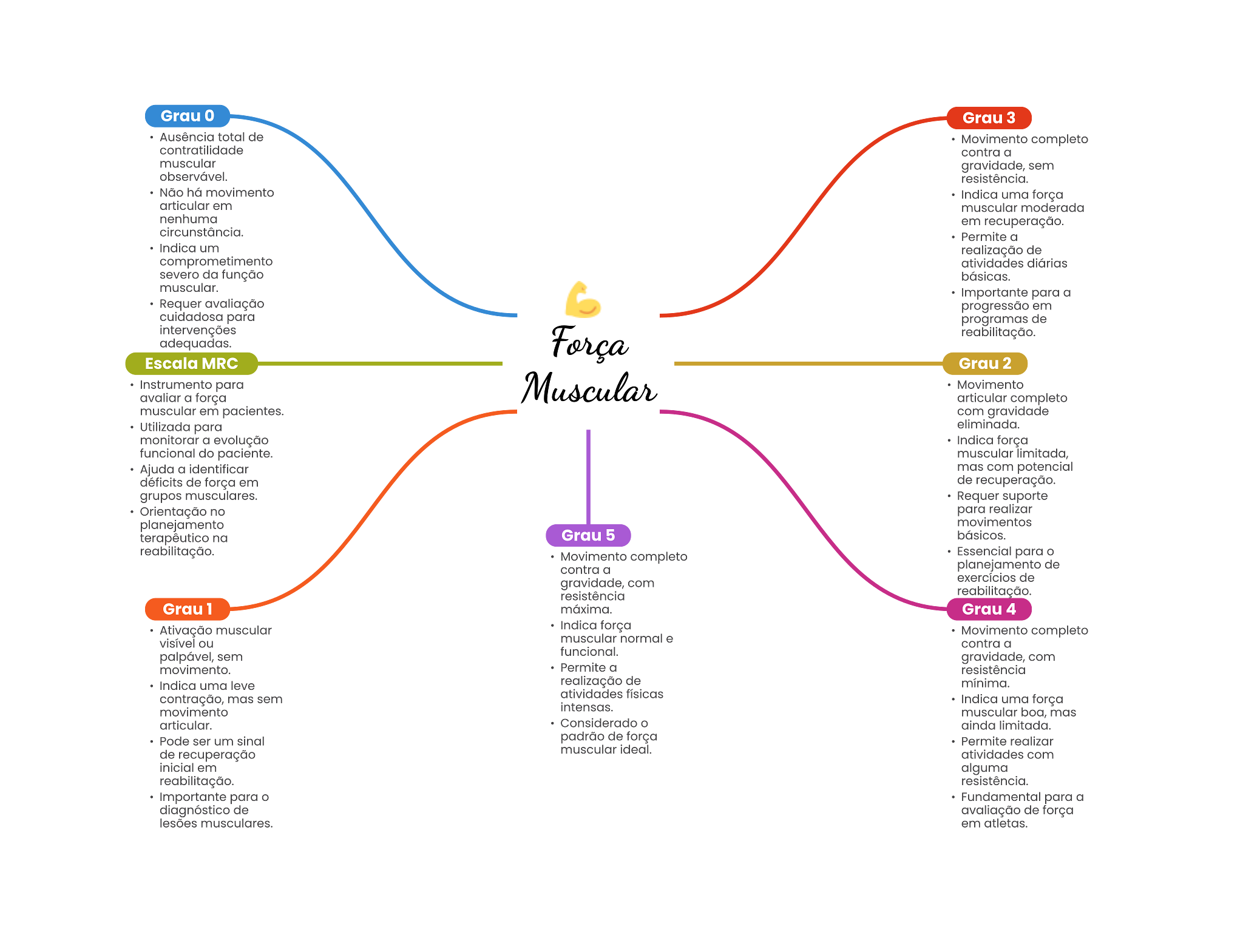 Grau Grau 3 Ausência total de Movimento completo contratilidade contra a muscular gravidade, sem observável. resistência. Não movimento uma força articular em muscular moderada nenhuma em recuperação. circunstância. Permite a Indica um realização de comprometimento atividades diárias severo da função muscular. para a Requer em cuidadosa para programas de Intervenções adequadas. Escala MRC Grau 2 para - Movimento a força articular completo muscular em pacientes. com gravidade Utilizada para eliminada. monitorar a evolução Indica força funcional do paciente. muscular limitada, Ajuda a identificar com potencial de força em de recuperação. grupos musculares. Requer suporte no para movimentos terapêutico na Grau 5 reabilitação. Movimento completo Essencial para contra a de gravidade, com exercícios de resistência reabilitação. Grau 1 Grau 4 Ativação muscular Indica força ou muscular normal Movimento completo contra a palpável, funcional. gravidade, com movimento. Permite a resistência Indica uma leve de contração, mas sem atividades Indica uma força movimento muscular articular. Considerado ainda limitada. Pode ser um padrão de força Permite de recuperação muscular atividades com Inicial em alguma resistência. para Fundamental para a de de força lesões musculares. em
