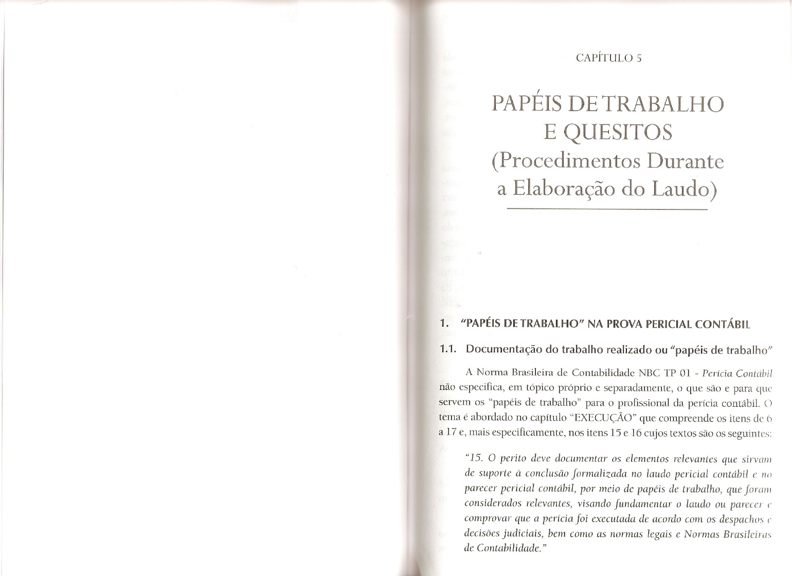 CAPÍTULO 5 PAPÉIS DE TRABALHO E QUESITOS (Procedimentos Durante a Elaboração do Laudo) 1. "PAPÉIS DE TRABALHO" NA PROVA PERICIAL CONTÁBIL 1.1. Documentação do trabalho realizado ou "papéis de trabalho" A Norma Brasileira de Contabilidade NBC TP 01 Perícia Contábil não especifica, em tópico próprio e separadamente, o que são e para que servem os "papéis de trabalho" para o profissional da perícia contábil. O tema é abordado no capítulo "EXECUÇÃO" que compreende os itens de 6 a 17 e, mais especificamente, nos itens 15 e 16 cujos textos são os seguintes: "15. O perito deve documentar os elementos relevantes que sirvam de suporte à conclusão formalizada no laudo pericial contábil e no parecer pericial contábil, por meio de papéis de trabalho, que foram considerados relevantes, visando fundamentar o laudo ou parecer comprovar que a perícia foi executada de acordo com os despachos e decisões judiciais, bem como as normas legais e Normas Brasileiras de Contabilidade."REMO DALLA ZANNA 228 PRÁTICA DE PERÍCIA CONTÁBIL 229 "16. Entende-se por papéis de trabalho a documentação preparada e Documentos, no qual serão relacionados todos eles, as suas pelo perito para a execução da perícia. Eles integram um processo condições físicas, a respectiva quantidade e outros elementos organizado de registro de provas, por intermédio de termos de dili- identificadores. Este Termo de Retirada de Livros e Documentos gência, informações em papel, meios eletrônicos, plantas, desenhos, é o comprovante que responsabiliza o perito perante a empresa fotografias, correspondências, depoimentos, notificações, declarações, quanto ao zelo, guarda e segurança que essas provas merecem. comunicações ou outros quaisquer meios de prova fornecidos e peças Quando de sua devolução, basta que a empresa assine, no final que assegurem o objetivo da execução pericial." do Termo de Retirada de Livros e Documentos, algo como: Vê-se, pois, que o Perito Judicial deve cuidar não apenas das provas documentais e contábeis que juntará ao seu laudo, porém, deverá arma- "Declaro, para os devidos fins de direito, que recebi em devolução zenar em papel e/ou em meio eletrônico as provas cuja juntada entender os livros e documentos supracitados, nas mesmas condições em não ser necessária, mas prudente para atender às futuras solicitações, que foram entregues." como por exemplo, para responder a quesitos elucidativos. A decisão do Coloca-se a data e obtém-se a assinatura da pessoa que representar que deverá ser juntado ao laudo como anexo e do que poderá ser guarda- a empresa nesse ato, geralmente o contador da mesma. do no arquivo do perito é uma decisão pessoal. Todavia, a título de exem- plo do que não seria juntado citamos: (a) e-mails trocados entre o perito Pode-se dizer, então, que são considerados, papéis de trabalho, to- e as partes envolvidas; (b) duplicações de cópias xérox de contratos, de das e quaisquer petições que, elaboradas pelo Perito, vierem a fazer parte notas fiscais e de outros documentos usados na elaboração de apêndices; dos autos, tais como: (c) documentos enviados pelas partes que não foram utilizados pelo pe- os documentos supracitados de "a" a "d" e demais provas docu- rito por tê-los considerados supérfluos ou constrangedores; etc. que, mentais eventualmente solicitadas; efetivamente, recomenda-se que perito judicial mantenha em seu arquivo os pedidos de prazo para concluir os trabalhos; são os dados e as informações abaixo citados: os pedidos feitos a qualquer órgão público ou autarquia com o a) manter registro dos contatos epistolares, telefônicos, feitos por objetivo de coligir provas documentais para fazer seu trabalho, correio eletrônico e pessoalmente, pelos assistentes técnicos etc.; que se comunicam com o perito judicial para manifestarem seu interesse em participar dos trabalhos periciais; as anotações que fizer no formulário de Registro do Tempo Gasto com os Trabalhos Periciais, sendo este controle altamente relevante b) guardar cópia das missivas enviadas para atender ao artigo 431-A e necessário para relatar os trabalhos feitos, em ordem cronológica do CPC; e o tempo gasto com cada uma das tarefas realizadas. Presta-se, c) documentar a intenção de examinar livros e documentos. Isto é este papel de trabalho, inclusive, para justificar os honorários so- feito mediante Termo de Diligência. Pode ser realizado também licitados; mediante pedido nos autos; por último, são papéis de trabalho os cálculos, as planilhas, as d) documentar a retirada de livros e documentos da empresa objeto simulações e os rascunhos que forem elaborados pelo perito para de perícia mediante a confecção de Termo de Retirada de Livros fazer o seu trabalho.REMO DALLA ZANNA PRÁTICA DE PERÍCIA CONTÁBIL 230 231 Em algumas situações, não é possível anexar ao Laudo todos ele- ticas do mesmo. Porém, algumas informações e alguns elementos estarão mentos de prova: documentos, cálculos, livros, etc. por causa de sua presentes em qualquer conjunto que se crie. Tais elementos são: quantidade. Por sua vez, o texto do item 16 da NBC TP 01 acima citado 1. o Fórum e número da vara; deixa claro que é medida de cautela e bom-senso profissional, documen- 2. a natureza da causa; tar trabalho, pois, salvo raras exceções que confirmam a regra, sempre são feitos, principalmente pela parte que não foi favorecida pelo laudo 3. o número do processo; pericial, pedidos de esclarecimentos¹ que exigem a retomada de assuntos 4. a data em que foi distribuindo; já abordados e, para esse trabalho complementar, os papéis de trabalho 5. o nome do Juiz que efetuou a nomeação; guardados serão de muita utilidade. 6. o nome do escrivão diretor do Cartório e seu telefone; Pode ocorrer que no processo de coleta, elaboração e guarda dos 7. o Autor (nome, endereço, telefone); papéis de trabalho seja necessário documentar o 