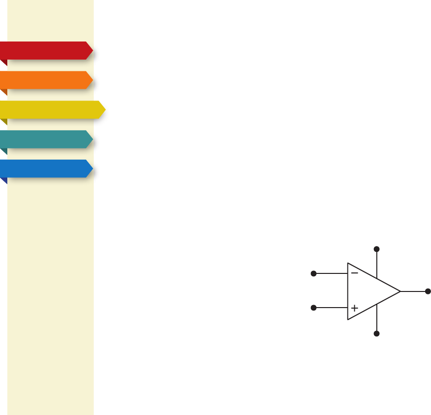 1/33 Apresentação Situação Prática Amplificadores Operacionais Resolução da Situação Prática Referências Bibliográficas Amplificadores Operacionais O amplificador operacional é um dispositivo que pode realizar operações matemáticas como adição, subtração, multiplicação, divisão, diferenciação, integração e logaritmo, além de outras funções como comparação e amplificação. É comum as bibliografias técnicas tratarem esse dispositivo simplesmente por AO. É um circuito complexo composto de inúmeros transistores, diodos e resistores, encapsulado em um Circuito Integrado. Comercialmente, há diversos tipos de circuitos integrados de amplificadores operacionais. Características + VCC – VCC V – V + Vo Fig. 19 – Amplificadores operacionais Apresentação Situação Prática Resolução da Situação Prática Referências Bibliográficas Amplificadores Operacionais 2/33 Apresentação Situação Prática Amplificadores Operacionais Resolução da Situação Prática Referências Bibliográficas Possui duas entradas: inversora (V-) e não inversora (V+); uma saída (Vo); e dois terminais de alimentação (+Vcc, -Vcc). Alguns amplificadores só funcionam com alimentação simétrica. Circuito Equivalente V – V + Ve VoAo • VeZi Zo Fig. 20 – Circuito equivalente Principais especificações: » Entrada diferencial (Ve = V+ - V-) » Impedância de entrada (Zi) » Ganho de tensão (Ao) » Impedância de Saída (Zo) A operação básica é a amplificação da tensão diferencial da entrada: Vo = Ao . (V+ - V-) ou Vo = Ao . Ve 3/33 Apresentação Situação Prática Amplificadores Operacionais Resolução da Situação Prática Referências Bibliográficas V G V Fig. 21 – Operação do Amplificador Operacional Especificações 1 – Impedância de entrada (Zi): no amplificador ideal é infinita, garantindo sensibilidade máxima. No amplificador real é extremamente alta, aproximadamente 1 MΩ. 2 – Impedância de saída (Zo): no amplificador ideal é nula, garantindo máximo rendimento em relação ao sinal amplificado. No amplificador real é muito baixa, aproximadamente 75 Ω. 4/33 Apresentação Situação Prática Amplificadores Operacionais Resolução da Situação Prática Referências Bibliográficas 3 – Ganho de tensão em malha aberta (Ao): no amplificador ideal é infinito, garantindo amplificação máxima. No amplificador real é muito elevado, na ordem de 100.000. Por maior que seja o valor do ganho, a tensão de saída está limitada à tensão de alimentação do amplificador (+Vsat e -Vsat). Assista agora à videoaula sobre Amplificadores Operacionais – Características. Aplicações Básicas Amplificador Inversor Entrada de sinal ligada ao terminal inversor (V-) por meio de R1. Terminal não inversor (V+) aterrado. Entre os terminais de saída (Vo) e inversor, há um resistor R2 para realimentação. R2 R1Vi Vo Ve I Fig. 22 – Amplificador inversor Apresentação Situação Prática Características Resolução da Situação Prática Referências Bibliográficas 5/33 Apresentação Situação Prática Amplificadores Operacionais Resolução da Situação Prática Referências Bibliográficas Apresentação Situação Prática Características Resolução da Situação Prática Referências Bibliográficas Como a impedância de entrada do amplificador é muito alta, a corrente que flui por R1 é desviada para R2. Aplicando a Lei de Ohm: Vi - Ve = - (Vo - Ve) a - R2 = Vo - Ve R1 R2 R1 Vo - Ve Mas Vo é o resultado da amplificação, portanto: Vo = Ao . Ve a Ve = Vo Ao Como o ganho do Ao é muito elevado, pode-se dizer que Ao é infinito e, sendo assim, Ve = 0. Ajustando a expressão: - R2 = Vo - Ve a - R2 = Vo - 0 a - R2 = Vo R1 Vi - Ve R1 Vi - 0 R1 Vi Pelo fato do posicionamento de R2, a relação Vo e Vi, que reflete a amplificação do Ao, é denominada ganho de tensão em malha fechada, e representada por Av para diferenciar da malha aberta: Av = - R2 R1 O sinal negativo da fórmula representa a inversão de fase que ocorre no sinal de saída em relação ao sinal de entrada. 6/33 Apresentação Situação Prática Amplificadores Operacionais Resolução da Situação Prática Referências Bibliográficas Amplificador Não Inversor Neste circuito, a tensão de saída estará em fase com a de entrada. A realimentação continua negativa, mas o sinal a ser amplificado é posicionado na entrada não inversora: R2 R1 Vi Vo Fig. 23 – Amplificador não inversor As mesmas considerações do amplificador inversor valem para o amplificador não inversor, para obtenção do ganho com realimentação Av (ou Avf) = VS / Ve: Ve = R1 . I1 e VS = (R1 + R2) . I1 Avf = VS/Ve = (R1 + R2) . I1/R1 . I1 = (R1 + R2)/R1 Avf = R1 + R2 = 1 + R2 R1 R1 Buffer Este circuito tem ganho igual a 1 e é utilizado principalmente para acoplamento de uma carga de baixa resistência a um circuito de alta resistência (impedância): 7/33 Apresentação Situação Prática Amplificadores Operacionais Resolução da Situação Prática Referências Bibliográficas RL Rof VS + VCC - VCCVe Rif Fig. 24 – Circuito buffer Como exemplo, podemos demonstrar a transferência de tensão de uma fonte para uma carga, mas que por diversos fatores adversos pode apresentar uma resistência entre fonte e carga: 8/33 Apresentação Situação Prática Amplificadores Operacionais Resolução da Situação Prática Referências Bibliográficas RS 10K RL12 V DCV 1.09 1K Fig. 25 – Transferência de tensão Utilizando um amplificador operacional, configurado como buffer, a tensão será totalmente transferida para a carga: 9/33 Apresentação Situação Prática Amplificadores Operacionais Resolução da Situação Prática Referências Bibliográficas DCV 12.00 RL12 V 10 K 1K - VCC + VCC Fig. 26 – Transferência de tensão para carga Assista agora à videoaula sobre Amplificadores Operacionais – Aplicações Básicas. Características de um AO Real Diversas características podem