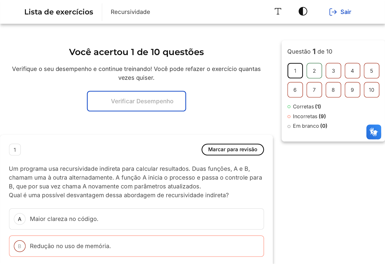 Verifique o seu desempenho e continue treinando! Você pode refazer o exercício quantas