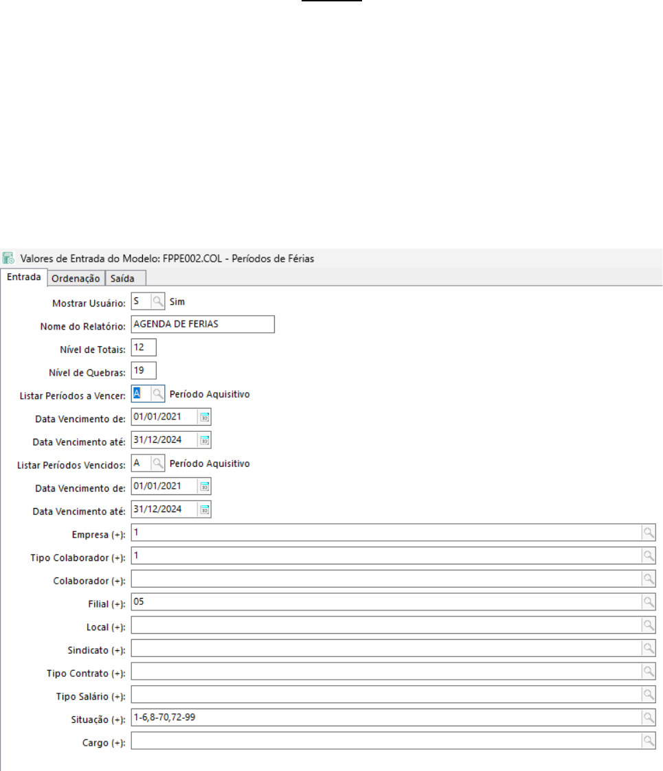 FERIAS GERAR RELATORIO DE FERIAS TODO INICIO DE MÊS ENVIAR PARA AS LOJAS CONFERIR QUEM ESTA NO PERIGO DE DOBRA E DEPOIS GERAR POR SETOR para conferencia gerar o relatório com ordenação por nome e depois da conferencia gerar POR PERIODO NA ORDENAÇÃO 2 – GERAR RECIBO DE FERIAS · Sempre no dia 20 as filiais enviam as planilhas de férias para gerar. · Antes de gerar as férias e preciso lanças as faltas, caso não tenha sido enviado o arquivo de faltas, conferir o período aquisitivo e assim poderá gerar os recibos. · Sempre lembrar de alterar o calculo do mês referente ao mês que os funcionários irão sair de férias. Gerar os recibos das férias: Após gerar os recibos, salvar em PDF e enviar para as lojas para conferência, após as confirmações das lojas, imprimir. image4.png image1.png image2.png image3.png
