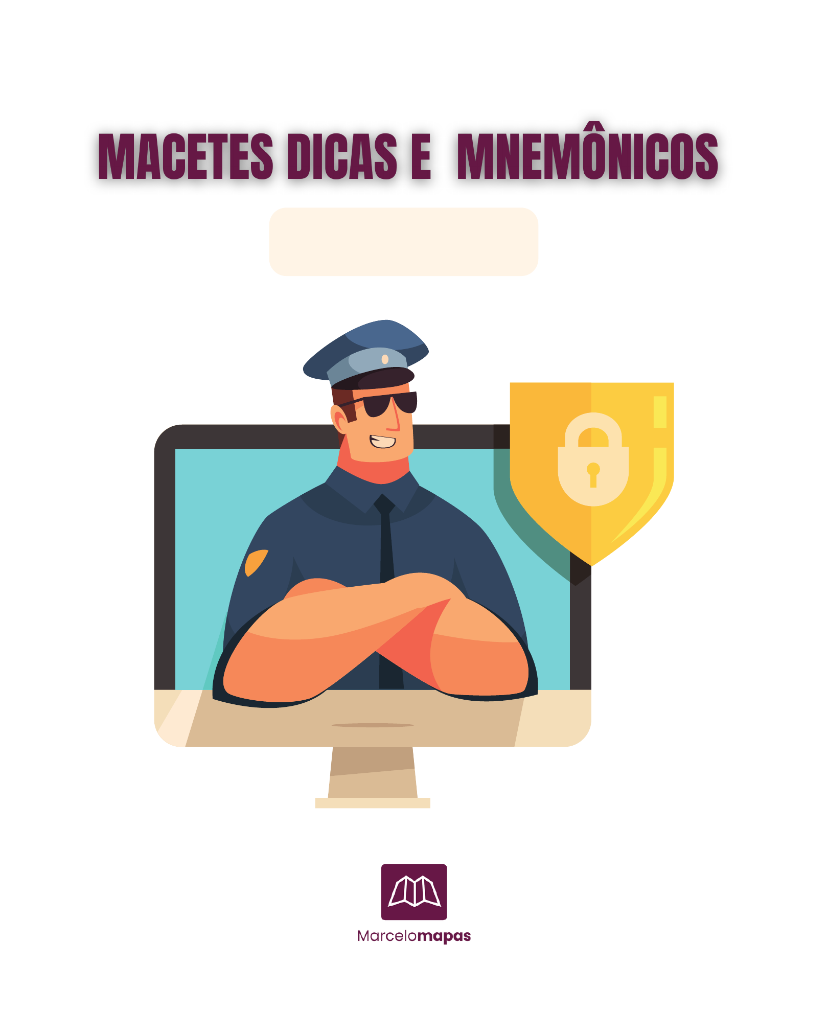 DIREITO PENAL Gostaria de te parabenizar por adquirir esse material. O nosso material é feito com muita dedicação para te ajudar a alcançar os seus objetivos nos estudos. Espero que você goste! Olá! Tudo bem? Esse material destina-se exclusivamente a exibição privada. É proibida toda forma de divulgação de reprodução, distribuição ou comercialização do conteúdo. Qualquer compartilhamento seja por google drive, torrent, mega, whatsapp, redes sociais ou quaisquer outros meios se classificam como ato de pirataria, conforme o art. 184 do Código Penal. Entretanto, acreditamos que você é uma pessoa de bem e que jamais faria uma coisa dessas. Agradecemos a sua compreensão e desejamos um ótimo estudo. Resumosmapasdireito Marcelo.mapaseresumos@gmail.com Art. 333, CP - Oferecer ou prometer vantagem indevida a funcionário público, para determiná-lo a praticar, omitir ou retardar ato de ofício. Pena – reclusão, de 2 (dois) a 12 (doze) anos, e multa. CORRUPÇAO ATIVA USUÁRIO DE PÓ ROMETER FERECER P O CORRUPÇAO PASSIVA OCORRE COM A SENHORA OLICITAR ECEBER CEITAR S A R CAUSAS DE INIMPUTABILIDADE MEDO DE CACHAÇA NORIDADEME DOENÇA MENTAL DE SENVOLVIMENTO MENTAL INCOMPLETO OU RETARDADO CACHAÇA = EMBRIAGUEZ E DEPENDÊNCIA QUÍMICA RPM R P M CC FED C C F E D CASE C A S E IRA I R A ONCURSO DE PESSOAS SSOCIAÇÃO CRIMINOSA RGANIZAÇÃO CRIMINOSA OU + PESSOAS2C O A CÃO OU + PESSOAS3 OU + PESSOAS4 marcelomapas CRIME DE EXPLORAÇÃO DE PRESTÍGIO RE S0 1/3 CEBER SOLICITAR DA PENA RESO 1/3 Art. 357, CP - Solicitar ou receber dinheiro ou qualquer outra utilidade, a pretexto de influir em juiz, jurado, órgão do Ministério Público, funcionário de justiça, perito, tradutor, intérprete ou testemunha ADMITEM TENTATIVA C C H O U P ONTRAVENÇÕES ULPOSOS ABITUAIS OMISSIVOS PRÓPRIOS NISSUBSISTENTES RETERDOLOSOS CCHOUP RANSPORTAR TOCAR VERBOS DA RECEPTAÇÃO T marcelomapas O C A CULTAR ONDUZIR DQUIRIR ECEBERR PRF USO DE ALGEMAS P R F CONTROLE PS2 C P S 2 OMPETÊNCIA PARA O JULGAMENTO DOS CRIMES DOLOSOS CONTRA A VIDA LENITUDE DE DEFESA IGILO DAS VOTAÇÕES OBERANIA DOS VEREDITOS NO ESTRANGEIRO C I D A CIDA ÔMPUTA DÊNTICA IVERSA TENUA S S EQUESTRO EM CONFINAMENTO a vítima tem maior liberdade de locomoção (vítima presa numa fazenda) OM CONFINAMENTO C C OVIM O V I M DEFINIÇÕES Marcelomapas PECULATO CORRUPÇÃO Funcionário público que se apropria ou desvia bens que tem acesso, em razão do seu cargo. ATIVA PASSIVA solicitar ou receber, para si ou para outrem vantagem indevida. CONCUSSÃO Funcionário Público que exige vantagem indevida. Oferecer ou prometer vantagem indevida a funcionário público. EXTINÇÃO DA PUNIBILIDADE PRESCRIÇÃO - PRAZOS superior a 12 anos PENA MÁXIMA PRESCREVE superior a 8 anos até 12 anos 20 ANOS superior a 4 anos até 8 anos superior a 2 anos até 4 anos igual ou superior a 1 ano inferior a 1 ANO 16 ANOS 12 ANOS 8 ANOS 4 ANOS 3 ANOS Lei 12.234/2010 Art. 109 do CP Situação de perigo; Pode atingir terceiro inocente; Atual; Causado por humano ou animal; ESTADO DE NECESSIDADE X LEGÍTIMA DEFESA EST. DE NECESSIDADE Ex.: Quem atira em um cachorro que está prestes a atacá-lo. O estado de necessidade é uma das hipóteses de exclusão de ilicitude. Agressão injusta atinge apenas o agressor Atual ou iminente causada por humano LEGÍTIMA DEFESA Ex.: Pode agir em legítima defesa o proprietário do bem atingido por um 'furto' de uso. A agressão injusta deve ser atual ou iminente. MOTIVO TORPE MOTIVO FÚTIL HOMICÍDIO Motivo REPUGNANTE que causa repulsa excessiva à sociedade Ex.: assassinar o marido pra ficar com a HERANÇA. Ex.: Matar motorista devido uma fechada no TRÂNSITO. Motivo DESPROPORCIONAL entre a causa e o crime. COPREXCO ITER CRIMINIS CO PRE EX CO GITAÇÃO PARAÇÃO ECUÇÃO NSUMAÇÃO Admite o regime inicial fechado Não admite regime inicial fechado PENAS PRIVATIVAS RECLUSÃO NÃO admite o regime fechado em nenhuma HIPÓTESE DETENÇÃO PRISÃO SIMPLES INSUSCETÍVEIS DE GRAÇA OU ANISTIA: CRIMES INAFIANÇÁVEIS E 3T + H T T T H LESÃO CORPORAL GRAVÍSSIMA PEIDA P E I D A LUGAR E TEMPO DO CRIME LUTA L U T A UGAR BIQUIDADE EMPO TIVIDADE EXCLUDENTE DE ILICITUDE L E E E EGÍTIMA DEFESA BRUCE LEEE STADO DE NECESSIDADE XERCÍCIO REGULAR DO DIREITO STRITO CUMPRIMENTO DO DEVER LEGAL SÃO JULGADOS PELO H I S A OMICÍDIO TRIBUNAL DO JURI INFATICÍDIO UICÍDIO BORTO CRIMES JULGADOS PELO P I A ARTICIPAÇÃO EM SUICÍDIO TRIBUNAL DO JURI INFATICÍDIO BORTO H OMICÍDIO PRINCÍPIO DA INSIGNIFICÂNCIA M I R ÍNIMA OFENSIVIDADE DA CONDUTA MACETE: MIRA A NEXPRESSIVIDADE DA LESÃO JURÍDICA EDUZIMENTO DA REPROVABILIDADE DA CONDUTA USÊNCIA DA PERICULOSIDADE MACETE: IPÊ 2 3 RE RE RE RE RE RE RE RE Privar (alguém) da liberdade; recolher à prisão; aprisionar, encarcerar. Não pode ser usado com relação de pessoas. MACETE A polícia prende o ladrão e apreende-lhe o produto do roubo. Marcelomapas REPARAÇÃO DO DANO CRIME CULPOSO CRIME DOLOSO ANTES Extingue a punibilidade do recebimento sentença irrecorrÍvel Diminuição de pena do recebimento da denúncia Diminuição da pena 1/3 a 2/3 do recebimento da denúncia ANTES DEPOIS DEPOIS Atenuação da pena do recebimento da denúncia Marcelomapas CONTRABANDO X DESCAMINHO CONTRABANDO DESCAMINHO É a importação ou exportação de mercadorias proibidas de entrar e sair do país. Sejeito ativo: Qualquer pessoa, inclusive o funcionário público. Sujeito passivo: Estado. Elemento subjetivo: Dolo Consumação: Com a entrada ou saída do Brasil de mercadoria proibida. Iludir, em parte ou em todo, p pagamento de direito ou imposto devido pela entrada, pela saída ou pelo consumo de mercadoria não proibida. Sejeito ativo: Qualquer pessoa, inclusive o funcionário público. Sujeito passivo: Estado. Elemento subjetivo: Dolo Consumação: Iludir pagamento do imposto pela entrada ou saída de mercadoria do país. MISSÕES DE DIREITO PENAL UNCIONA COMO UMF É VITA A VINGANÇA PRIVADA SISTEMA DE GARANTIAS PARA 