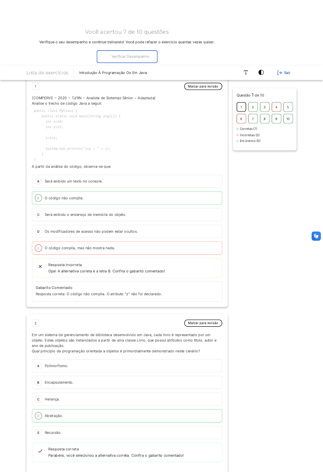 Verifique o seu desempenho e continue treinando! Você pode refazer o exercício quantas vezes quiser.