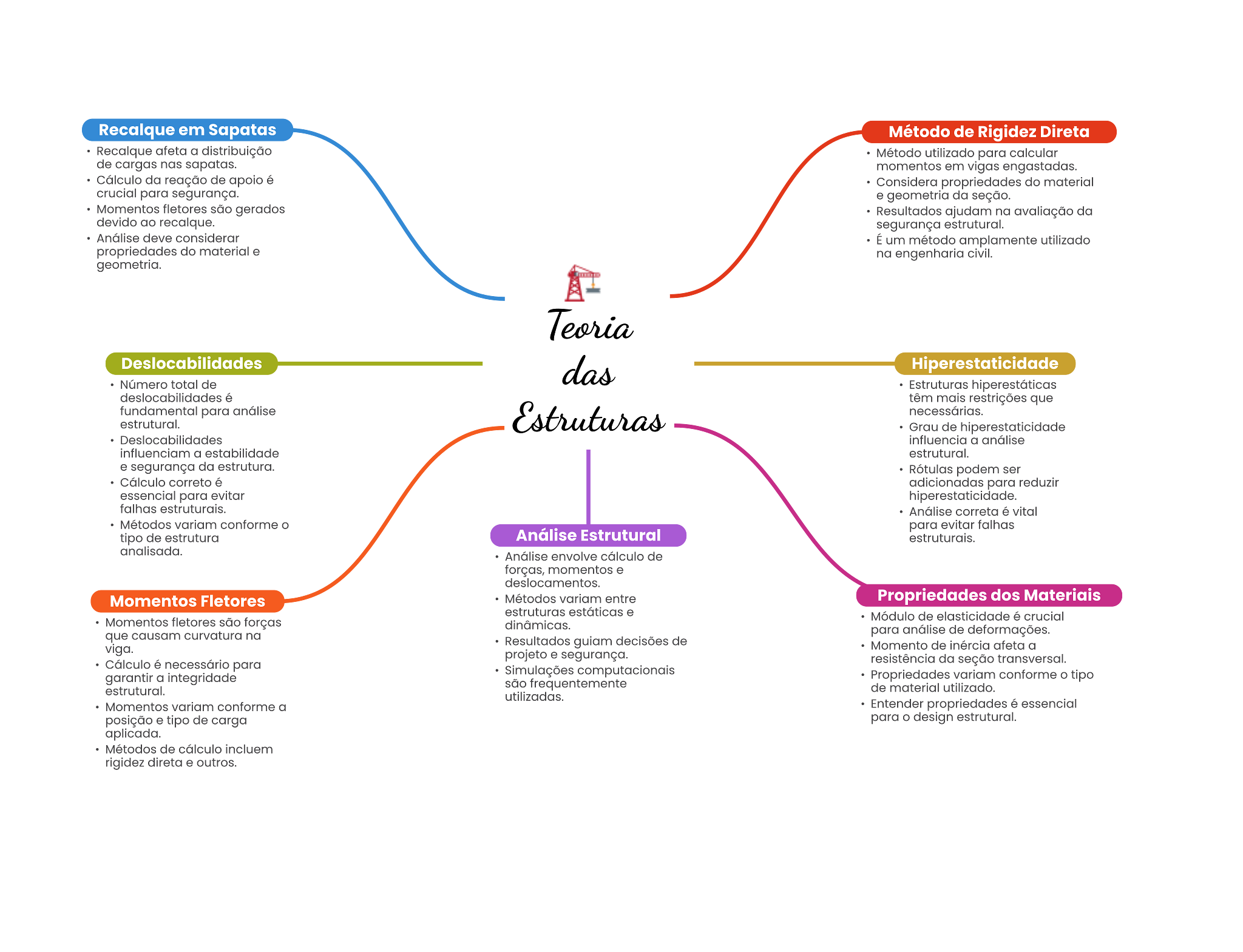 Recalque em Sapatas Método de Rigidez Direta Recalque afeta a distribuição Método utilizado para calcular de cargas nas sapatas. momentos em vigas engastadas. Cálculo da reação de apolo Considera propriedades do material crucial para segurança. da seção. gerados Resultados ajudam na da devido segurança estrutural. deve considerar É um método utilizado propriedades do material na engenharia Deslocabilidades Hiperestaticidade Número total de Estruturas têm restrições que fundamental para análise estrutural. Grau de influencia a análise a estabilidade estrutural. segurança da estrutura. podem ser correto é adicionadas para essencial para evitar hiperestaticidade. falhas correta é vital Métodos variam conforme para evitar falhas tipo de estrutura Análise Estrutural envolve cálculo de momentos Momentos Fletores Métodos variam entre Propriedades dos Materiais estâticas Momentos são forças Módulo de é crucial dinâmicas. que causam curvatura na para de deformações. Resultados decisões de Momento de afeta a projeto segurança. necessário para resistência da seção garantir a integridade Simulações computacionals Propriedades variam conforme tipo estrutural. frequentemente de utilizado. Momentos variam conforme a Entender essencial posição tipo de carga para o design estrutural. aplicada. de incluem direta outros.