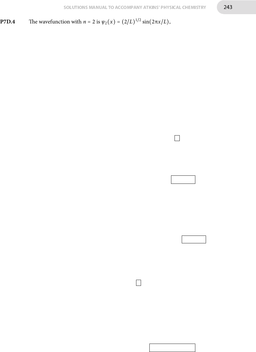 P7D.4 �e wavefunction with n = 2 is ψ2(x) = (2/L)1/2 sin(2πx/L), and this is used
