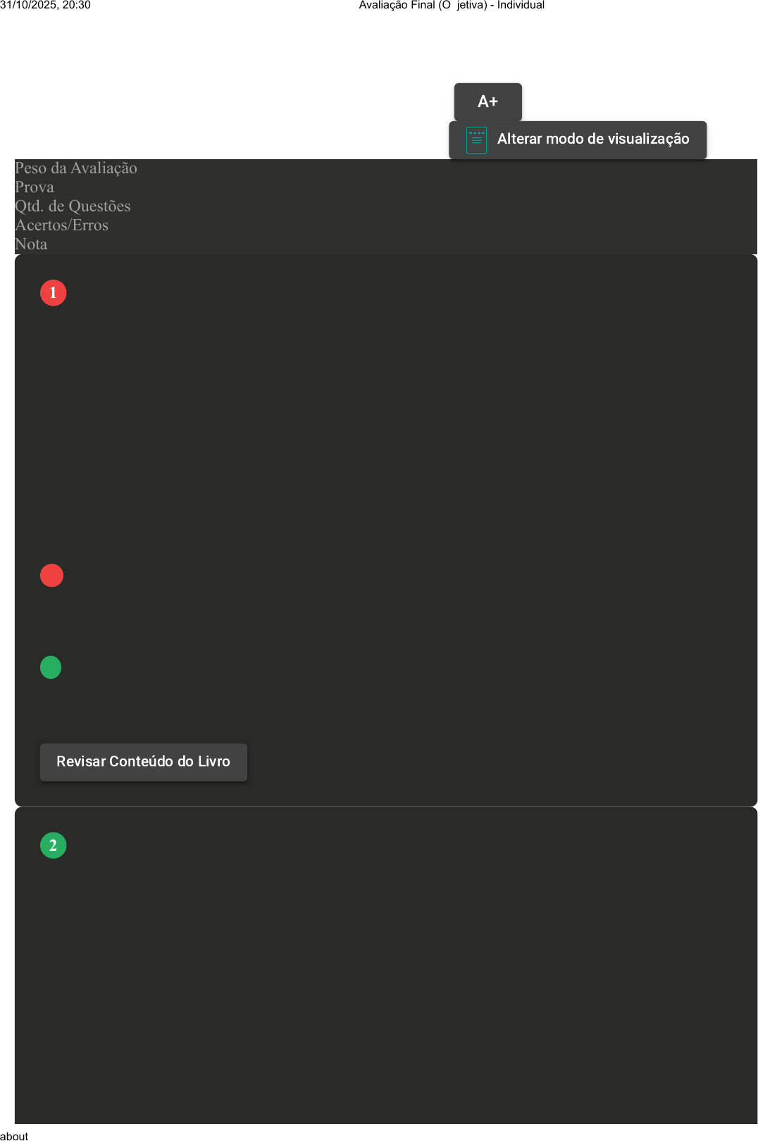 Prova Impressa GABARITO | Avaliação Final (Objetiva) - Individual (Cod.:1524265) Peso da Avaliação 4,00 Prova 103701060 Qtd. de Questões 10 Acertos/Erros 7/3 Nota 7,00 O consumo de alimentos e suplementos fontes de nutrientes imunomoduladores tem demonstrado benefícios no manejo de pacientes oncológicos, auxiliando na redução dos distúrbios metabólicos e inflamatórios da doença. Os nutrientes imunomoduladores mais estudados, são: ômega-3, arginina, glutamina e nucleotídeos. Diante do exposto, avalie as asserções a seguir e a relação proposta entre elas: I- O Instituto Nacional do Câncer (2016) defende o uso de suplementos imunomoduladores, contendo arginina, nucleotídeos e ômega-3 no perioperatório de pacientes submetidos à cirurgia oncológica, independentemente de seu estado nutricional, e contraindica seu uso na sepse. PORQUE II- As doses diárias de ômega 3 indicadas são de 1,5 a 3 g de EPA e 1,2 a 2g de DHA e doses seguras de glutamina não ultrapassam 0,65 g/kg/dia enquanto a arginina pode ser suplementada em dosagem de 8,5 a 17 g/dia. Assinale a alternativa CORRETA: A A primeira asserção é uma proposição falsa, e a segunda, uma proposição verdadeira. B A primeira asserção é uma proposição verdadeira, e a segunda, uma proposição falsa. C As duas asserções são proposições verdadeiras, mas a segunda não é uma justificativa correta da primeira. D As duas asserções são proposições verdadeiras, e a segunda é uma justificativa correta da primeira. Os alimentos funcionais têm despertado interesse devido à importância que a Nutrição tem adquirido frente à prevenção e manejo das doenças crônicas não transmissíveis, todavia, sabe-se que estabelecer relações de causa e efeito dentro da área da Nutrição é complexo, devido a diferentes fatores envolvidos, como genética, estilo de vida, atividade física, estresse). Nesse sentido, merecem destaque os alimentos funcionais e suas aplicações que apresentam forte respaldo científico. Com base no exposto, associe os itens, utilizando o código a seguir: I- Alho. II- Brócolis. III- Soja e derivados. ( ) Ação estrogênica (reduz efeitos menopausa); ação anticâncer (próstata, mama, útero); ação hipolipemiante e prevenção da osteoporose. ( ) Ação anticâncer (próstata, mama, intestino). VOLTAR A+ Alterar modo de visualização 1 Revisar Conteúdo do Livro 2 31/10/2025, 20:30 Avaliação Final (Objetiva) - Individual about:blank 1/6 ( ) Ação antioxidante; ação hipolipemiante; ação anticoagulante; ação hipotensora; ação antibiótica e antifúngica. Assinale a alternativa que apresenta a sequência CORRETA: A II - I - III. B I - III - II. C III - II - I. D I - II - III. Como o processo metabólico do organismo é alterado na presença de células cancerígenas, pode ser necessário também, além da suplementação de micronutrientes/substâncias bioativas, a suplementação de macronutrientes. Com base no exposto, avalie as asserções a seguir e a relação proposta entre elas: I- Os pacientes que apresentem baixa aceitação alimentar ou sintomas que atrapalham o consumo de alimentos fonte de proteína (como disgeusia), requerem suplementação individualizada de módulo proteico. PORQUE II- A demanda proteica destes pacientes pode chegar a 2,5 g/kg/dia.Assinale a alternativa CORRETA: A A primeira asserção é uma proposição falsa, e a segunda, uma proposição verdadeira. B A primeira asserção é uma proposição verdadeira, e a segunda, uma proposição falsa. C As duas asserções são proposições verdadeiras, e a segunda é uma justificativa correta da primeira. D As duas asserções são proposições verdadeiras, mas a segunda não é uma justificativa correta da primeira. Distúrbios gastrintestinais estão entre as principais queixas quando se trata de crianças, e algumas espécies de plantas medicinais são utilizadas especialmente para o alívio de cólica intestinal, diarreia e constipação. Destaca-se a necessidade de utilização dessas plantas de forma correta de acordo com as indicações, pois o uso incorreto pode ter consequências deletérias à saúde da criança. Diante do exposto, associe os itens, utilizando o código a seguir: I- Camomila (Matricaria recutia). II- Hortelã pimento (Mentha x piperita). III- Funcho (Foeniculum vulgare). ( ) Espasmos leves do trato gastrointestinal, flatulência e dor abdominal. ( ) Alívio da cólica e antiespasmódico. ( ) Melhora da cólica, diarreia e gases.Assinale a alternativa que apresenta a sequência CORRETA: A I - II - III. B II - III - I. C III - II - I. 3 4 31/10/2025, 20:30 Avaliação Final (Objetiva) - Individual about:blank 2/6 D I - III - II. O espírito empreendedor está presente em muitas pessoas dotadas de uma vontade de construir algo que faça valer a pena a sua vida, surgindo quando o indivíduo quer conquistar autonomia, atingir excelência em seu próprio empreendimento e melhorar sua qualidade de vida. Nesse sentindo, considerando o que é ser empreendedor, analise as sentenças a seguir: I- O conceito de empreendedorismo é limitado a criação de novas empresas. II- Empreender significa a união, de forma inteligente, inovadora e integrada de: um produto ou serviço. III- Empreender significa satisfazer uma necessidade ou aspiração do mercado. IV- Inovar na forma de ofertar um serviço padrão é considerado empreendedorismo. Assinale a alternativa CORRETA: A As sentenças II, III e IV estão corretas. B As sentenças I e IV estão corretas. C As sentenças I, II e III estão corretas. D Somente a sentença II está correta. Na Resolução do CFN nº 680, de 19 de janeiro de 2021, foram descritas as orientações para prescrição das plantas medicinais e dos fitoterápicos. Essa resolução traz uma gama de informações pertinentes ao ato prescritivo por parte do nutricionista, nesse sentido, antes de decidir qual a forma de prepare é importante que o nutrici