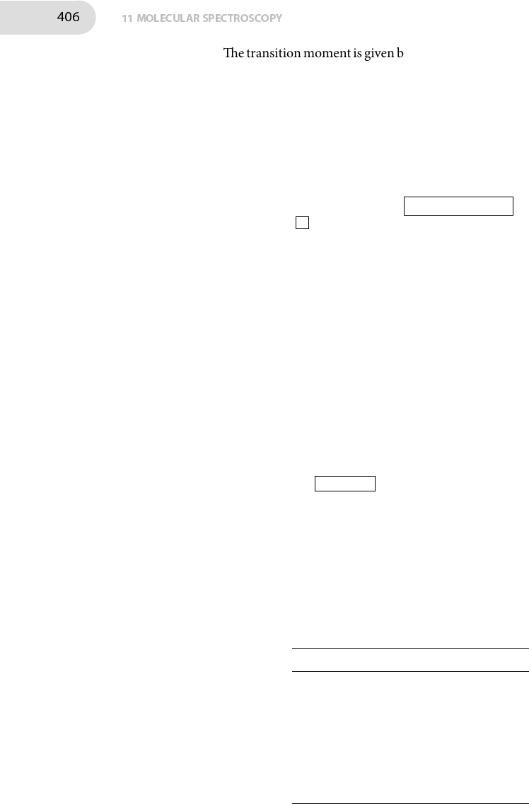 406 11MOLECULAR SPECTROSCOPY �e transitionmoment is given by ∫ ψf∗µ̂ψi dτ, and the symmetry species of the integrand is found using the direct product; µ̂ transforms as x, y, or z, which in this case is B3u, B2u, or B1u.�e integral is only non-zero if the integrand transforms as the totally symmetric irreducible representation, which is the case here when the component of the dipole is along x ψf « B3u × µ̂x « B3u × ψi ª Ag = Ag �us the π → π∗ transition is symmetry allowed , with the transition dipole along x . (b) A carbonyl group (as exempli�ed by that in methanal) is assumed to be- long to the point group C2v: assume that the H2CO fragment lies in the xz-plane, with the C–O bond along z. �e π∗ anti-bonding molecular orbital transforms in the same way as the cartesian function y, that is as B2. A non-bonding electron on oxygen is usually considered to be in a 2px orbital which transforms as B1. When an electron is promoted from n to π∗, the excited state has symmetry B2 × B1 = A2. �e symmetry of the integrand for the transition moment is ψf ª A2 × µ̂ Γx ,y ,z × ψi ª A1 = A2 × Γx ,y ,z Because Γx ,y ,z ≠ A2 this product is never A1, so the integral is zero and the transition is forbidden . I11.10 �e energy of the HOMO, EHOMO, is reported in the table below, based on calculations performed with Spartan 10 using the DFT/B3LYP/6-31G*method. �e experimentally determined energy of the I2–aromatic hydrocarbon charge transfer bands is also given. Figure 11.17 shows a plot of EHOMO against hνmax; the best-�t straight line is also shown.�ere is a modest correlation between the two quantities. hydrocarbon hνmax/eV EHOMO/eV benzene 4.184 −6.70 biphenyl 3.654 −5.91 naphthalene 3.452 −5.78 phenanthrene 3.288 −5.73 pyrene 2.989 −5.33 anthracene 2.890 −5.23