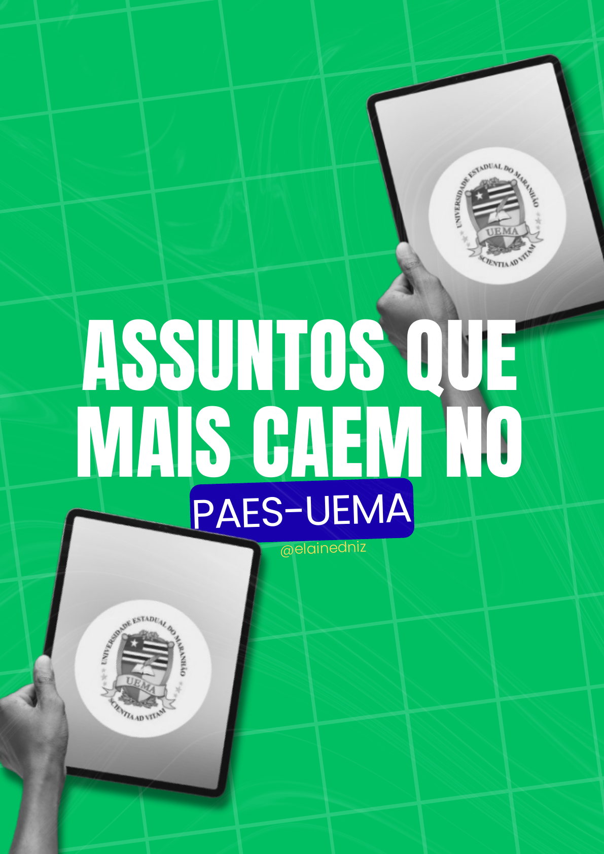 ASSUNTOS QUE MAIS CAEM NO PAES-UEMA @elainedniz L i n g u a g e n s L i n g u a g e n s Gramática e Literatura L i n g u a g e n s L i n g u a g e n s Gramática e Literatura 1. Gramática: Figuras de linguagens; Funções da linguagens; Pontuação; Concordância e regência; Ortografia e acentuação; Discurso direto e indireto; Tipos textuais e gêneros. L i n g u a g e n s L i n g u a g e n s Gramática e Literatura 2. Literatura: Estudar e ler as Obras literárias; Estilos literários; Contexto histórico e temas centrais; Características dos autores. H i s t ó r i a H i s t ó r i a História do Brasil e História Geral H i s t ó r i a H i s t ó r i a História do Brasil (Eixo Principal) □ Estrutura política; □ Economia (ciclo do algodão no Maranhão, café); □ Escravidão (tráfico, resistência, abolição); □ Movimentos de contestação (Balaiada, Inconfidência Mineira); [ ] A situação dos povos indígenas e o processo de Independência, com foco na adesão tardia do Maranhão, são temas recorrentes. 1.Brasil Colônia e Império: H i s t ó r i a H i s t ó r i a História do Brasil (Eixo Principal) 2. Era Vargas (1930-1945) e Período Populista (1945-1964): [ ] Centralização do poder; [ ] Industrialização; [ ] Trabalhismo; [ ] Nacionalismo (criação da Petrobras) e as dinâmicas políticas no Maranhão (do vitorinismo ao sarneísmo). □ O golpe; □ A repressão; □ Os movimentos de resistência (luta armada, cultura) e o processo de transição democrática. H i s t ó r i a H i s t ó r i a História do Brasil (Eixo Principal) 3. Ditadura Militar no Brasil (1964-1985): H i s t ó r i a H i s t ó r i a História Geral 1. Formação do Mundo Moderno: □ Renascimento; □ Reformas Religiosas; □ Absolutismo; □ Iluminismo. H i s t ó r i a H i s t ó r i a História Geral 2. Século XX: □ A ascensão do Nazifascismo; ■ Primeira Guerra Mundial; □ Segunda Guerra Mundial; ■ Guerra Fria. G e o g r a f i a G e o g r a f i a Geografia Física e Geografia Humana e Econômica G e o g r a f i a G e o g r a f i a Geografia Física 1. Clima, Relevo e Biomas: Características dos grandes domínios morfoclimáticos brasileiros (com destaque para Amazônia, Cerrado e Caatinga, e as zonas de transição como os Cocais no Maranhão). G e o g r a f i a G e o g r a f i a Geografia Física 2. Cartografia: Leitura e interpretação de mapas; Escalas; Coordenadas geográficas; Fuso horário. G e o g r a f i a G e o g r a f i a Geografia Física 3. Questões Ambientais: Desmatamento; Crise hídrica; Poluição e os impactos da atividade humana (mineração, agronegócio) nos ecossistemas . G e o g r a f i a G e o g r a f i a Geografia Humana e Econômica 1. Demografia: Análise de pirâmides etárias; Crescimento populacional; Migrações (êxodo rural); Distribuição da população no território. G e o g r a f i a G e o g r a f i a Geografia Humana e Econômica 2. Urbanização: Processo de metropolização; Problemas urbanos (saneamento básico, moradia); Formação de redes urbanas. G e o g r a f i a G e o g r a f i a Geografia Humana e Econômica 3. Geopolítica: Nova Ordem Mundial; Formação de blocos econômicos; Conflitos contemporâneos (Israel- Palestina, tensões na Ásia). S o c i o l o g i a S o c i o l o g i a Conceitos sociológicos e desigualdades S o c i o l o g i a S o c i o l o g i a Conceitos sociológicos 1. Teóricos e Conceitos Fundamentais: As ideias de Durkheim (fato social, anomia); Max (luta de classes, ideologia); Weber (ação social, burocracia). S o c i o l o g i a S o c i o l o g i a Desigualdades 2. Desigualdade Social: Racismo estrutural; Democracia racial; Feminicídio; Minorias. S o c i o l o g i a S o c i o l o g i a Desigualdades 3. Cultura e Ideologia: Conceitos de cultura de massa; Indústria cultural; Etnocentrismo; Relativismo cultural. S o c i o l o g i a S o c i o l o g i a Desigualdades 4. Trabalho e Sociedade: A precarização do trabalho; O desemprego; A informalidade; Questões do trabalho análogo à escravidão no Brasil contemporâneo. F i l o s o f i a F i l o s o f i a Dilemas éticos e políticos F i l o s o f i a F i l o s o f i a Dilemas éticos e políticos 1. Ética e Política: Liberdade; Poder; Justiça; Dever; Estado; Democracia; Totalitarismo. F i l o s o f i a F i l o s o f i a Dilemas éticos e políticos 2. Teoria do Conhecimento (Epistemologia): Senso comum e conhecimento científico; Racionalismo; Empirismo; Criticismo. F i l o s o f i a F i l o s o f i a Dilemas éticos e políticos 3. Filosofia Contemporânea: Pós-verdade; Decolonialismo; Feminismo; Impacto da tecnologia na condição humana (pós-humano). F i l o s o f i a F i l o s o f i a Dilemas éticos e políticos 4. Lógica: Noções de argumentação; Identificação de tipos de raciocínio (dedução, indução); Falácias. M a t e m á t i c a M a t e m á t i c a Da Geometria a Financeira M a t e m á t i c a M a t e m á t i c a Da Geometria a Financeira 1. Geometria Plana e Espacial: Cálculo de áreas (triângulos, quadriláteros, círculo); Perímetros e volumes (prismas, pirâmides, cilindros, cones e esfera). M a t e m á t i c a M a t e m á t i c a Da Geometria a Financeira 2. Funções: Análise e interpretação de gráficos de funções do 1º e 2º grau; Exponenciais e logarítmicas. M a t e m á t i c a M a t e m á t i c a Da Geometria a Financeira 3. Análise Combinatória e Probabilidade: Problemas envolvendo contagem (arranjos, permutações, combinações); Cálculo de probabilidades (condicional e binomial); Moda, Média e Mediana. M a t e m á t i c a M a t e m á t i c a Da Geometria a Financeira 4. Matemática Financeira: Cálculo de porcentagem; Juro simples e compostos. F í s i c a F í s i c a Da Mecânica a Óptica F í s i c a F í s i c a Da Mecânica a Óptica 1. Mecânica: Cinemática (MRU, MRUV, lançamento oblíquo); Dinâmica (Leis de Newton, forças de atrito, plano inclinado); Energia (trabalho, 